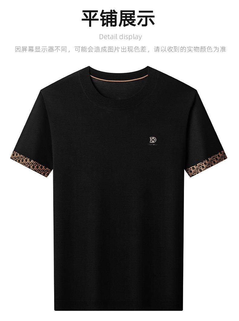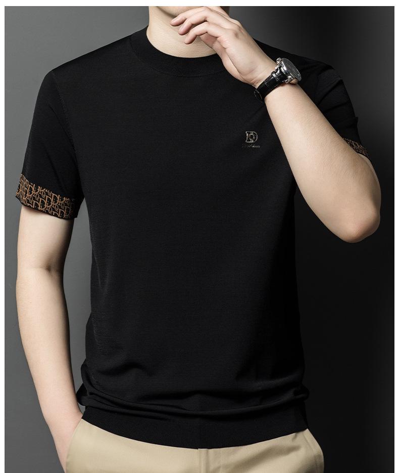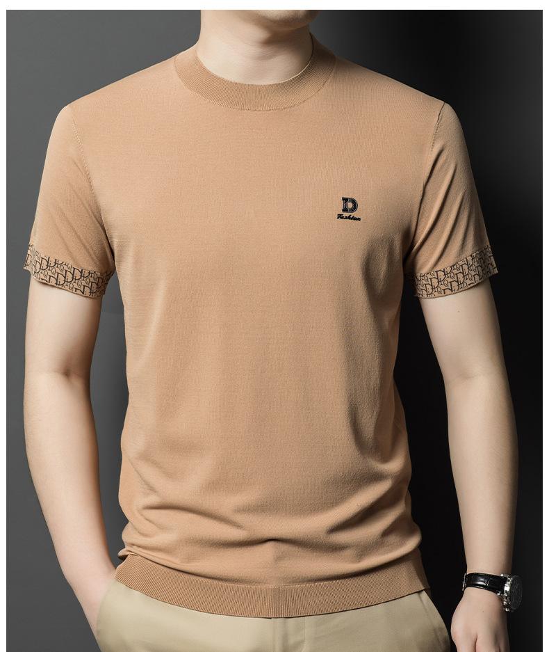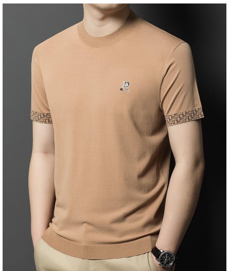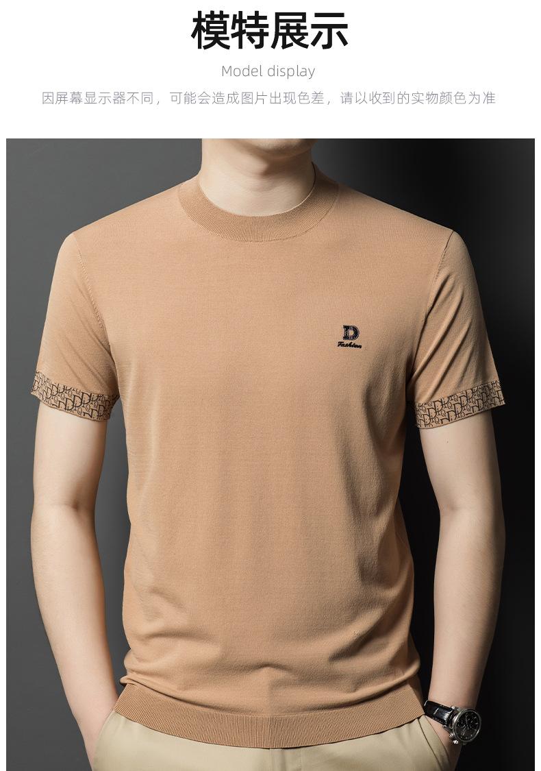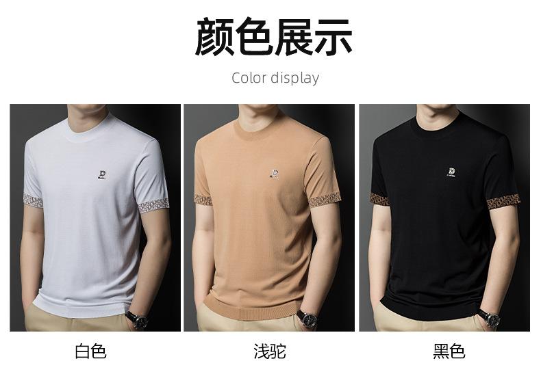 Camiseta de seda morera de verano 2024 de punto con cuello redondo y manga corta, ideal para jóvenes y mediana edad.
