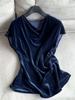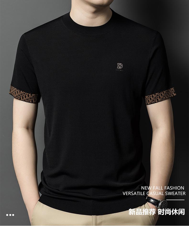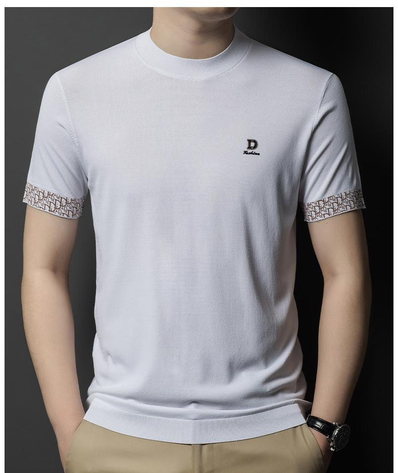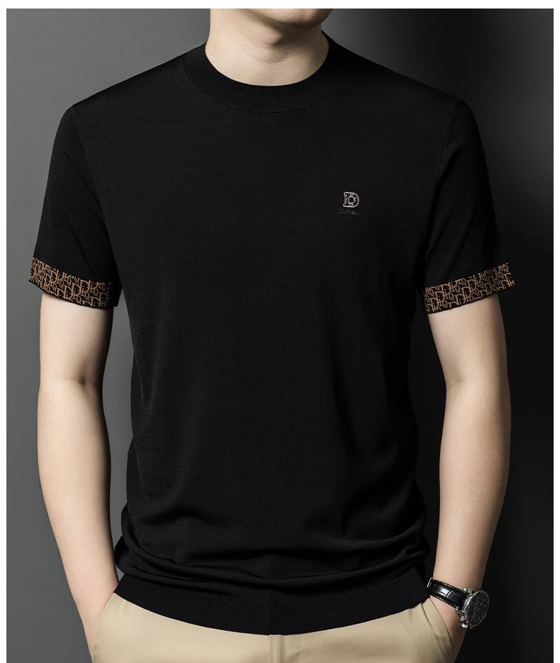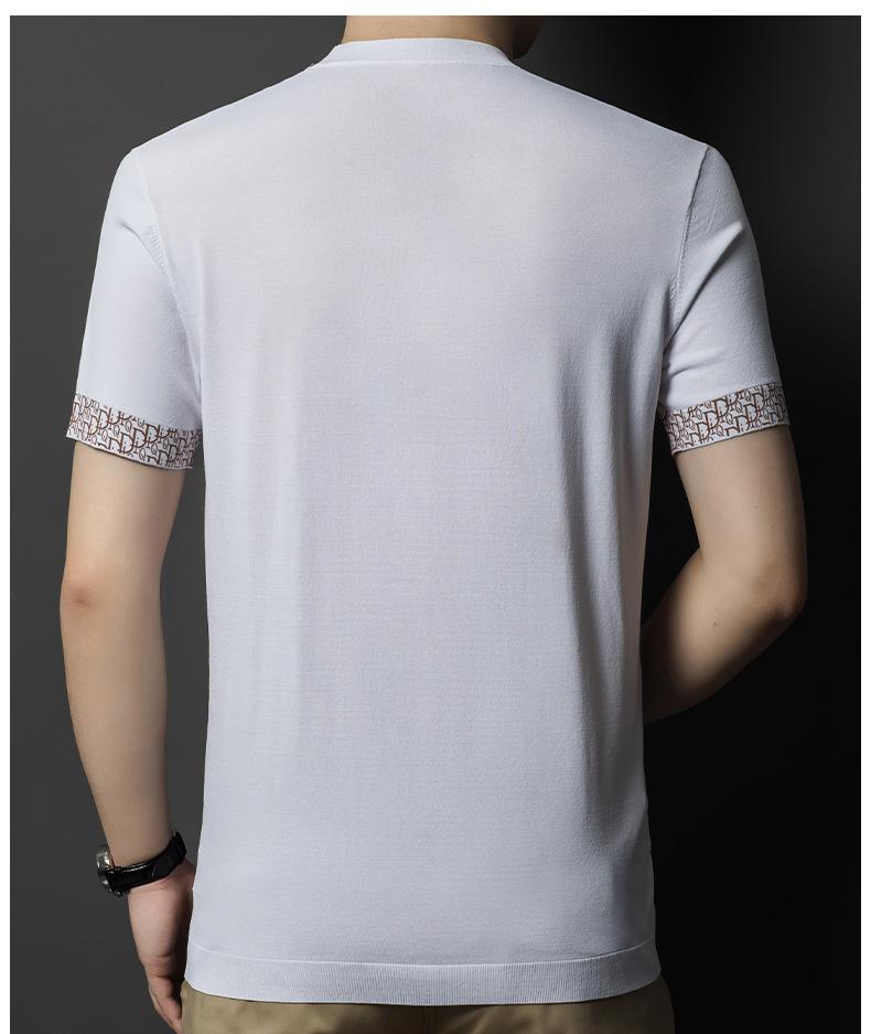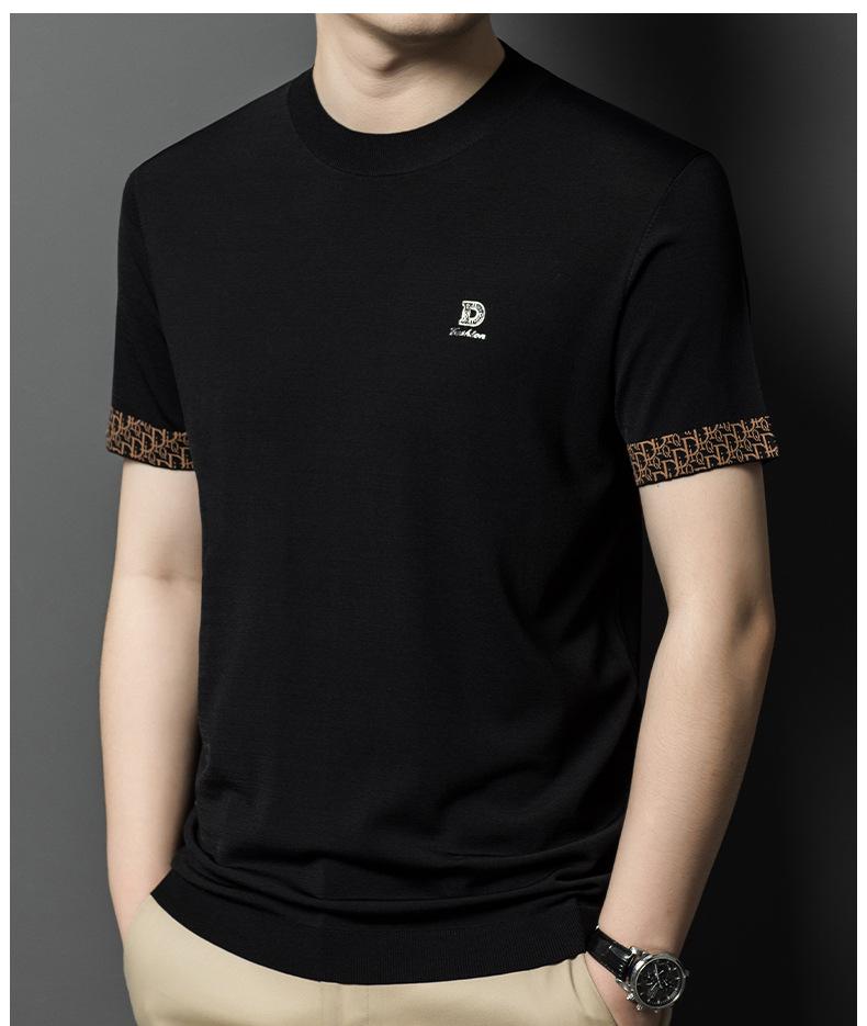 Camiseta de seda morera de verano 2024 de punto con cuello redondo y manga corta, ideal para jóvenes y mediana edad.