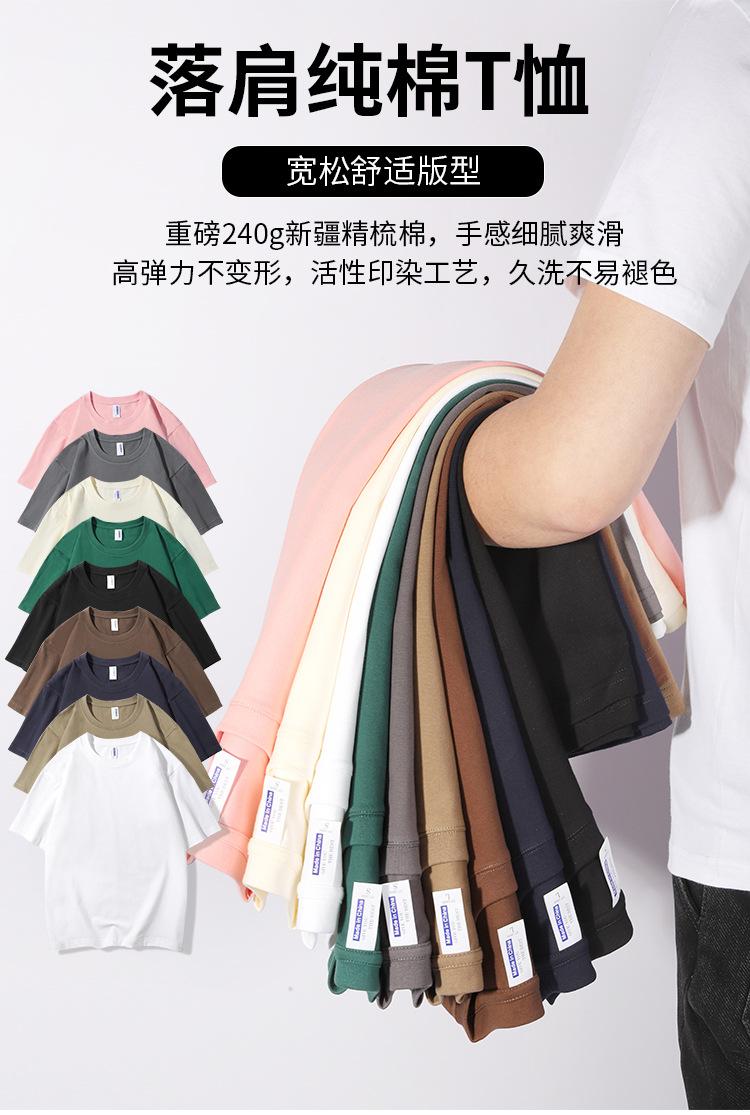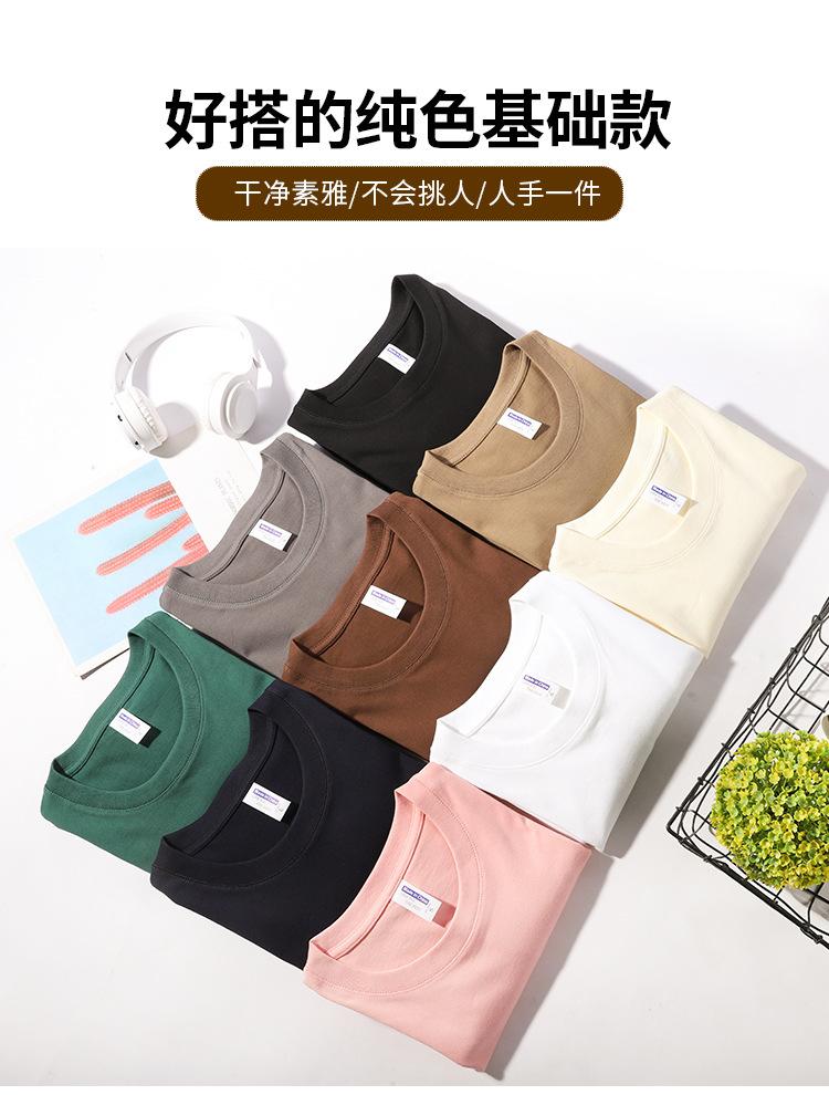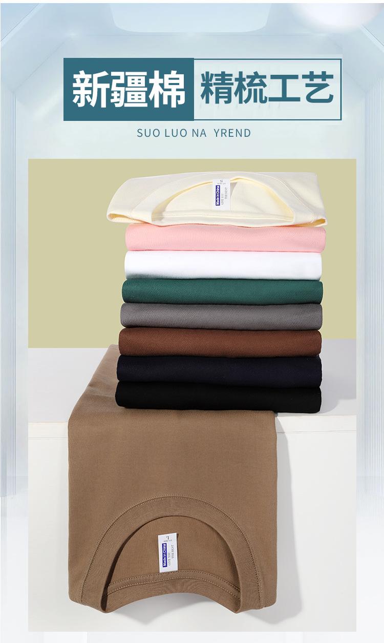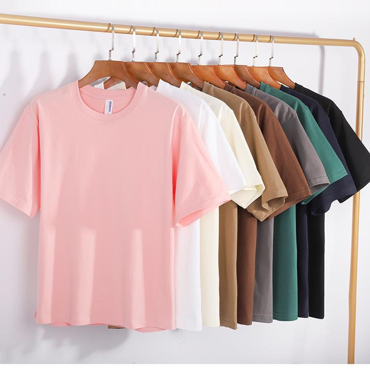 Camiseta transfronteriza de algodón peinado pesado de 240 gramos, cuello redondo, manga corta, logotipo estampado fijo, camiseta publicitaria, ropa de grupo de peto
