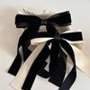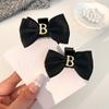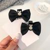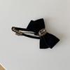 Horquilla de malla con lazo de doble cara negro, pequeña, para mujer, con temperamento, para tocado, de alta calidad, para flequillo lateral