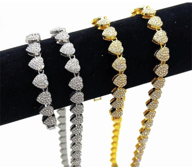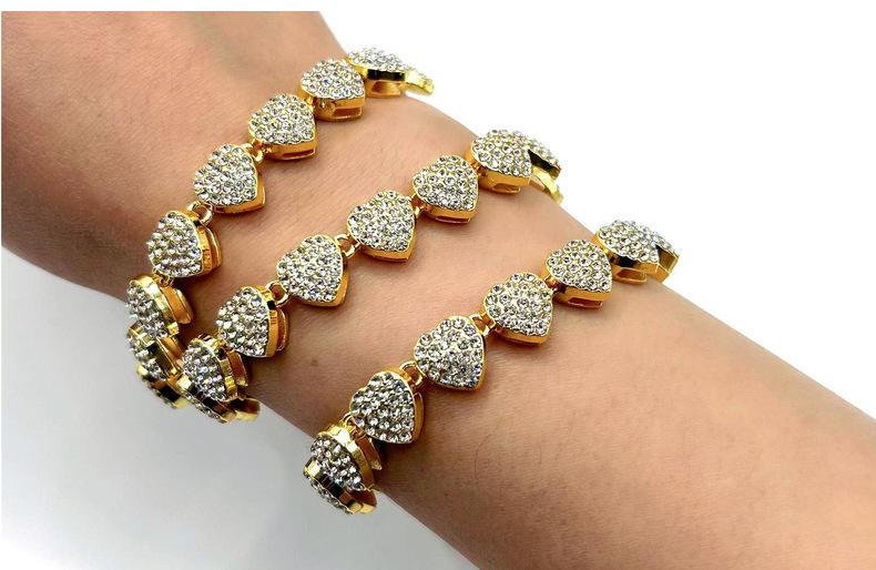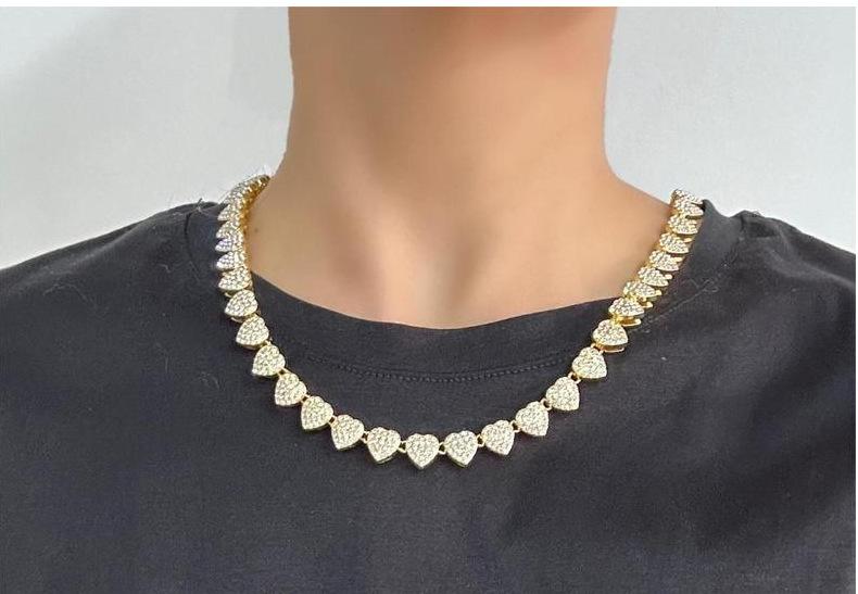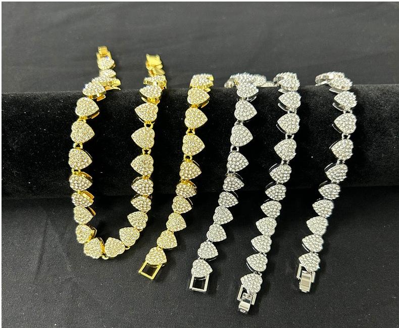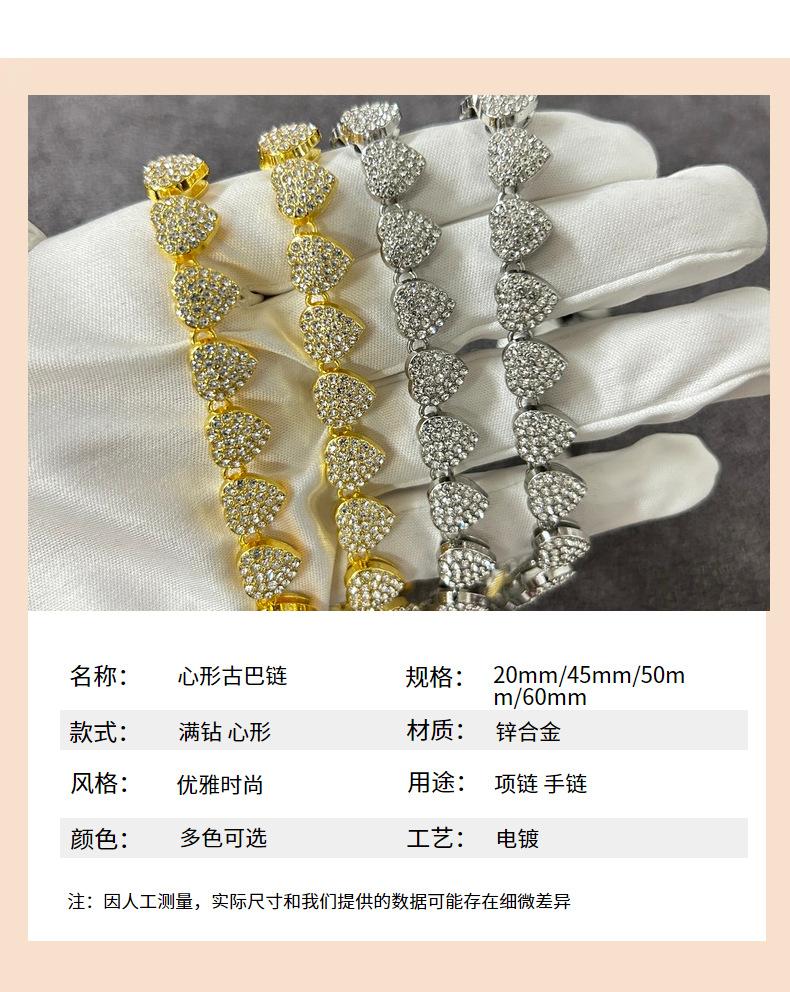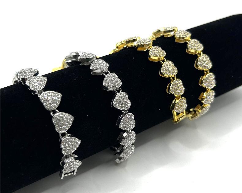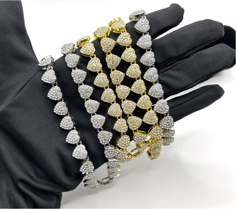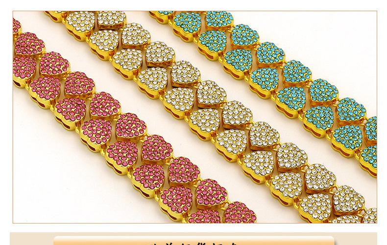 Cadena cubana de doble diamante en tándem de amor de 12 mm aleación pedrería corazón de durazno pulsera cubana cadena para bolsa