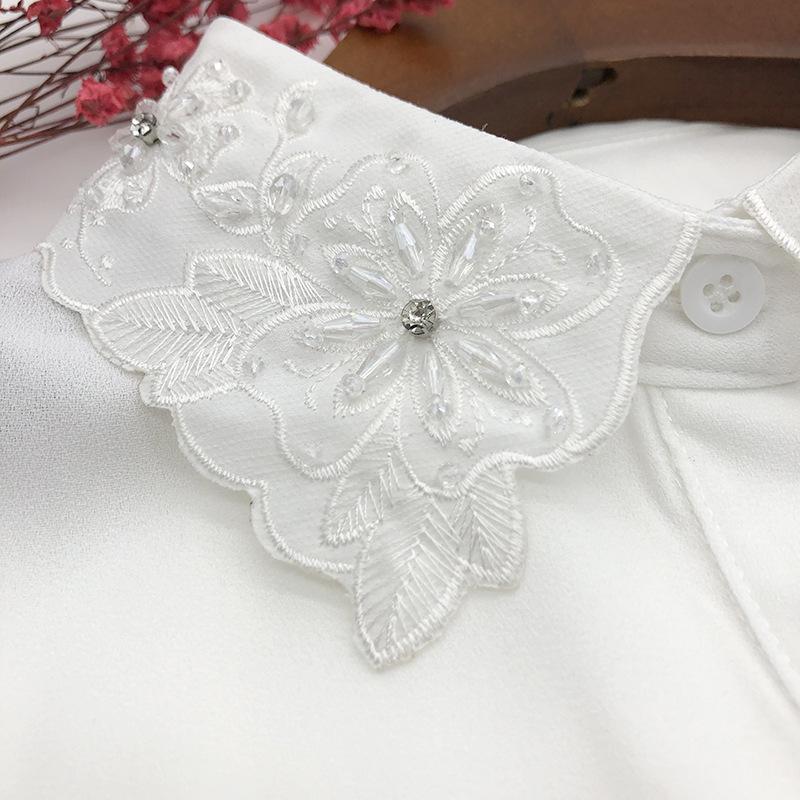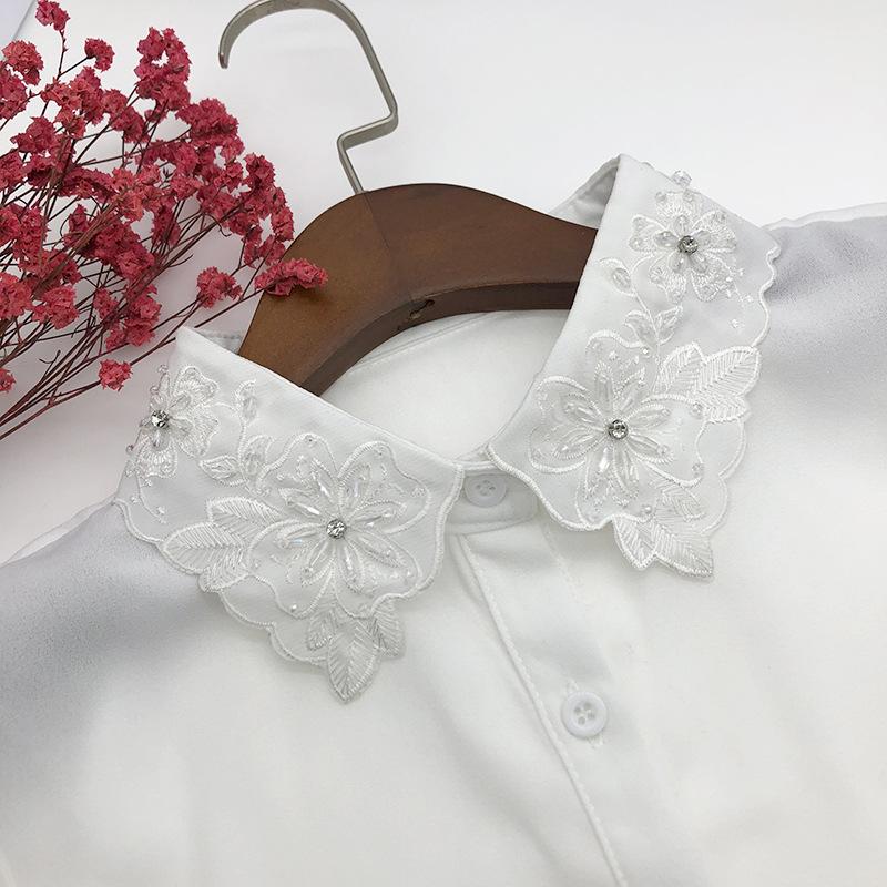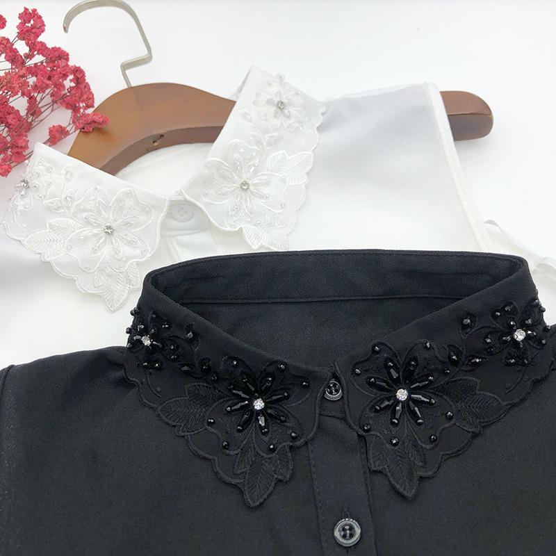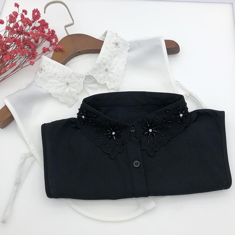 Cuello Bordado Estilo Retro con Pedrería, Cuello Falso para Mujer, Cuello Falso Decorativo Versátil, Cuello Decorativo para Ropa de Mujer