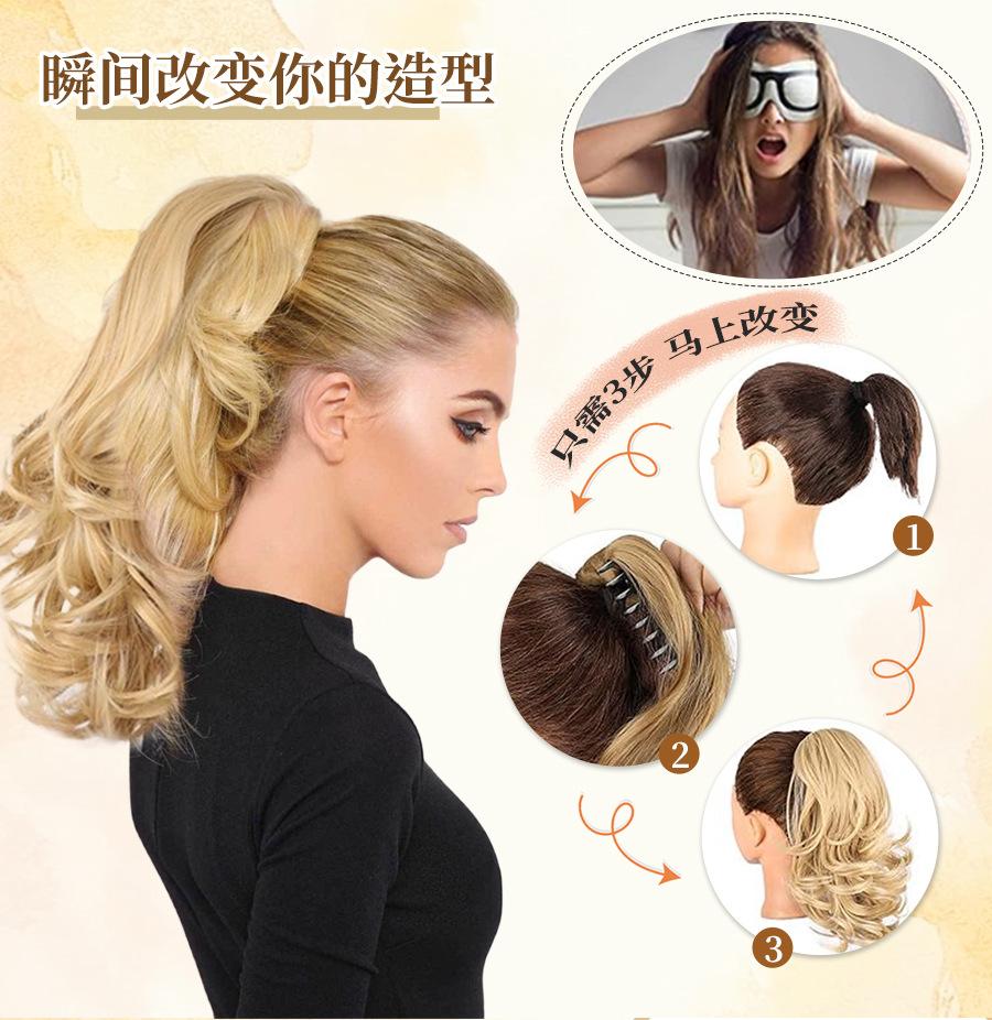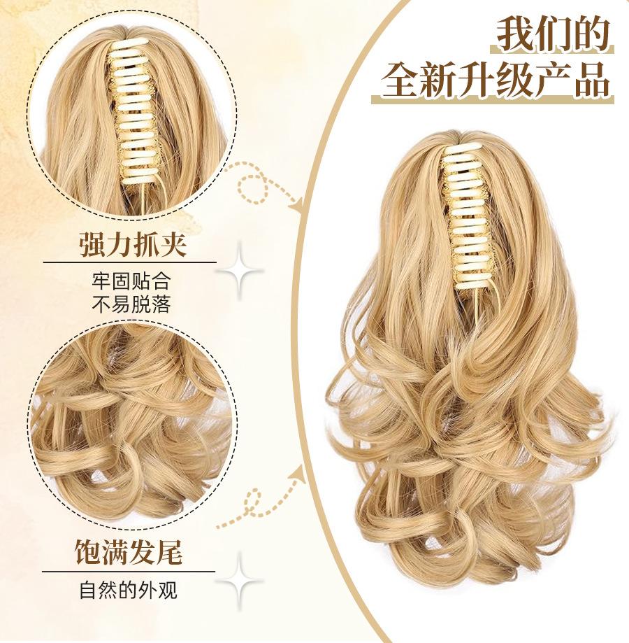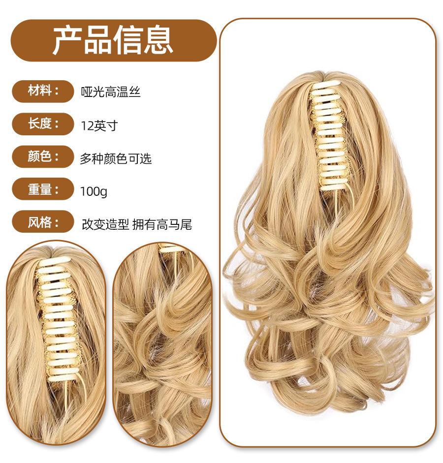 Peluca de Cola de Caballo con Clip de Boca de Tigre para Mujer con Cabello Largo Rizado y Ondas Grandes, Peluca Colorida Degradada con Cabello de Cola de Caballo