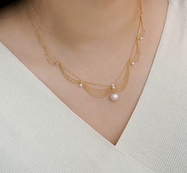 Collar de Perlas de Encaje Francés de Múltiples Capas Diseño de Alto Nivel Lujo Ligero Collar Personalizado para Novia Joyería para Mujer