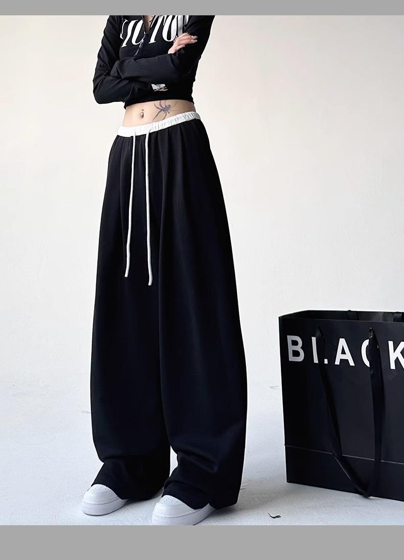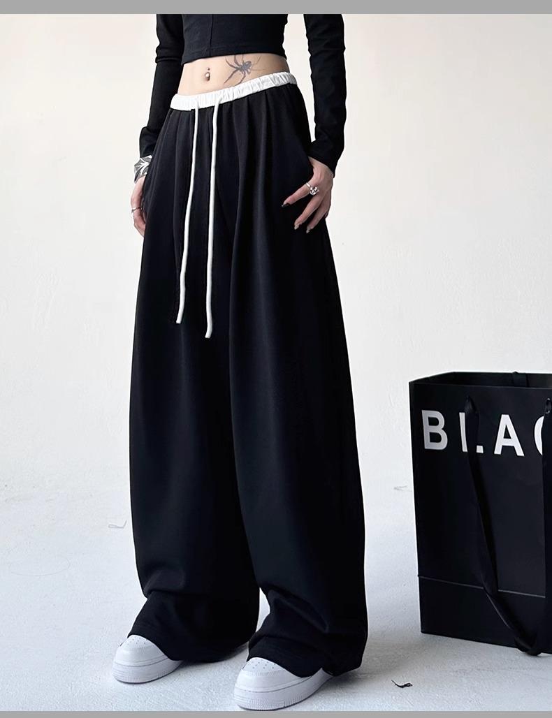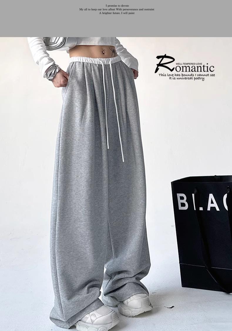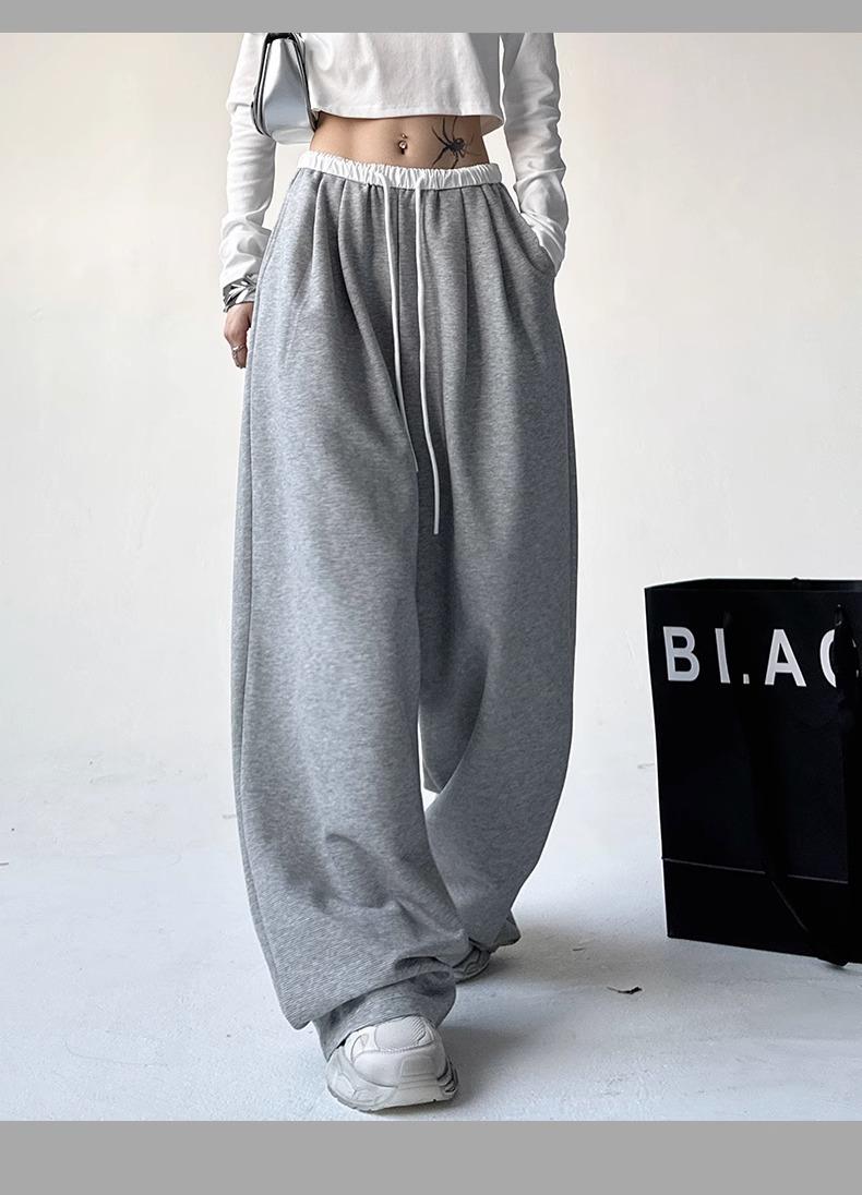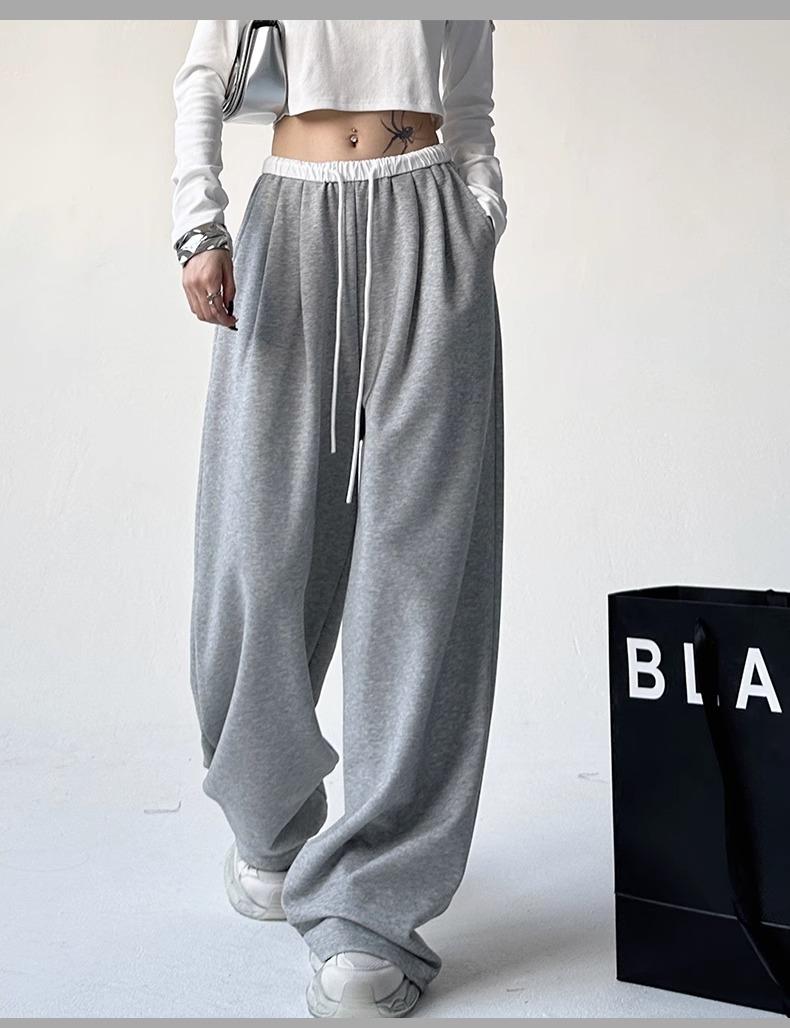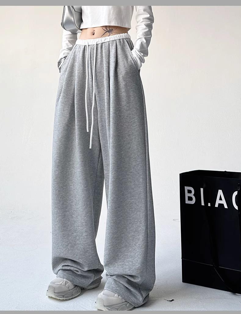 Pantalones deportivos negros de estilo americano y coreano para mujer, de otoño e invierno, holgados, informales, gruesos y a la moda, con pierna ancha y adelgazantes, 2024