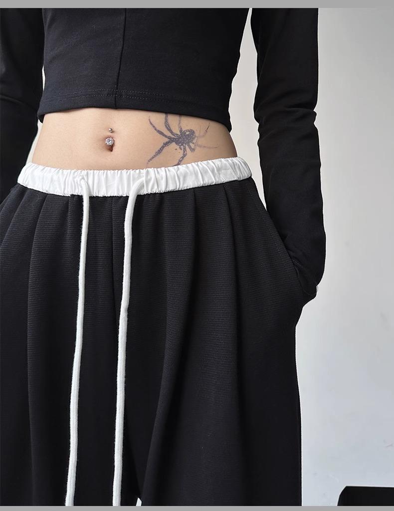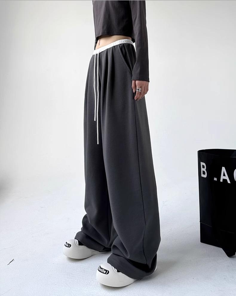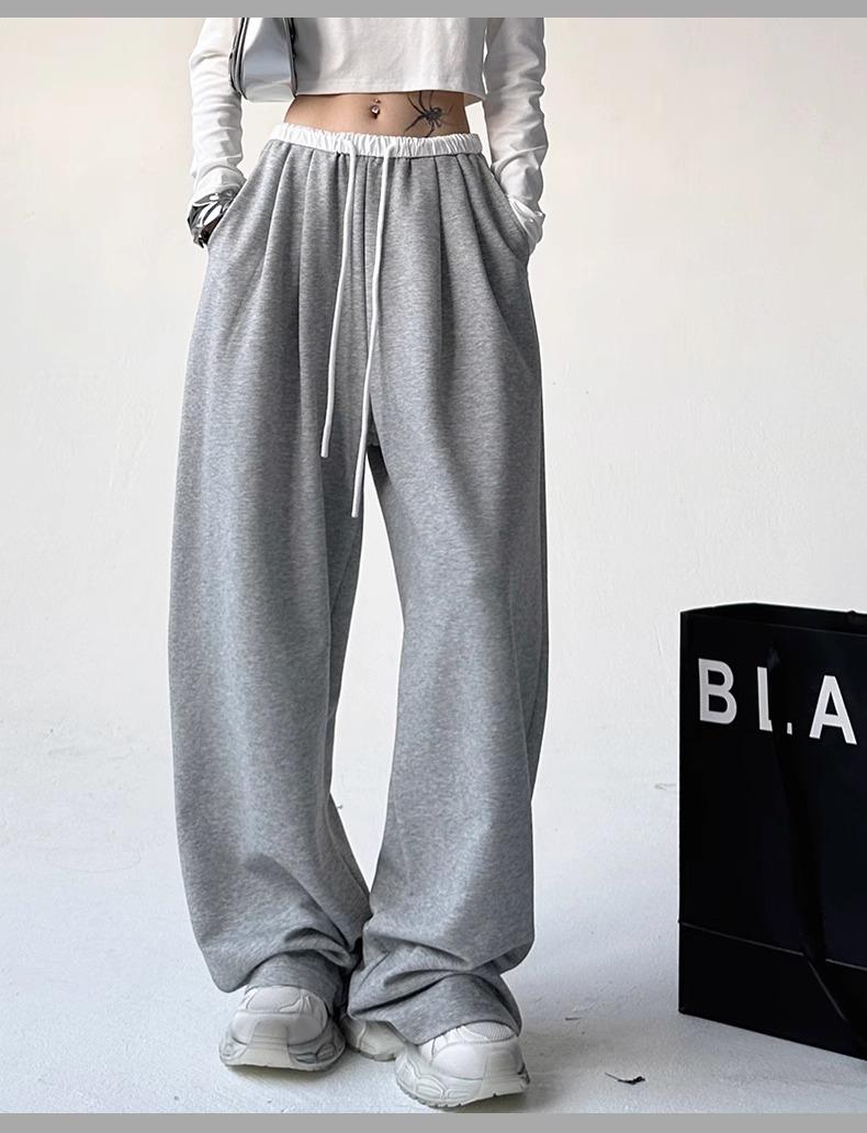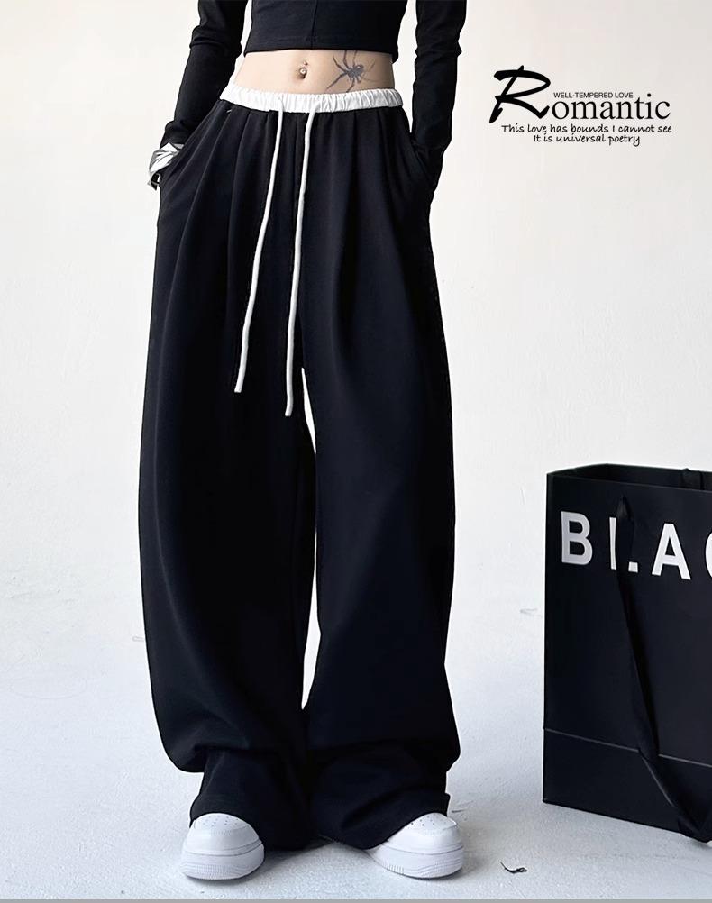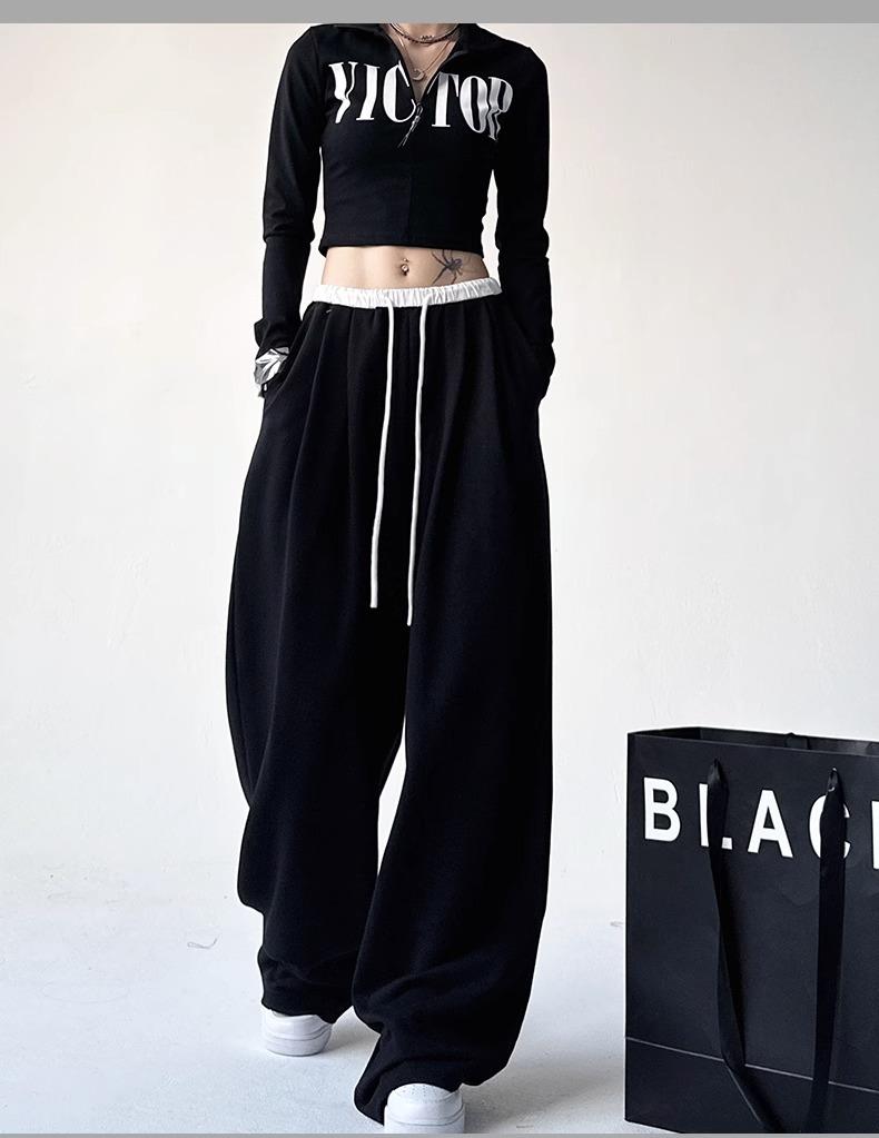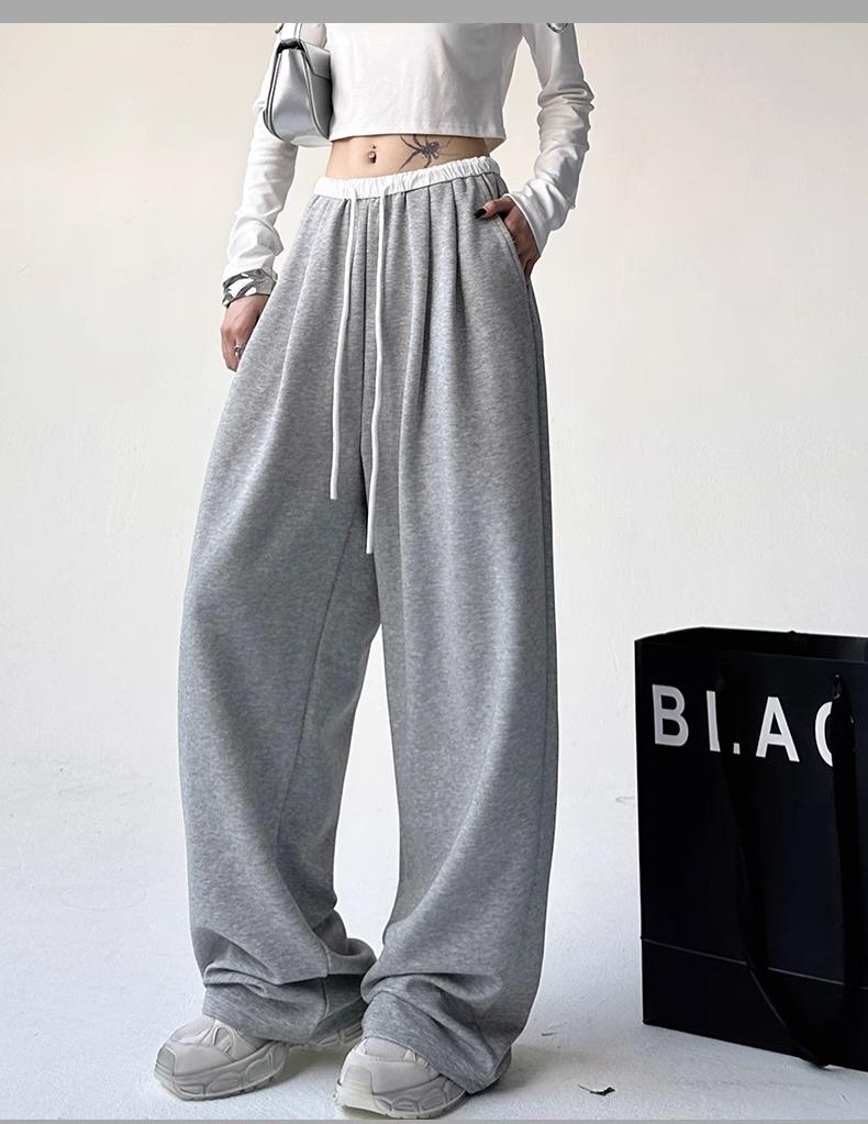 Pantalones deportivos negros de estilo americano y coreano para mujer, de otoño e invierno, holgados, informales, gruesos y a la moda, con pierna ancha y adelgazantes, 2024