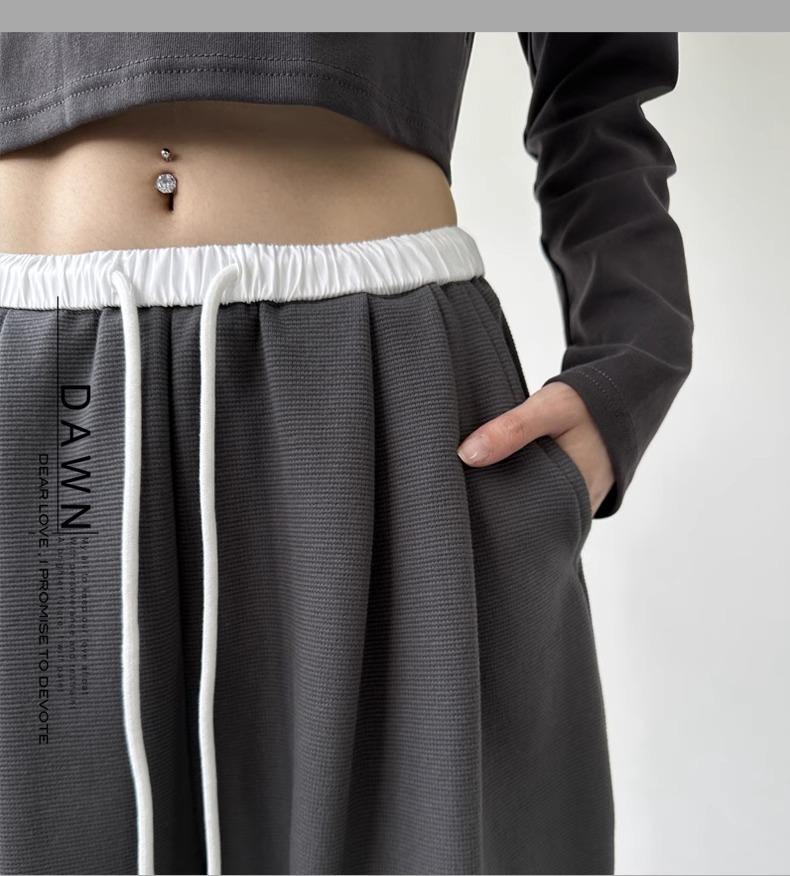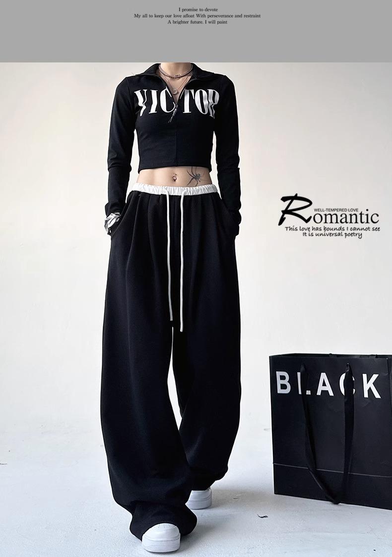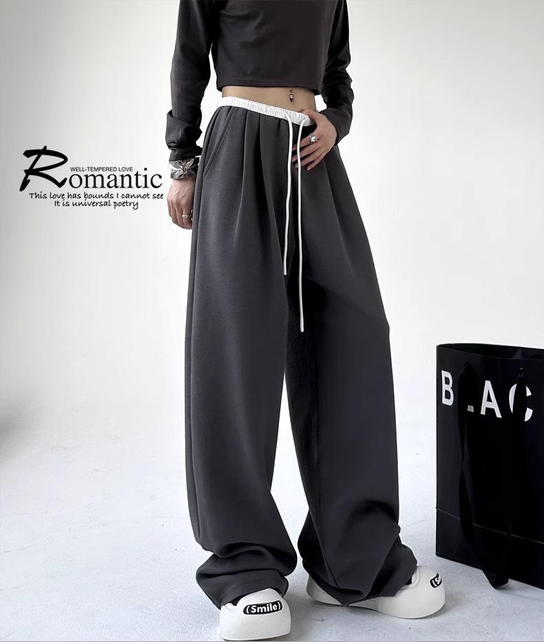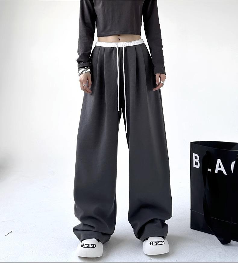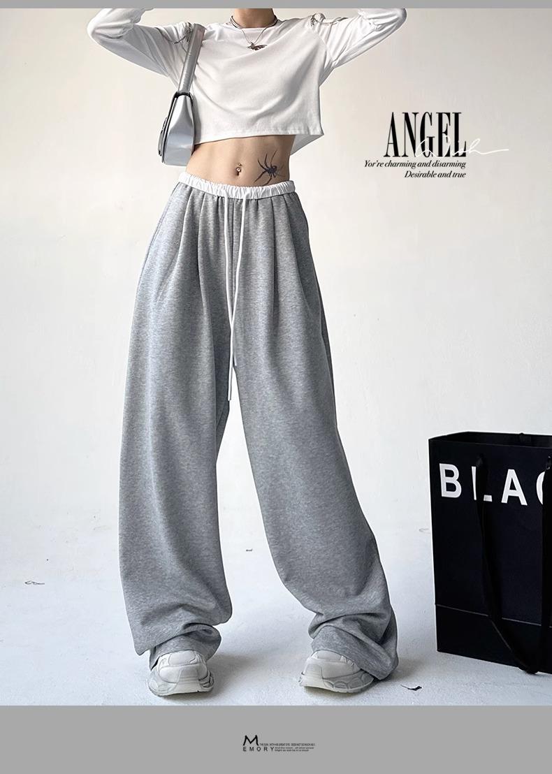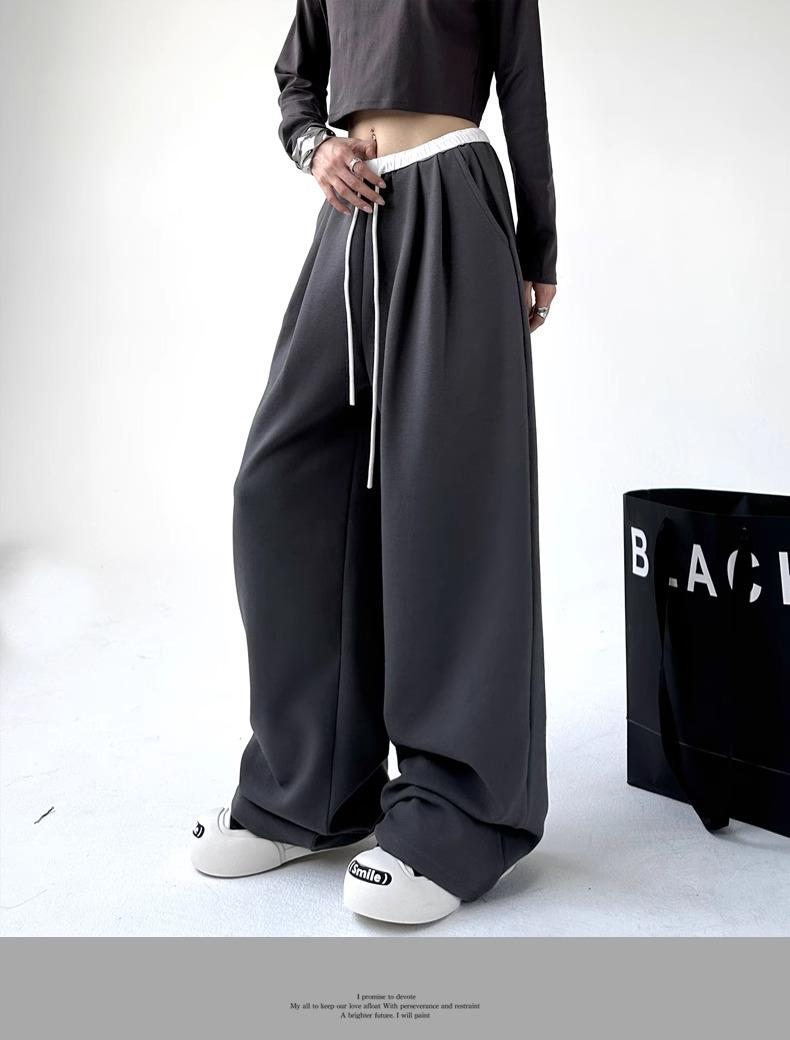 Pantalones deportivos negros de estilo americano y coreano para mujer, de otoño e invierno, holgados, informales, gruesos y a la moda, con pierna ancha y adelgazantes, 2024