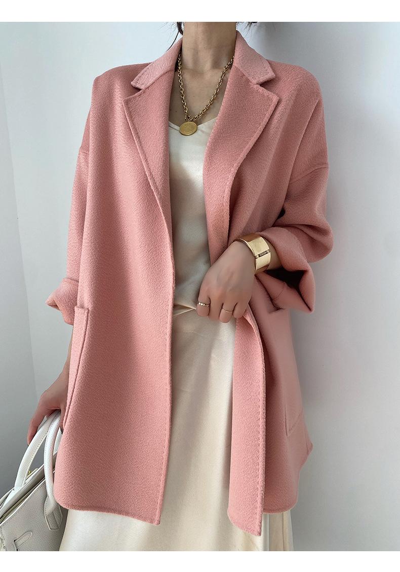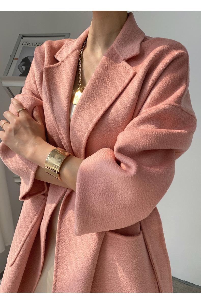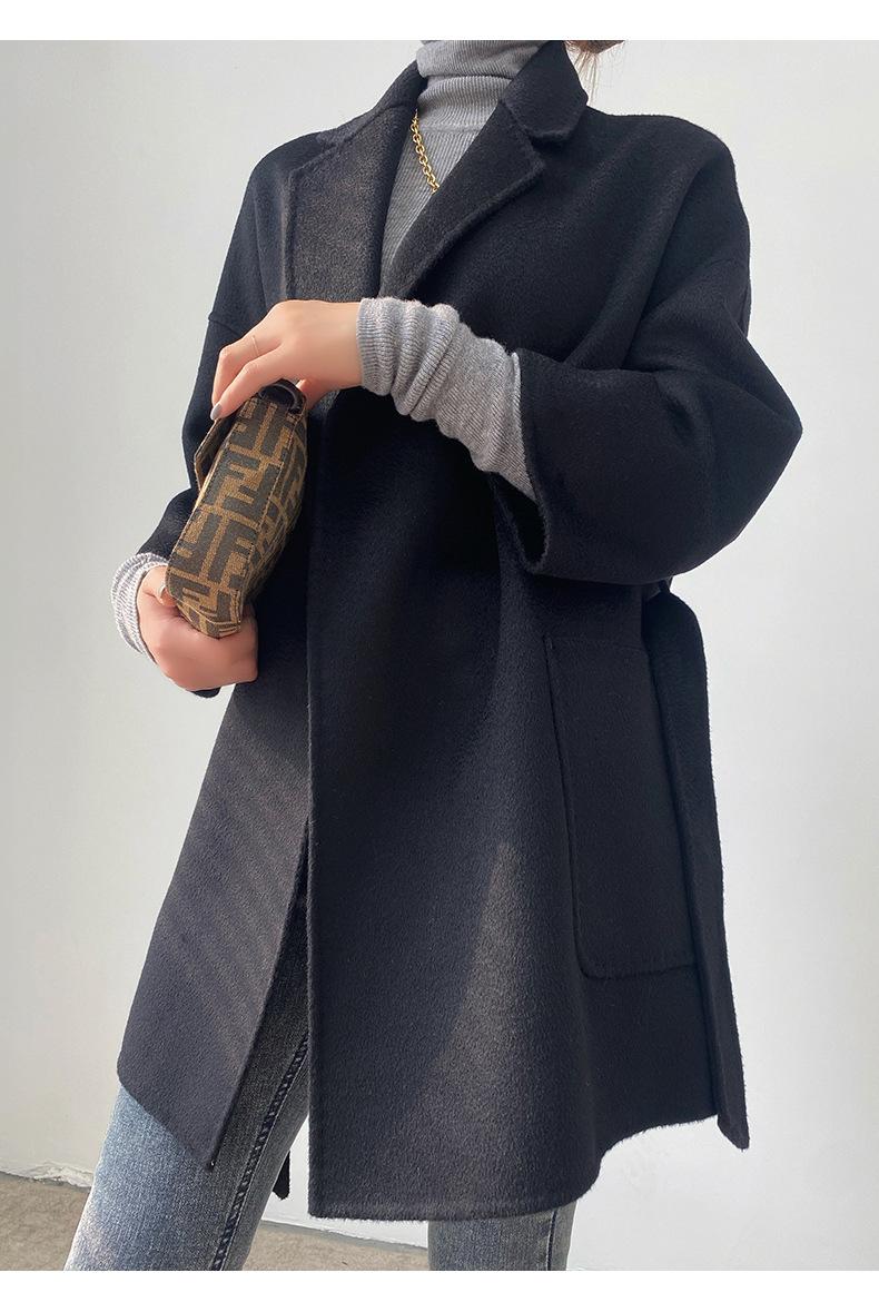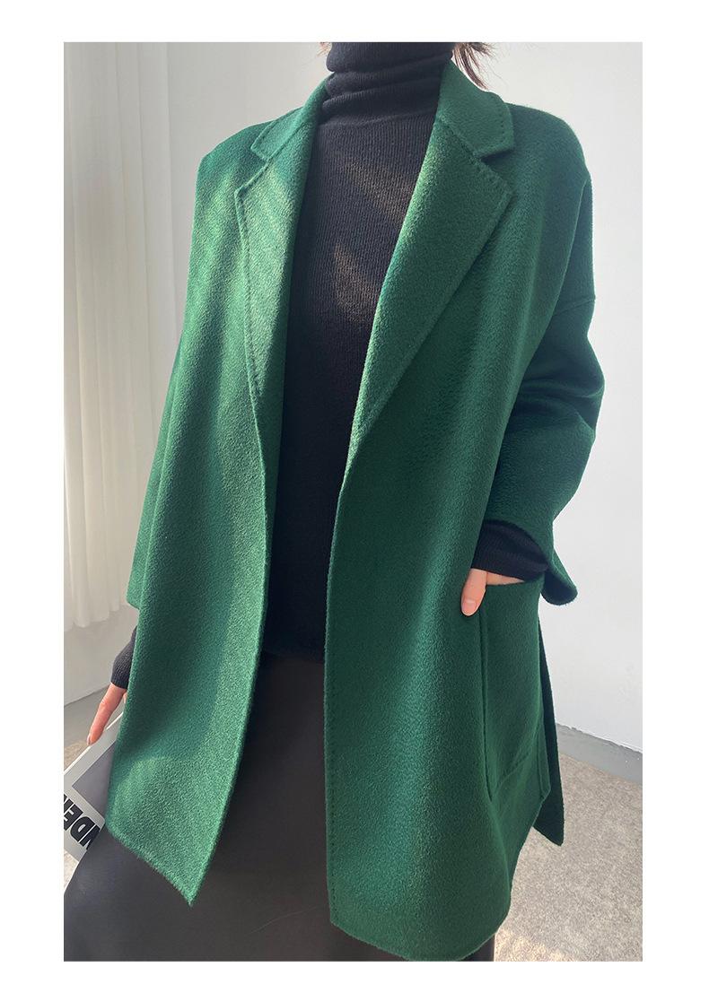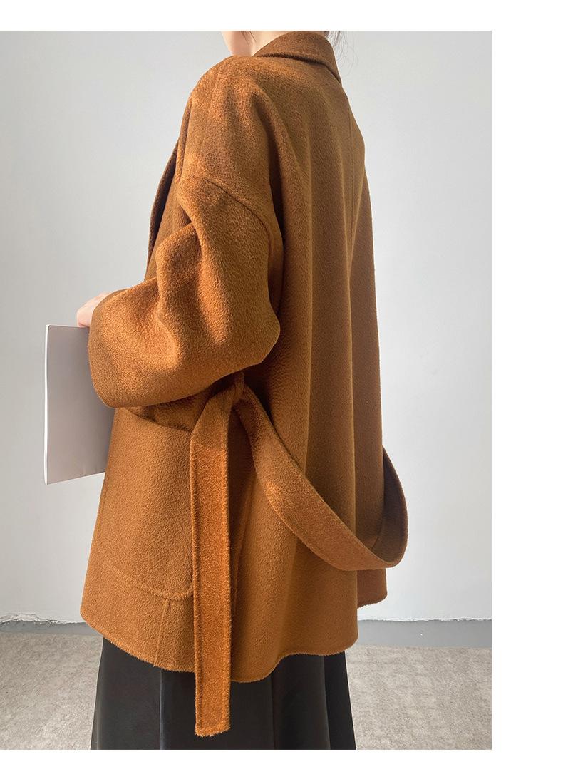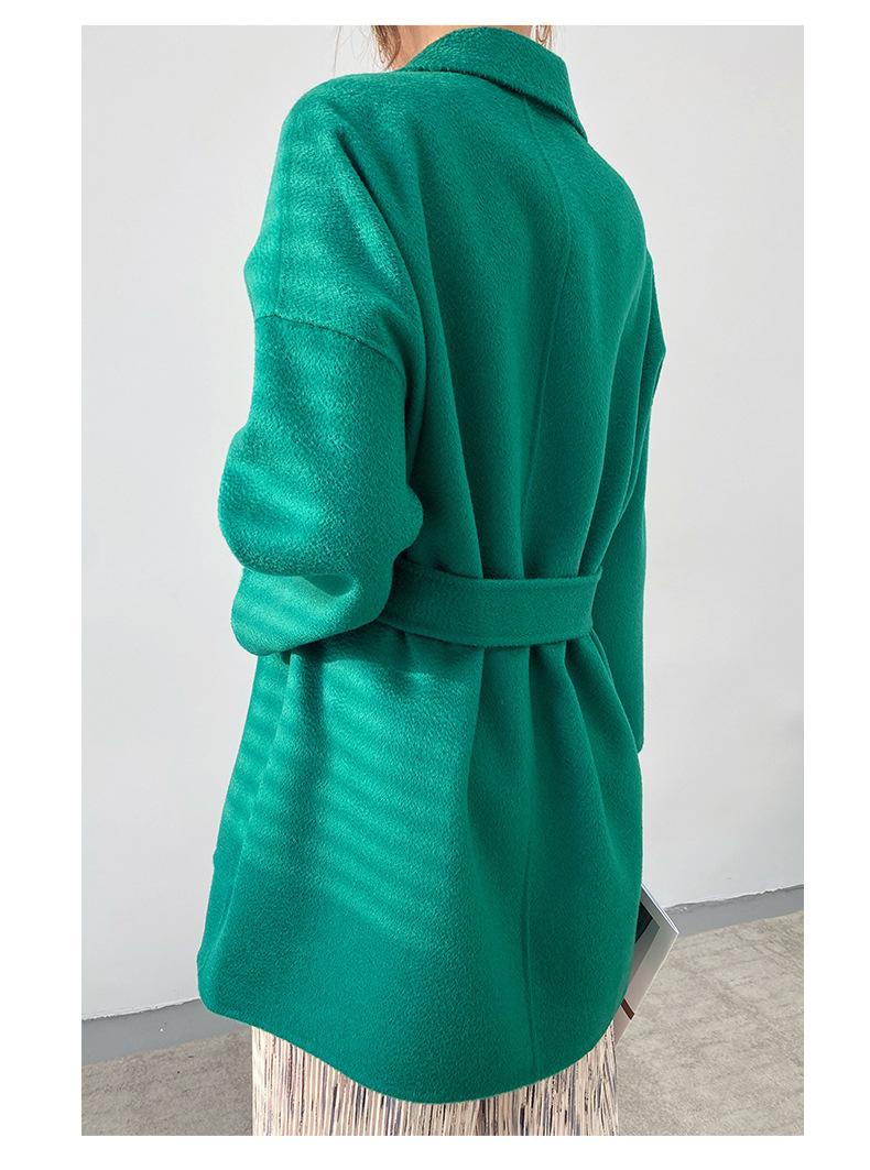 Abrigo de Lana de Doble Vista con Patrón de Ondas de Agua, Largo Medio, Cuello Tipo Traje, Lazo, Versátil, Elegante, Abrigo de Lana Holgado