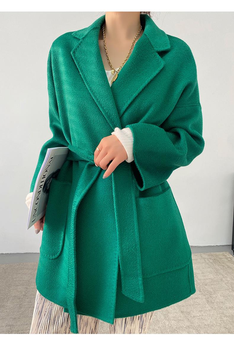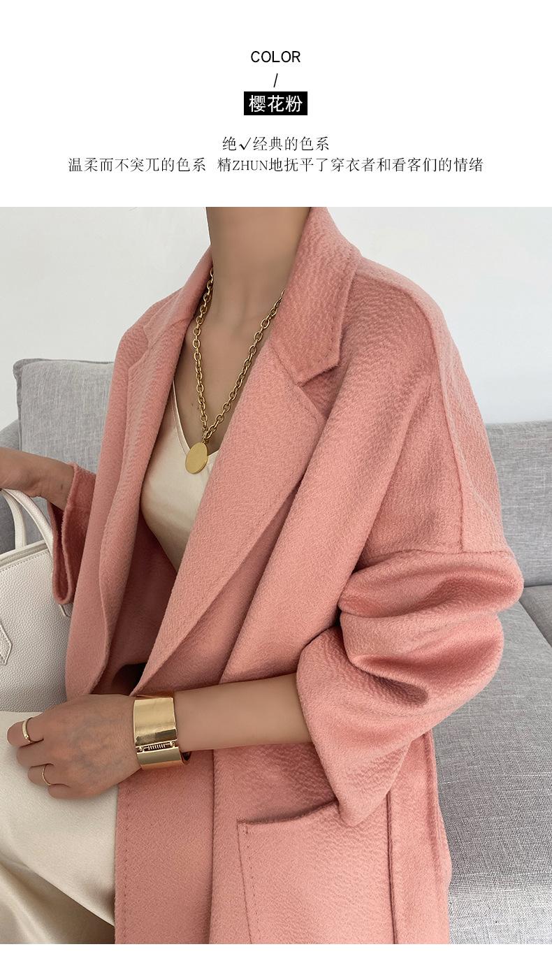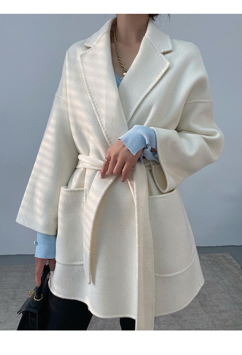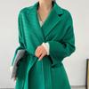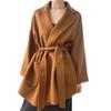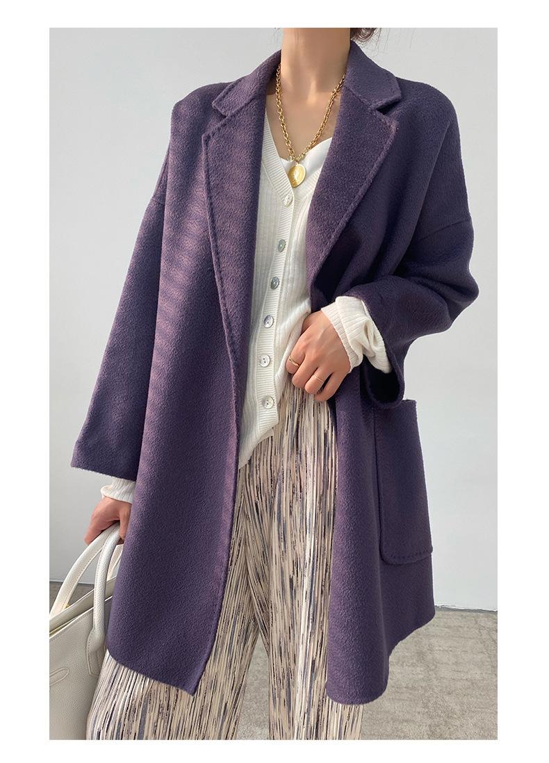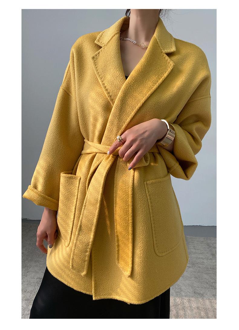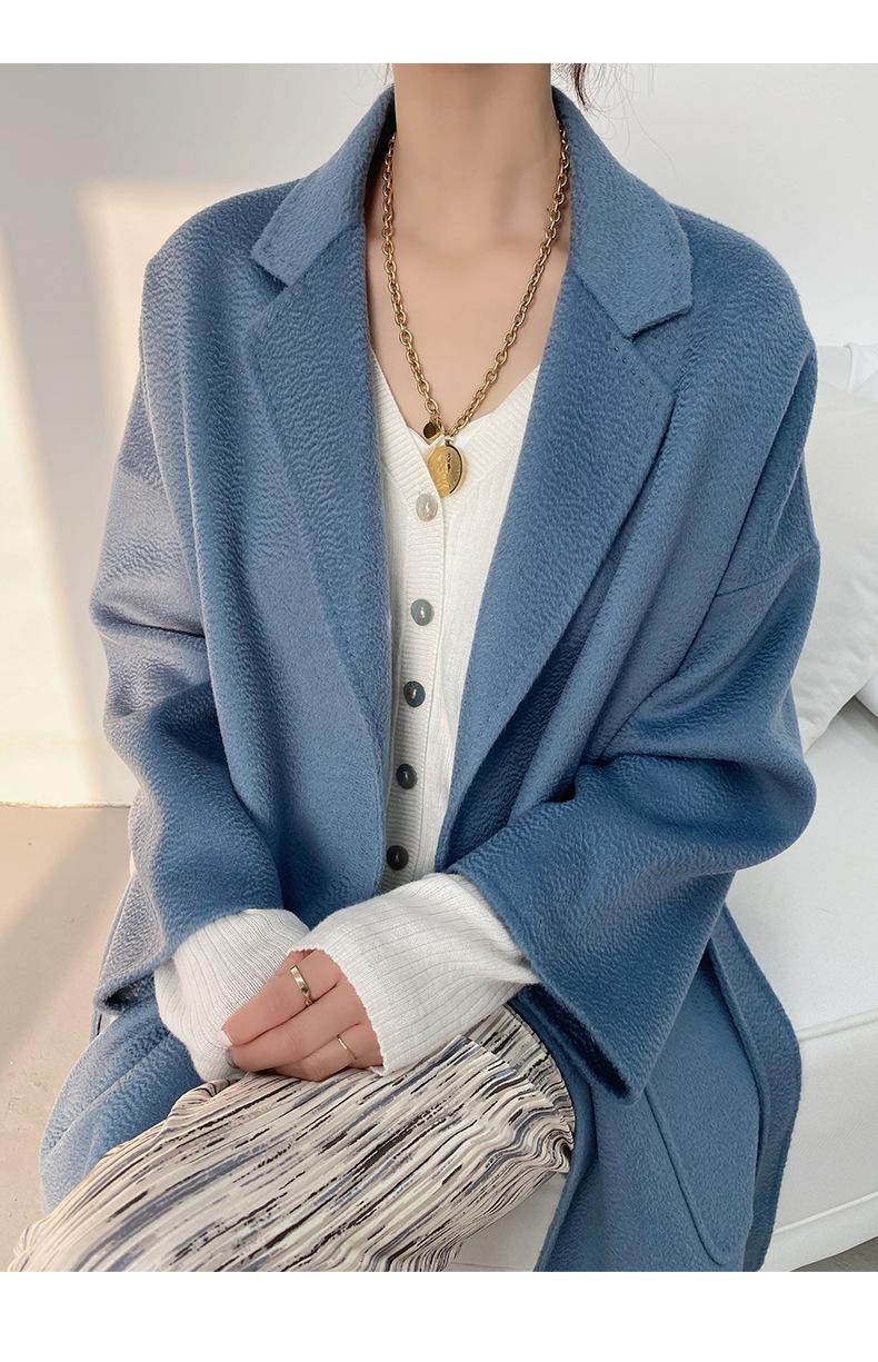 Abrigo de Lana de Doble Vista con Patrón de Ondas de Agua, Largo Medio, Cuello Tipo Traje, Lazo, Versátil, Elegante, Abrigo de Lana Holgado