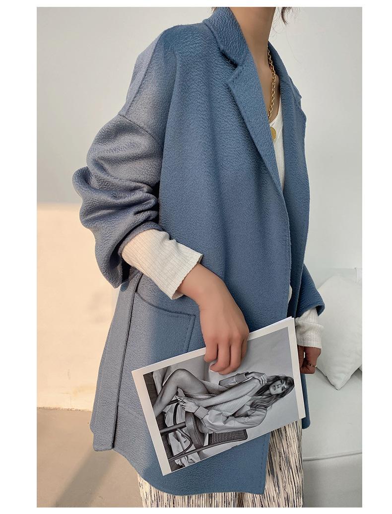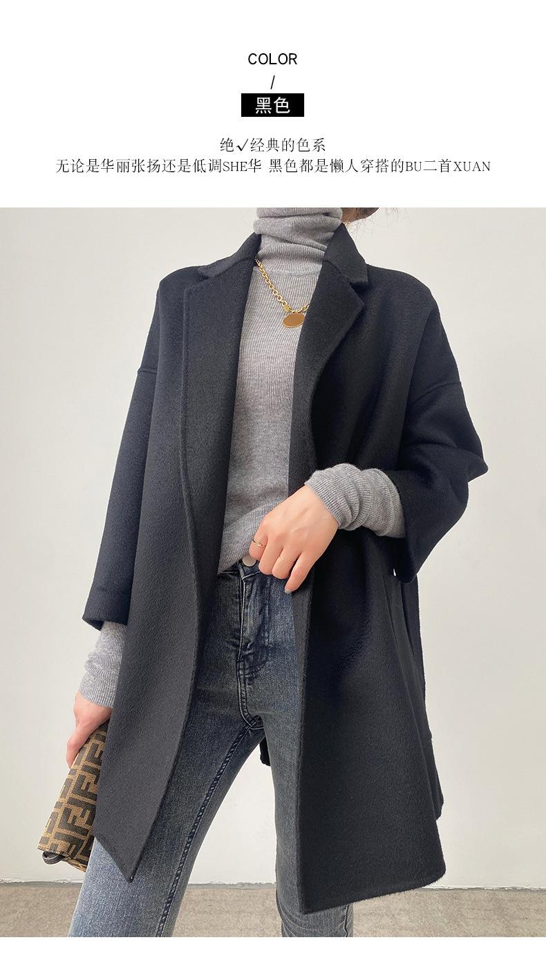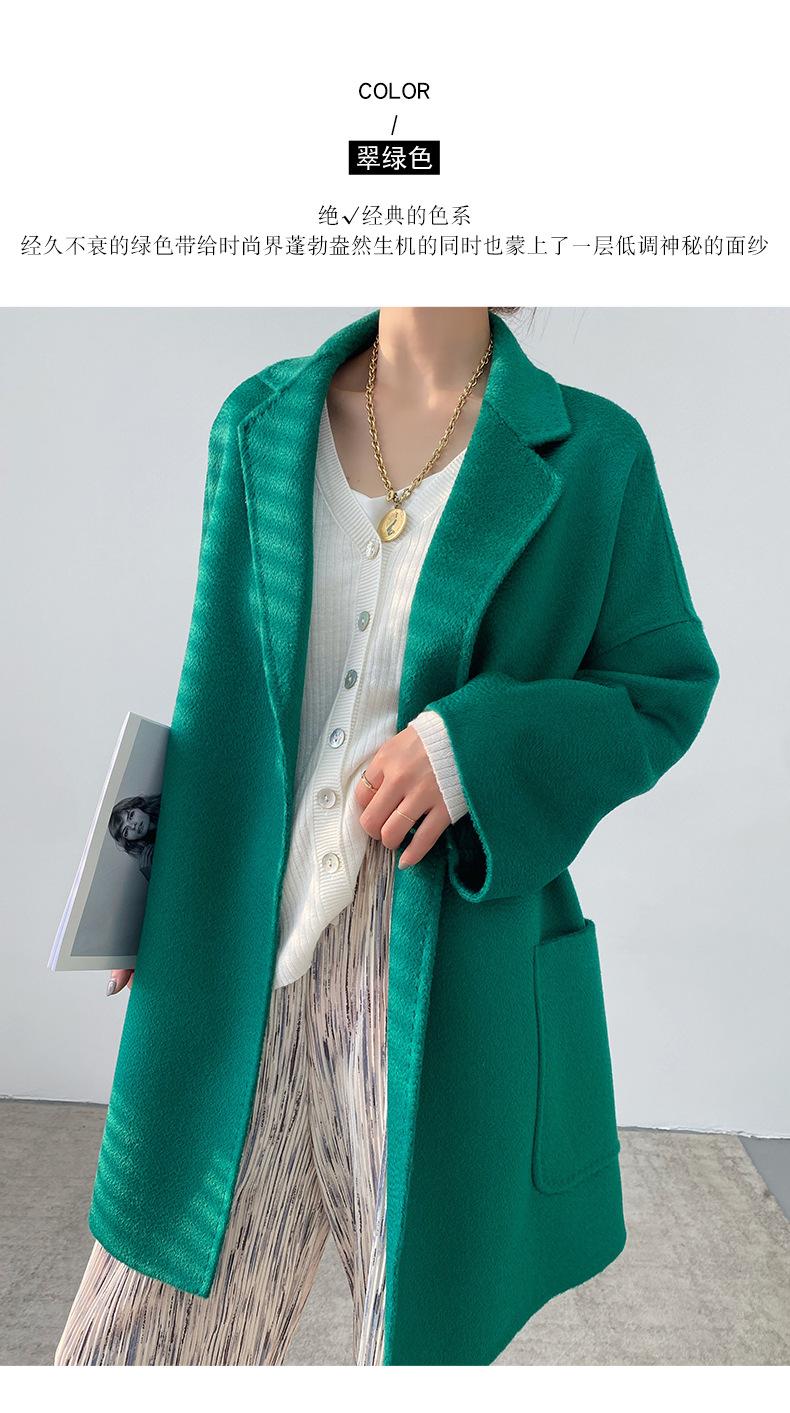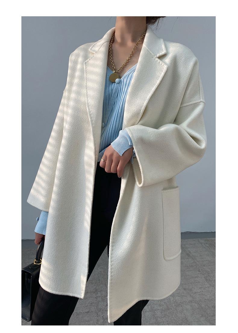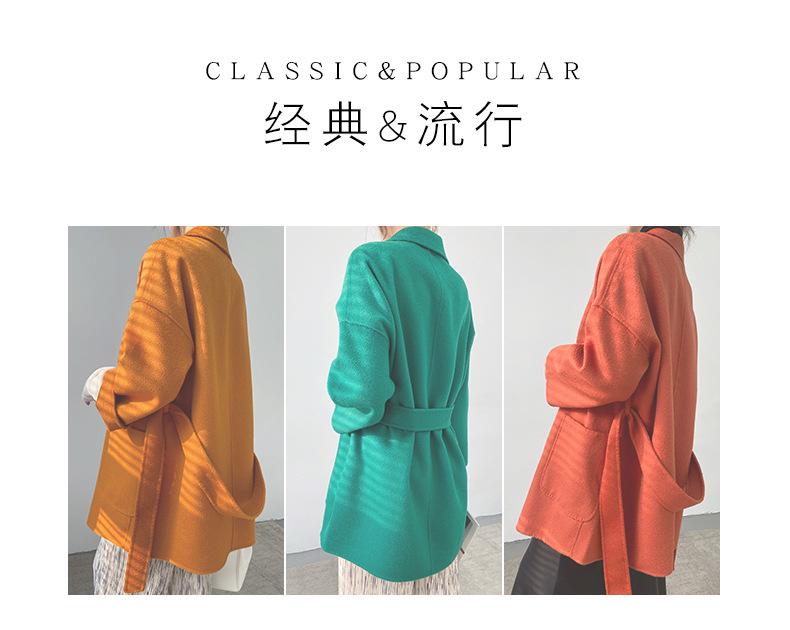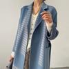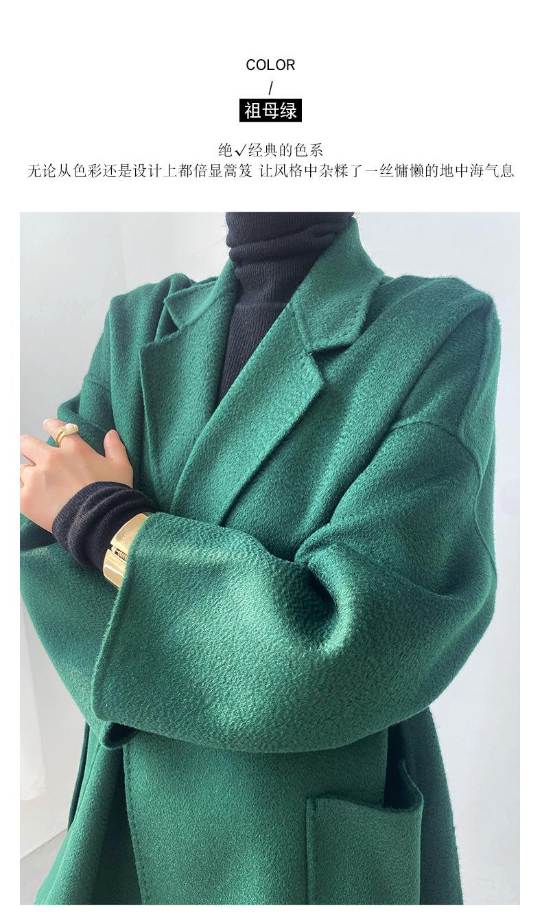 Abrigo de Lana de Doble Vista con Patrón de Ondas de Agua, Largo Medio, Cuello Tipo Traje, Lazo, Versátil, Elegante, Abrigo de Lana Holgado