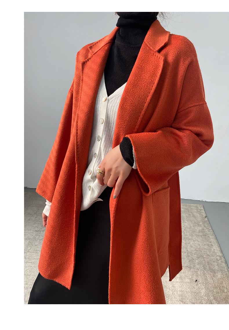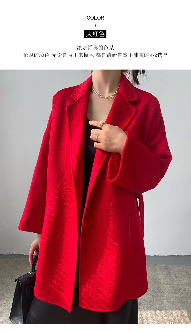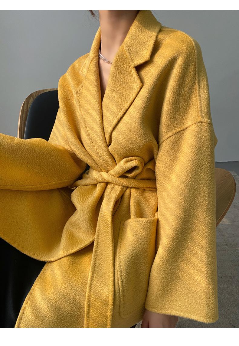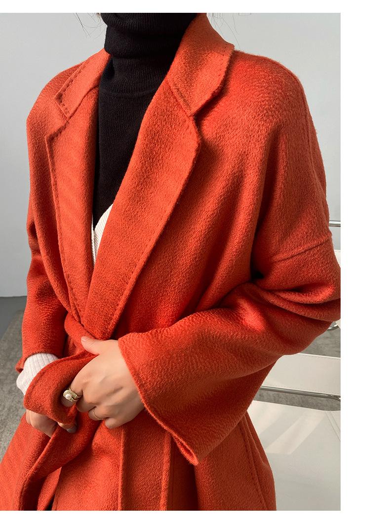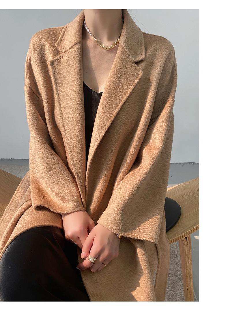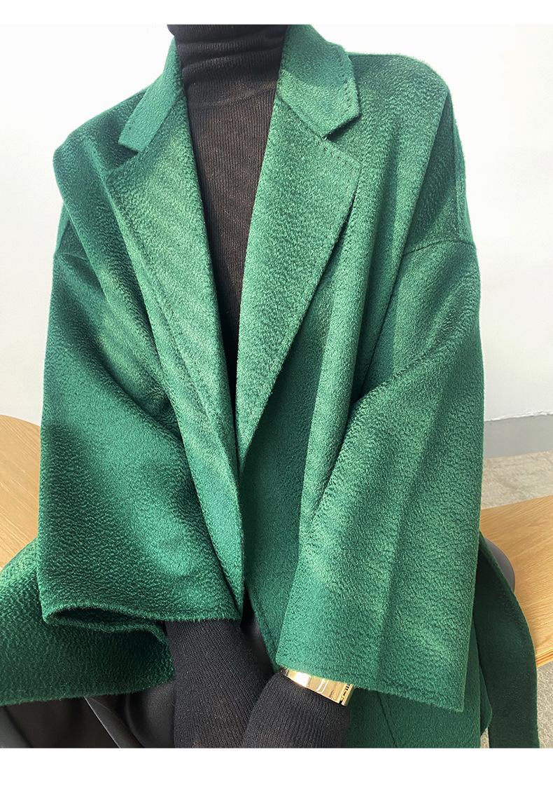 Abrigo de Lana de Doble Vista con Patrón de Ondas de Agua, Largo Medio, Cuello Tipo Traje, Lazo, Versátil, Elegante, Abrigo de Lana Holgado