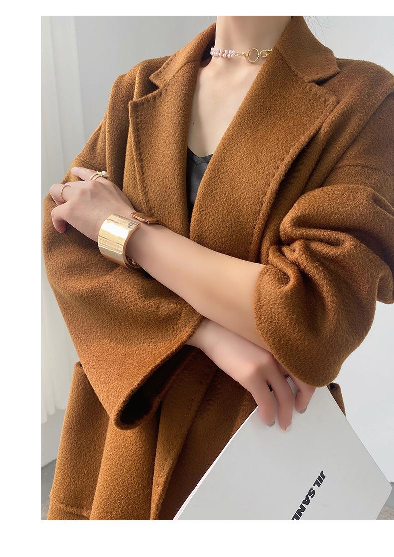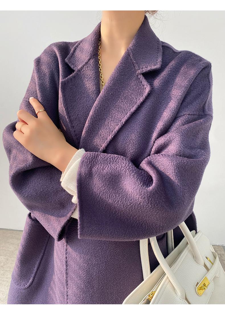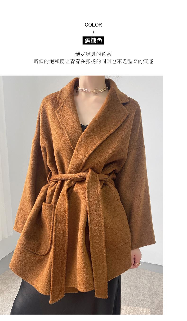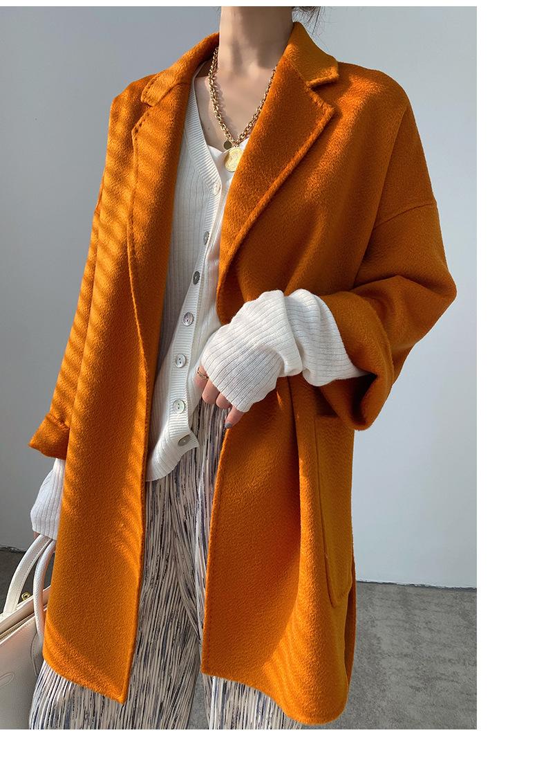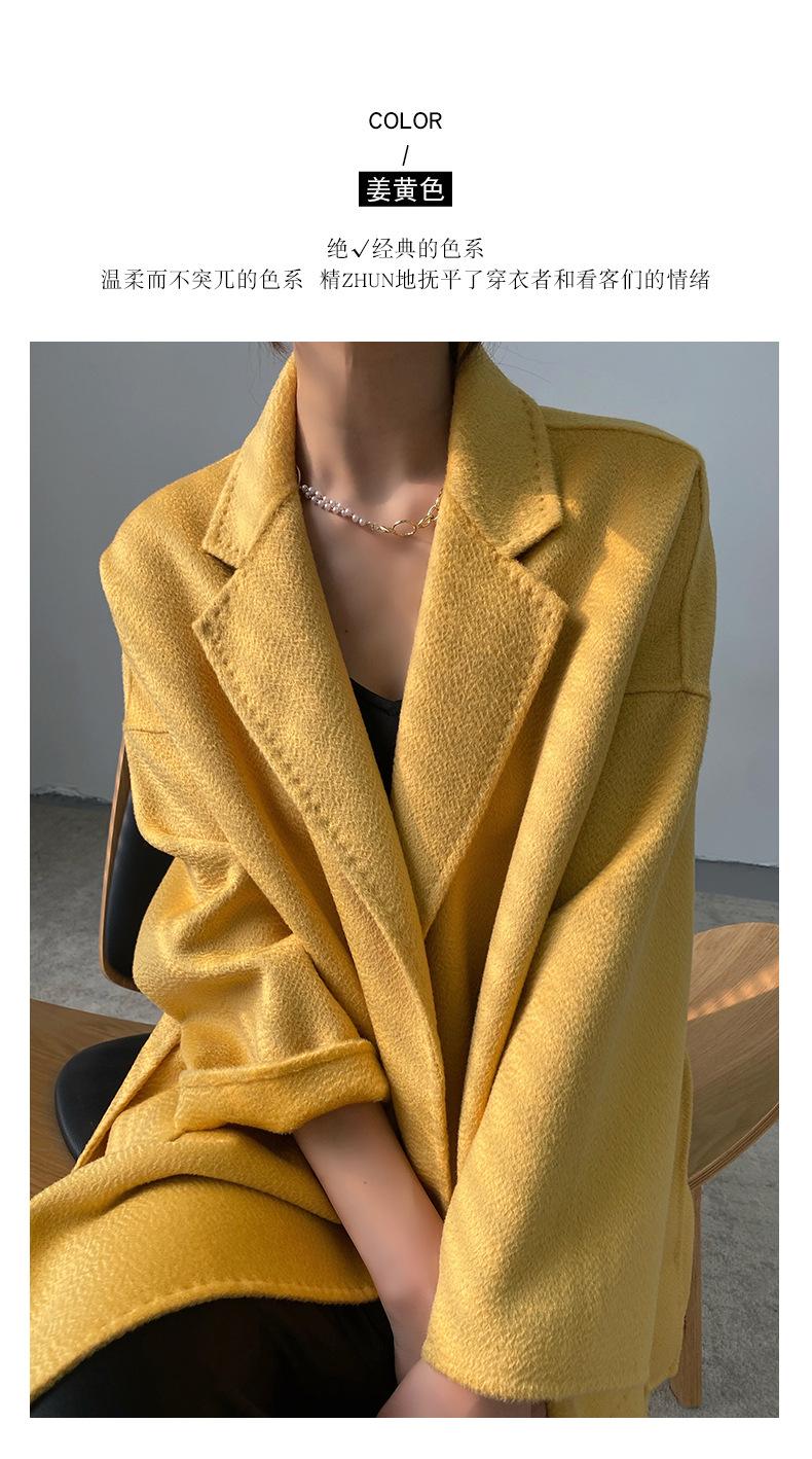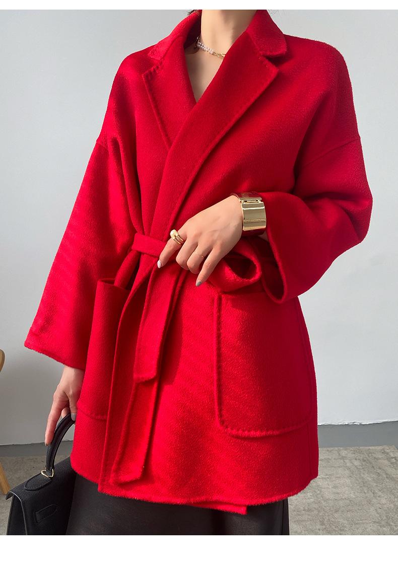 Abrigo de Lana de Doble Vista con Patrón de Ondas de Agua, Largo Medio, Cuello Tipo Traje, Lazo, Versátil, Elegante, Abrigo de Lana Holgado