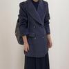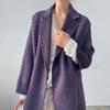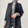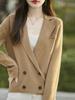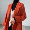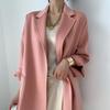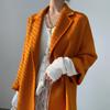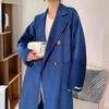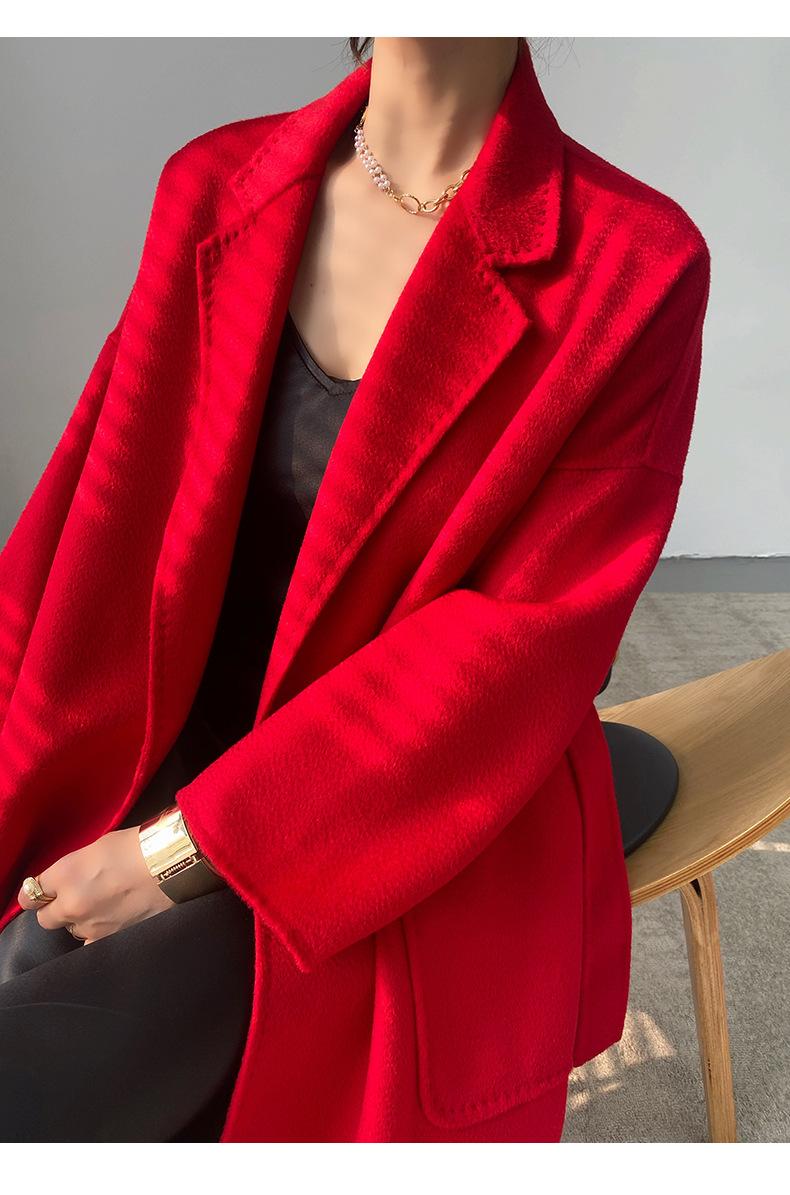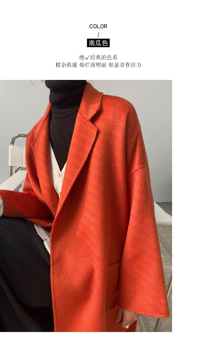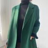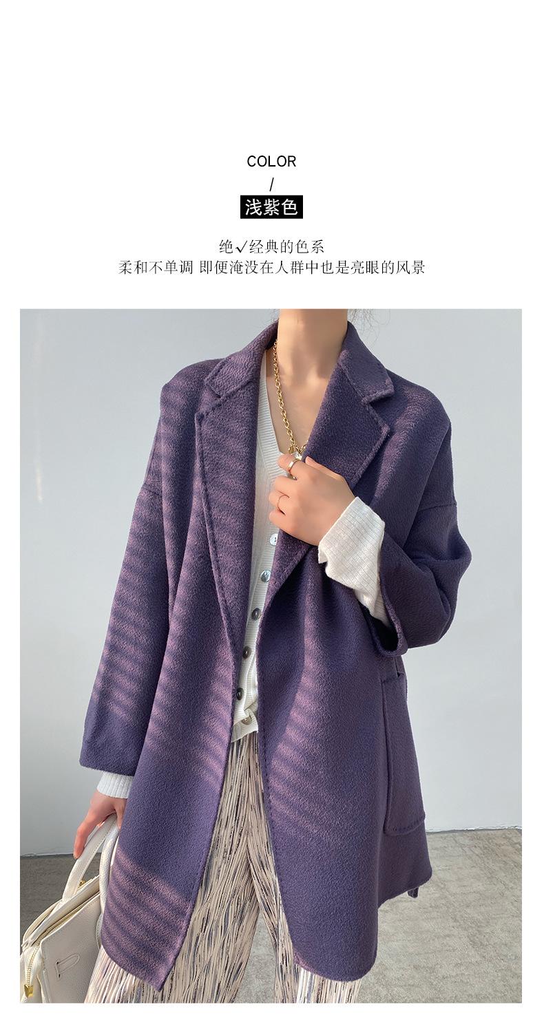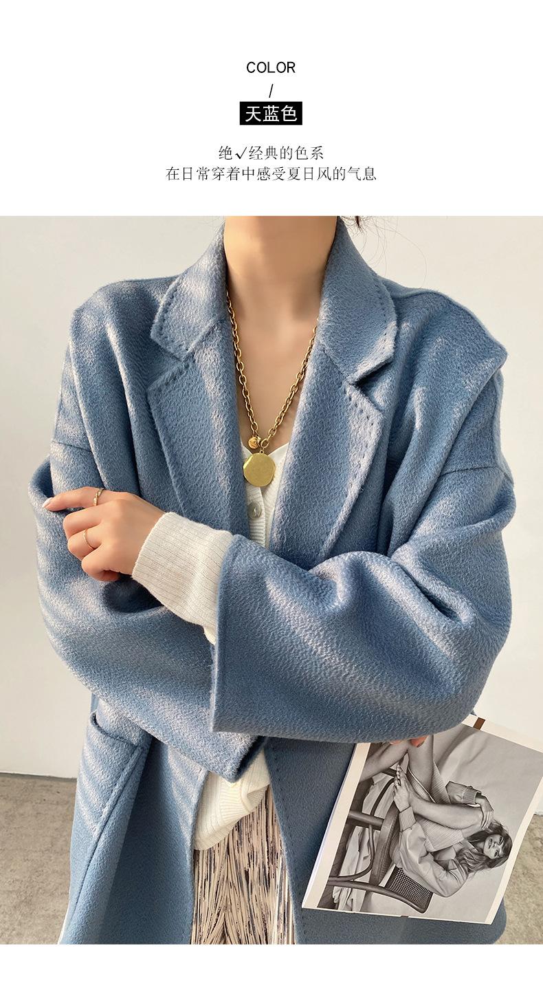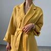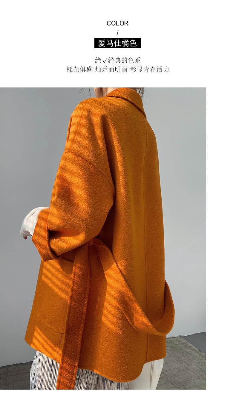 Abrigo de Lana de Doble Vista con Patrón de Ondas de Agua, Largo Medio, Cuello Tipo Traje, Lazo, Versátil, Elegante, Abrigo de Lana Holgado