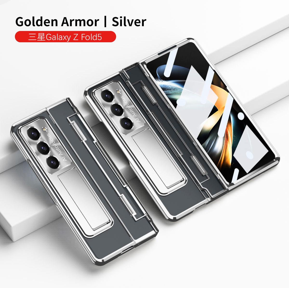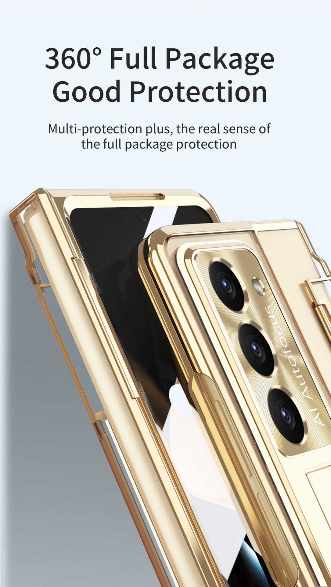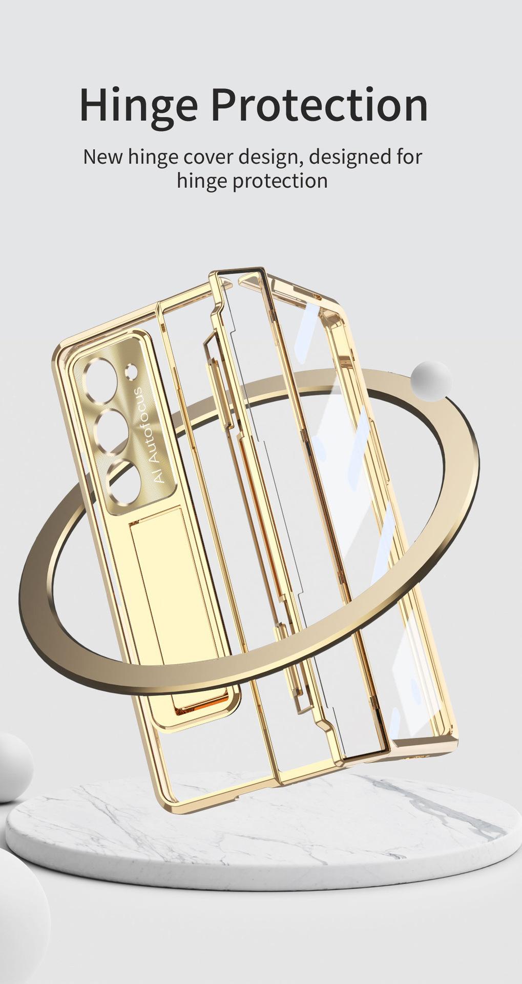 Funda para Teléfono Samsung Zfold5 FOLD4 Bisagra Plana Plegable Protectora W22 Electrochapada Película para Lente Funda de Cuero Adecuada