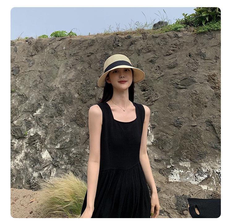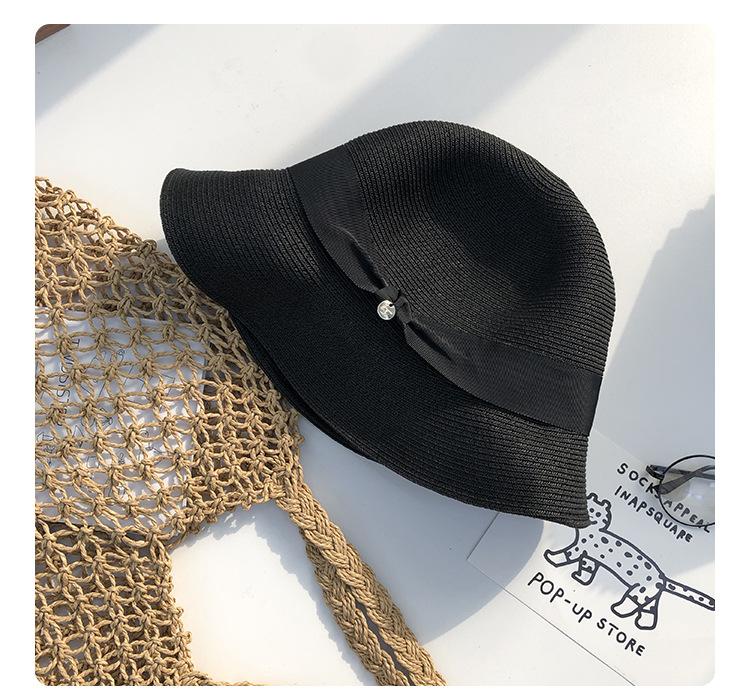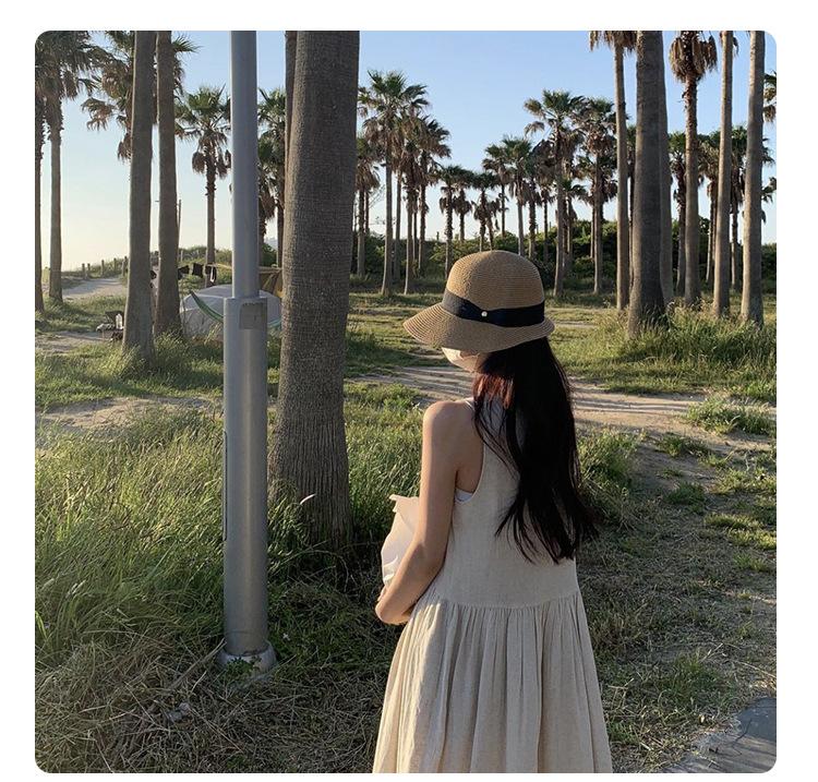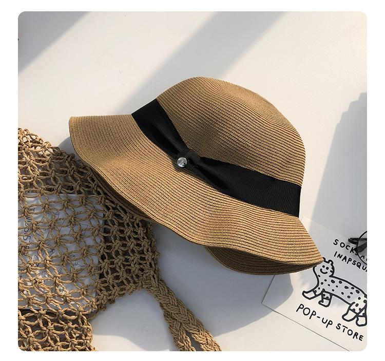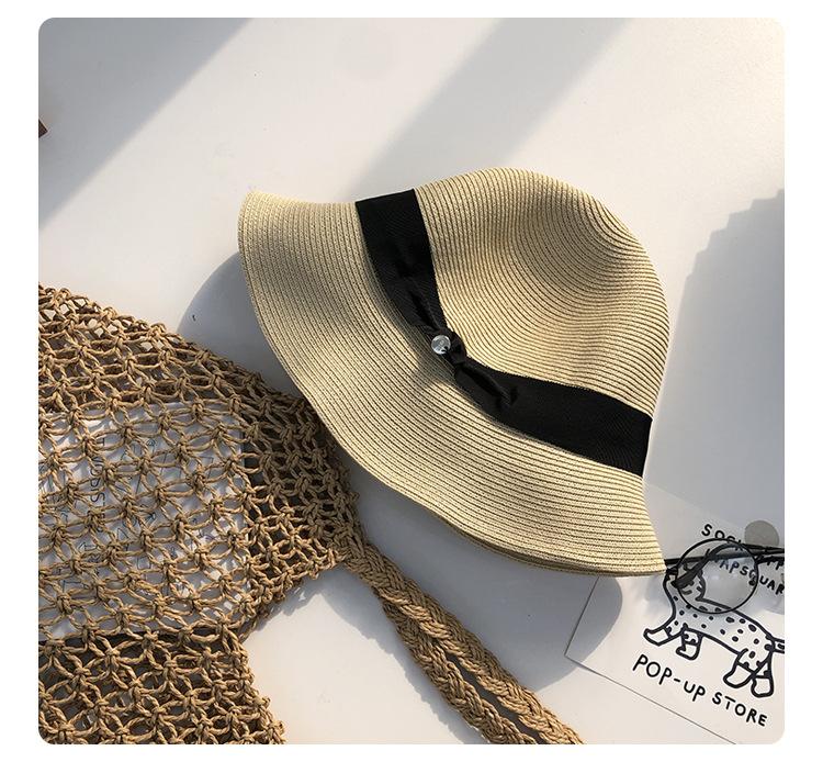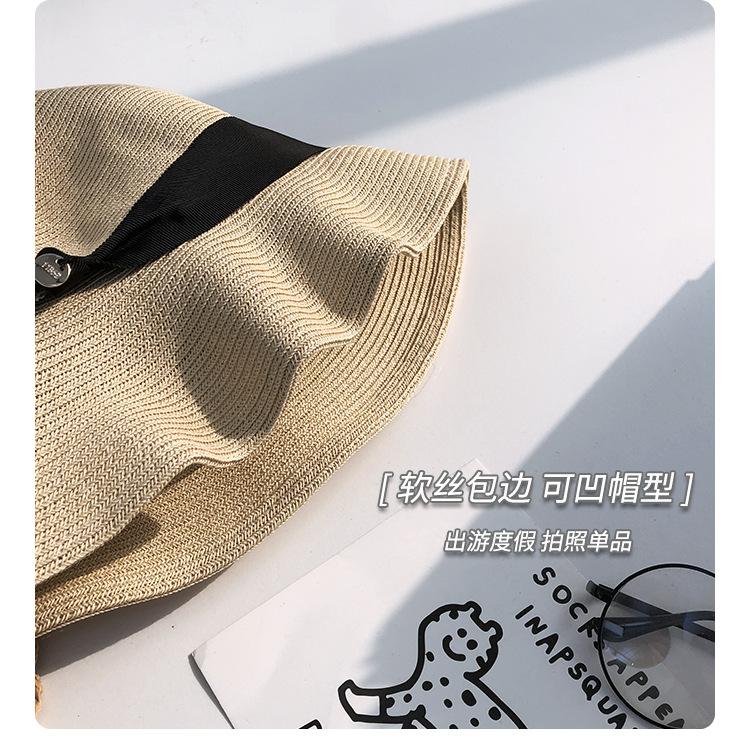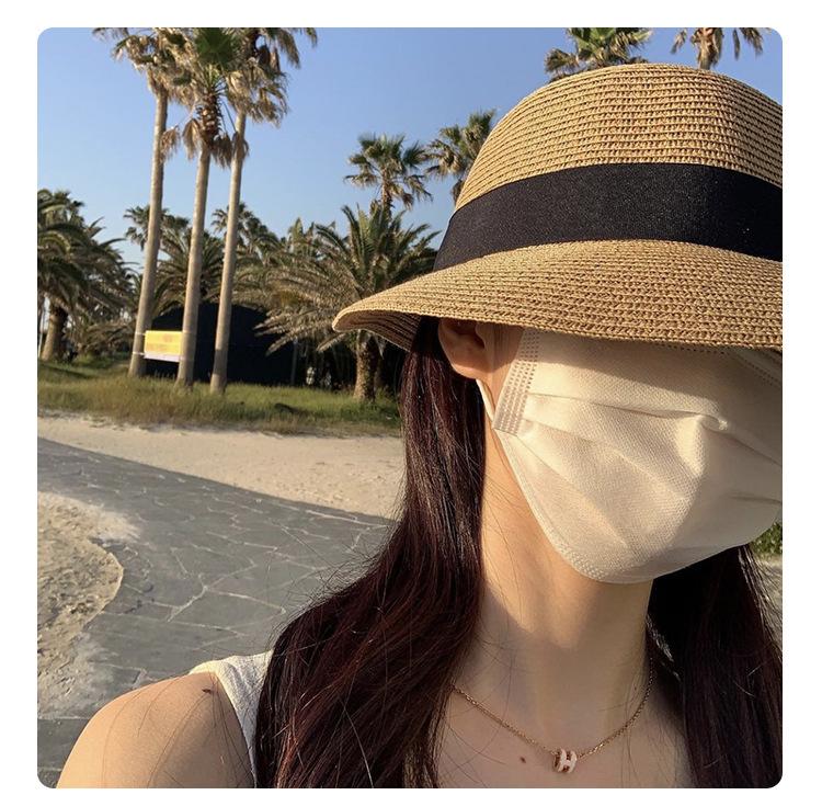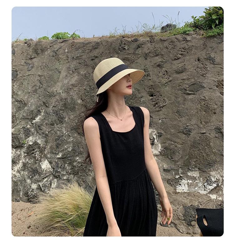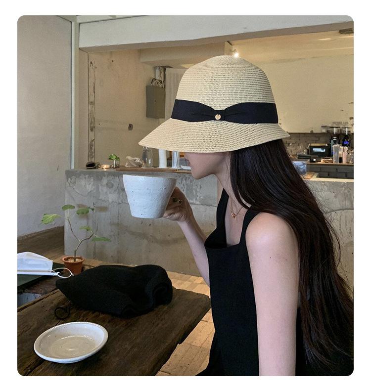 Sombrero de paja estilo Hepburn para mujer, ideal para verano, playa, vacaciones, estilo francés, estilo coreano, sombrero de pescador de paja.