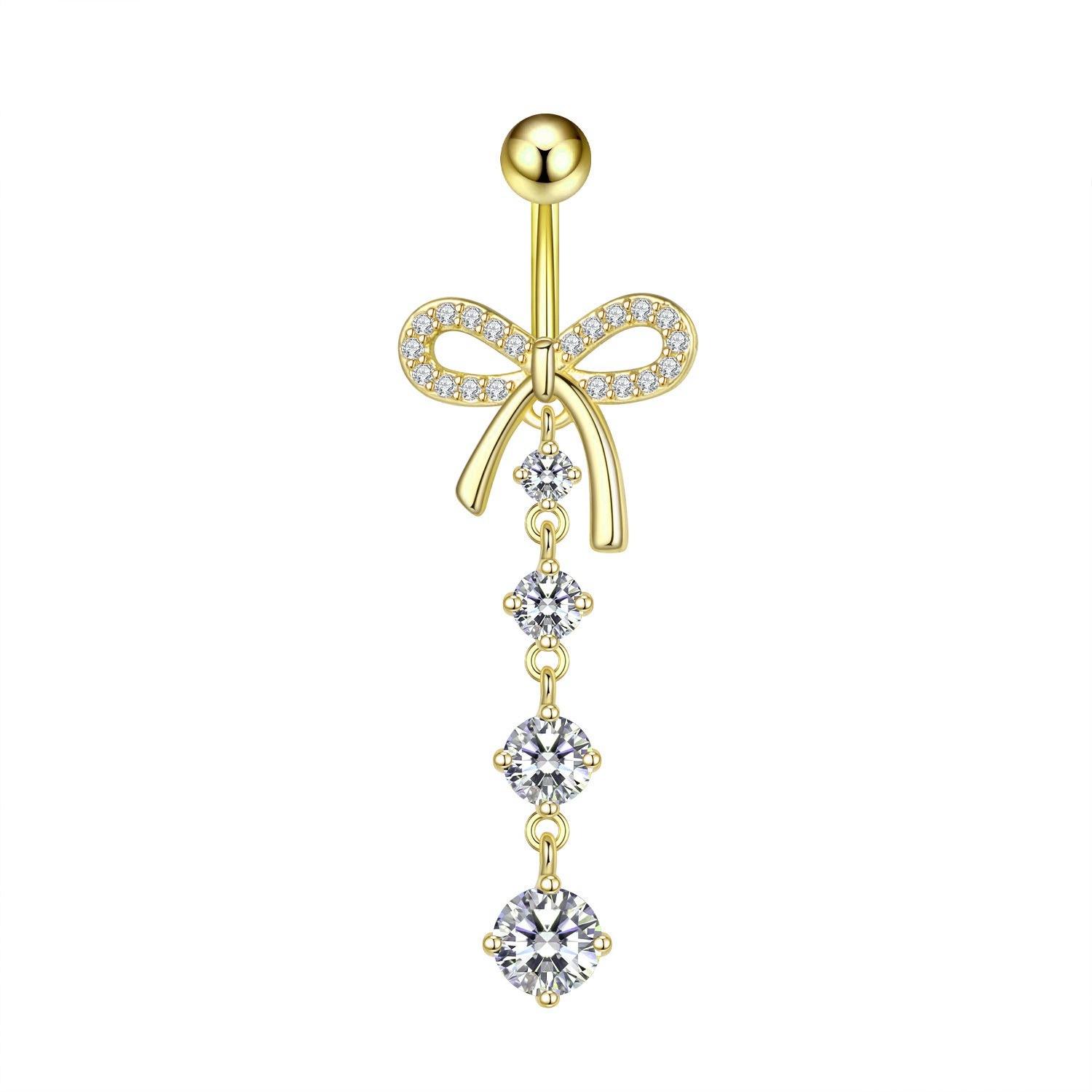 2023 Nueva moda europea y americana, simple arco largo, hebilla de ombligo de circón, anillo de ombligo, joyería piercing, fábrica al por mayor