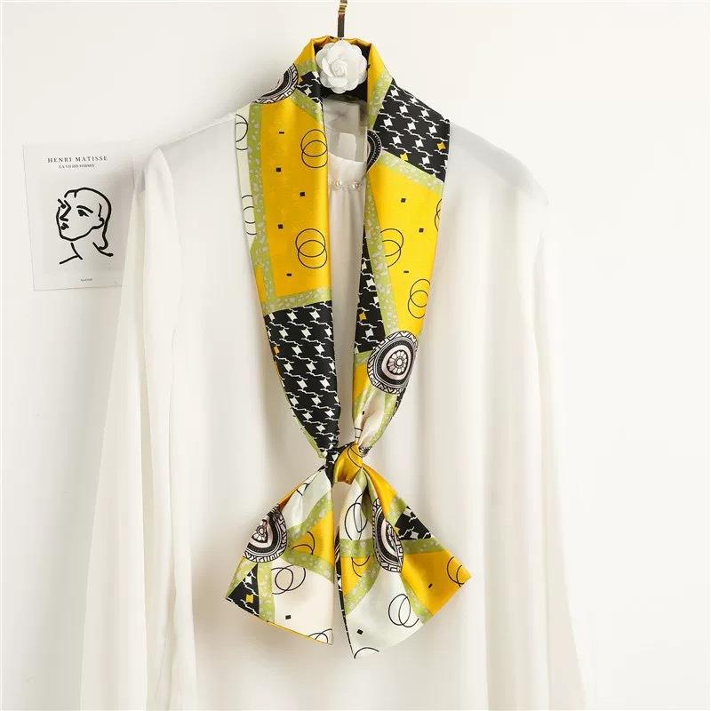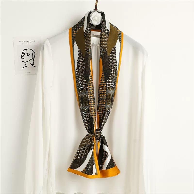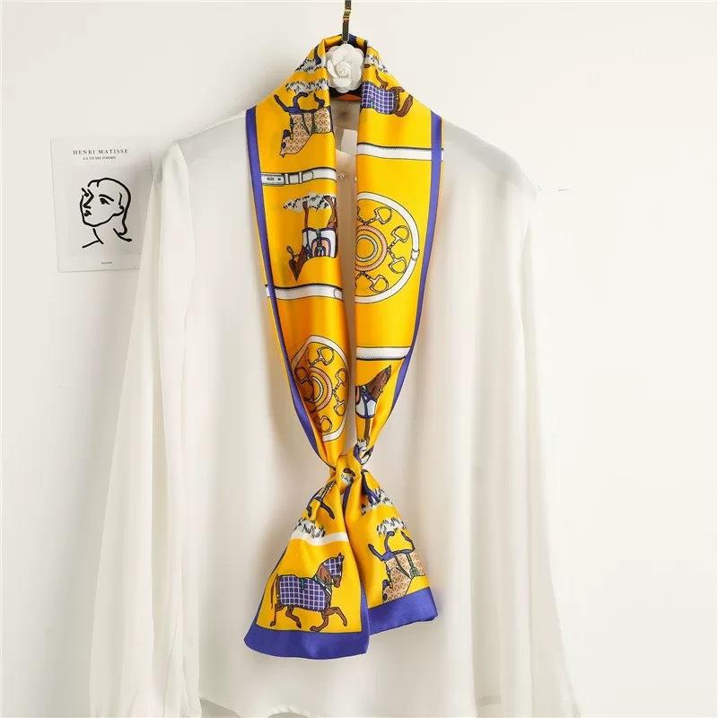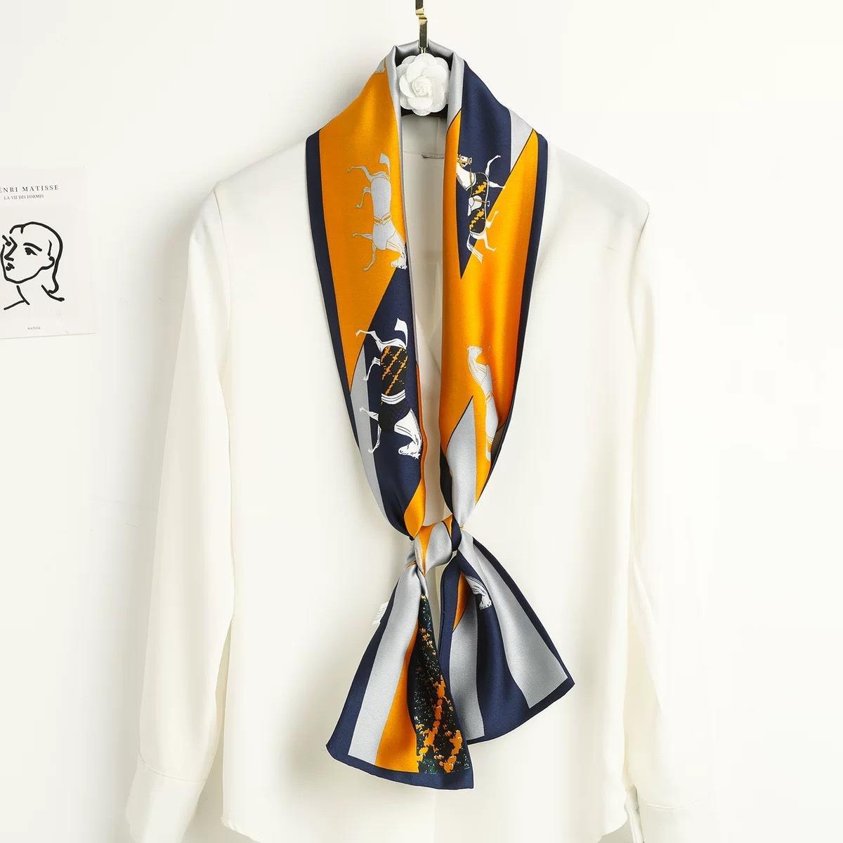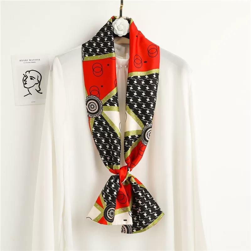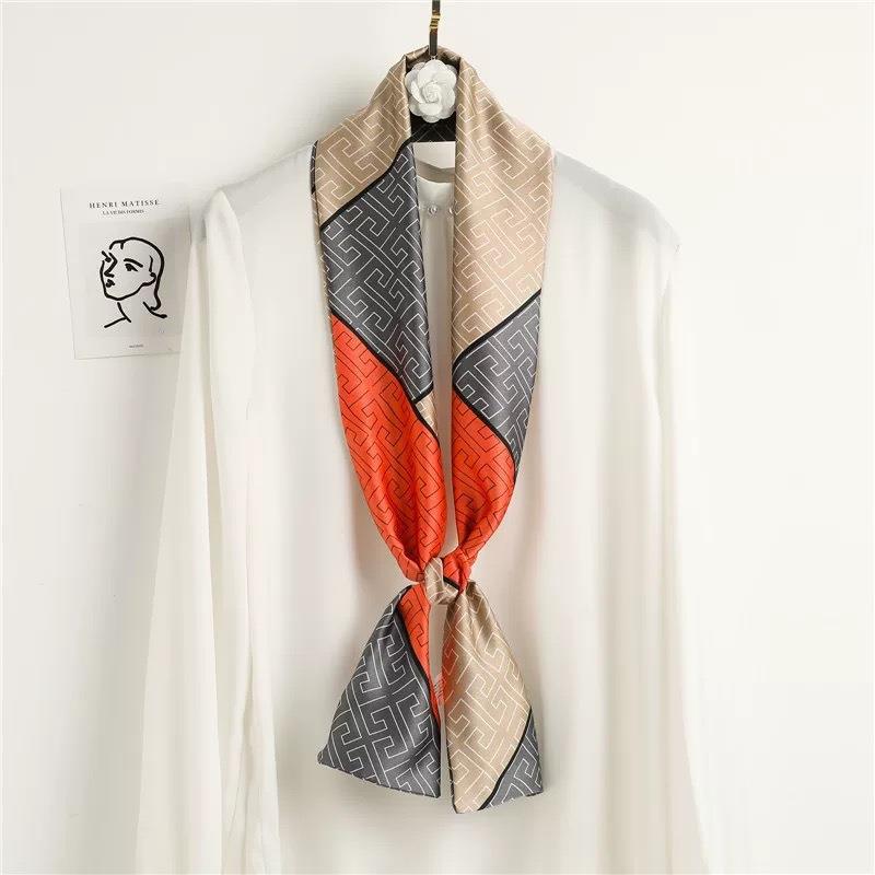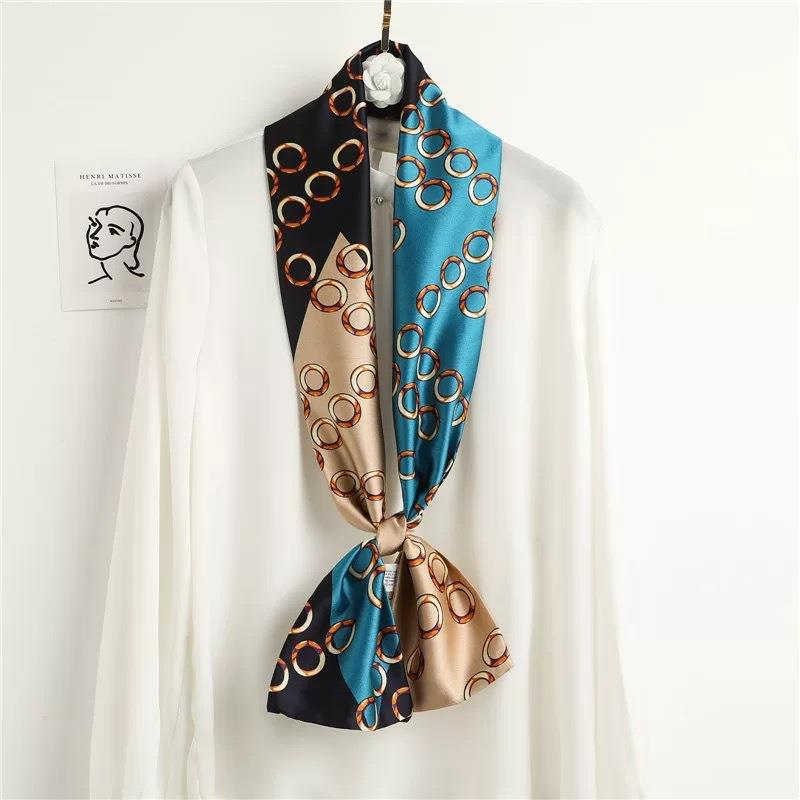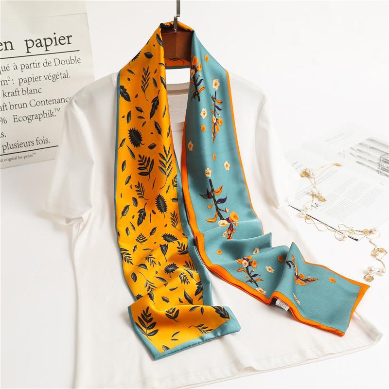 Bufanda de seda para mujer, cinta, accesorios para el cabello, corbata, bolso, bufanda pequeña, banda para el cabello estampada, seda artificial, bufanda de seda decorativa de moda larga, venta al por mayor