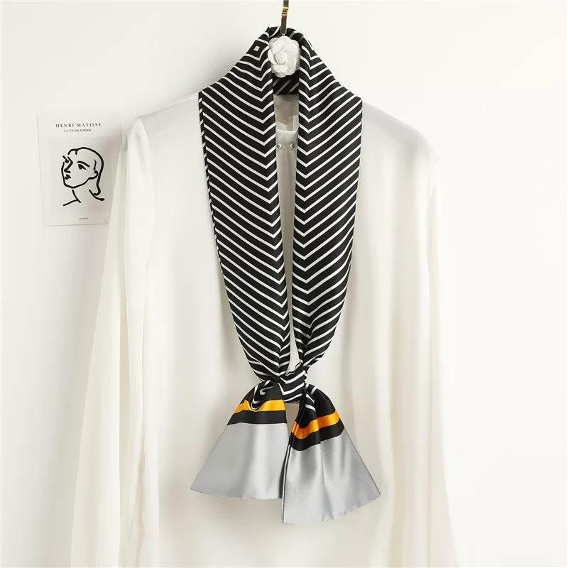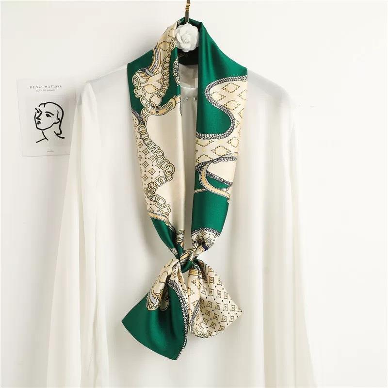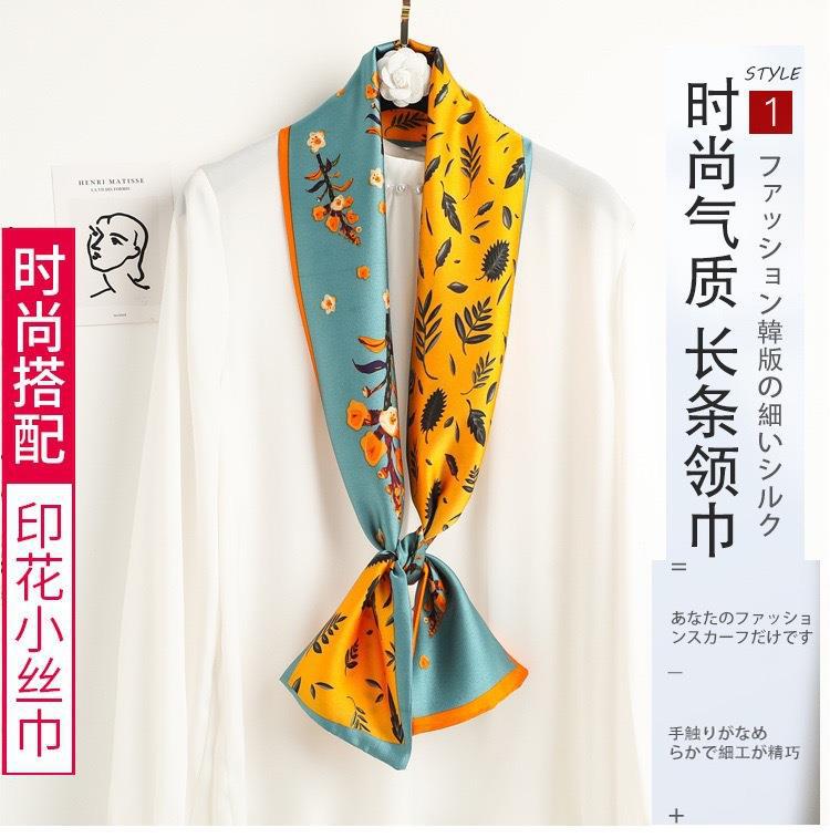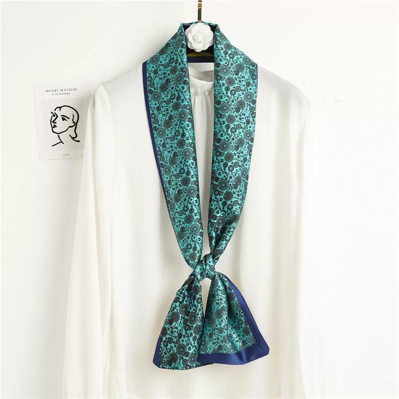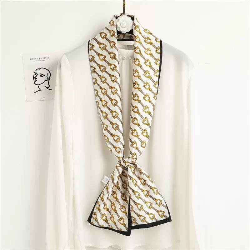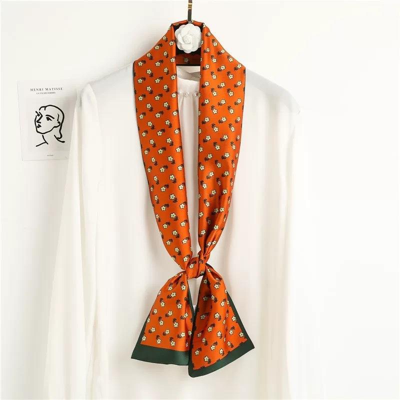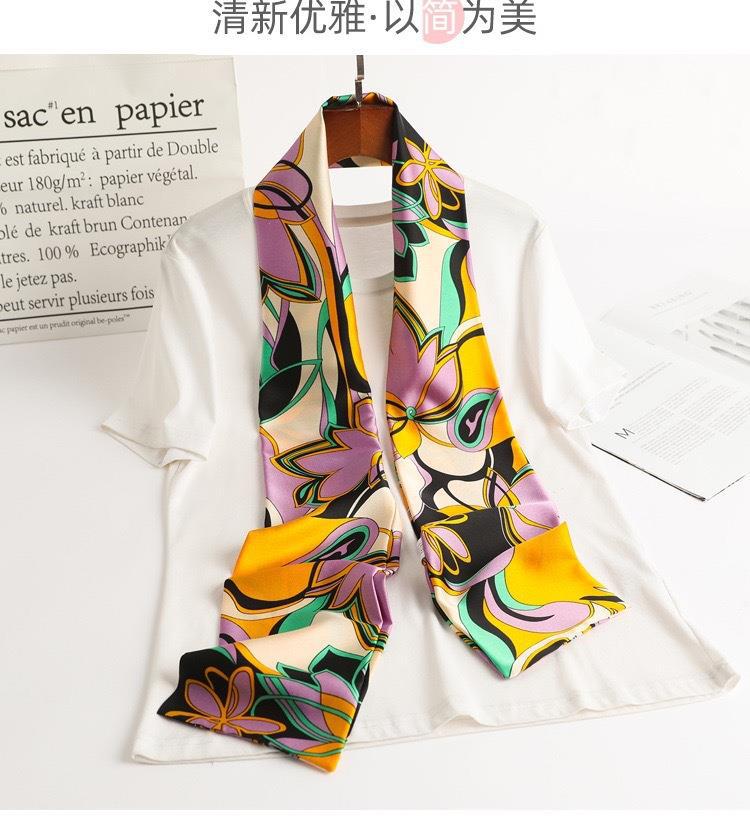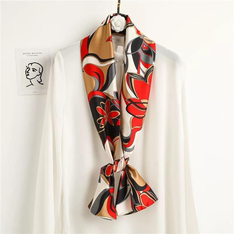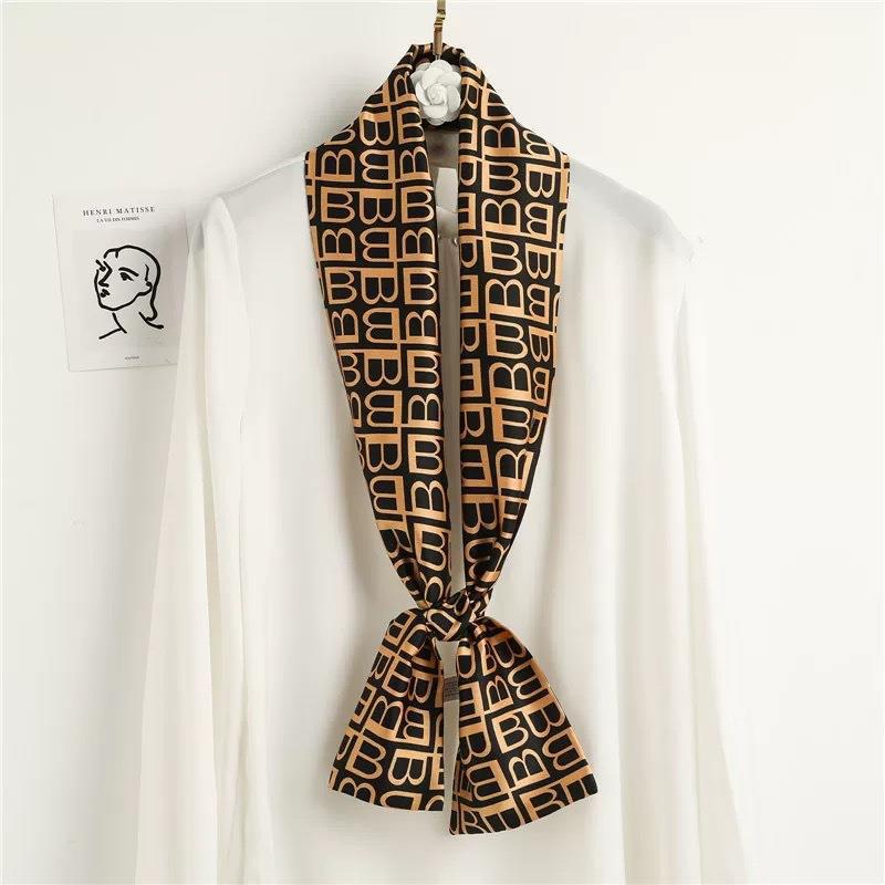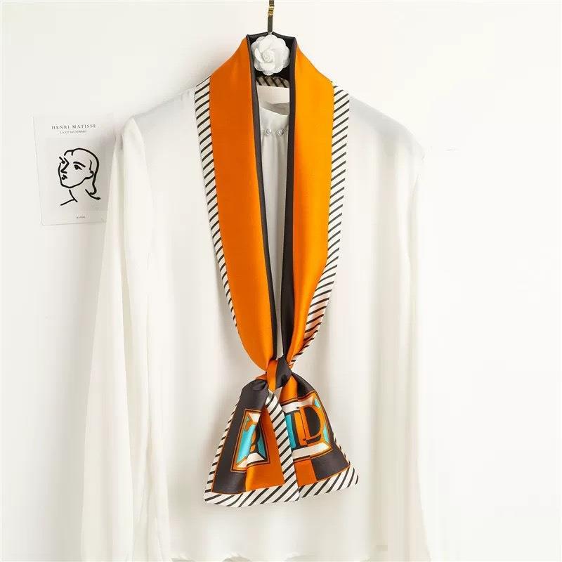 Bufanda de seda para mujer, cinta, accesorios para el cabello, corbata, bolso, bufanda pequeña, banda para el cabello estampada, seda artificial, bufanda de seda decorativa de moda larga, venta al por mayor