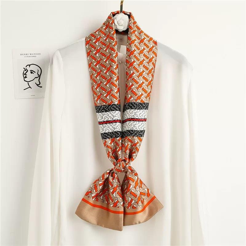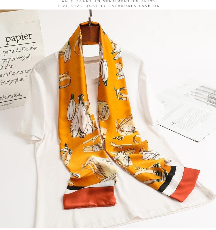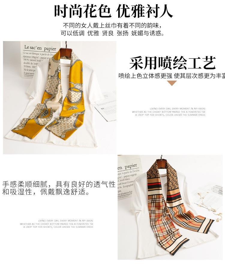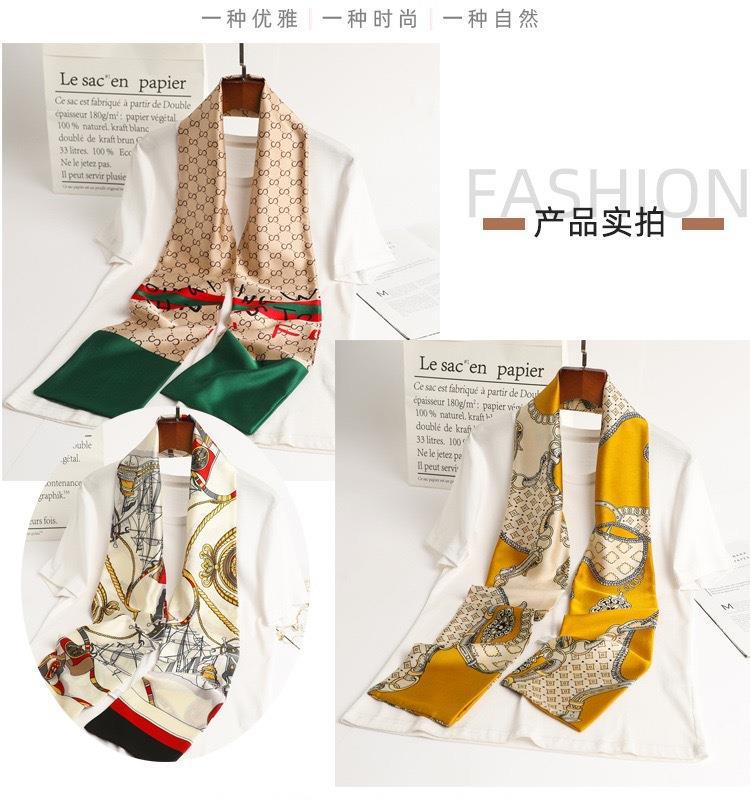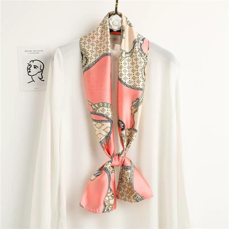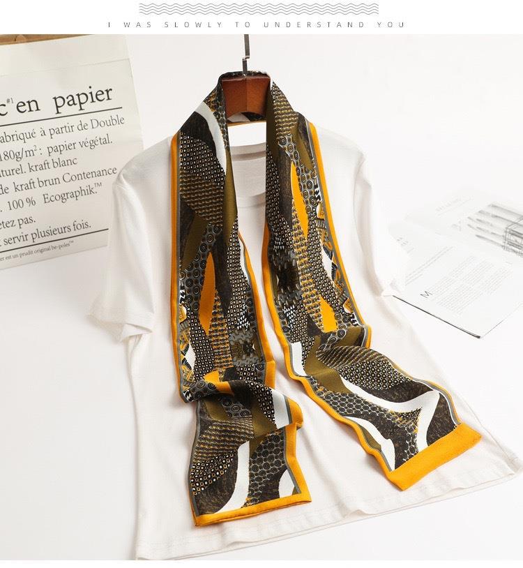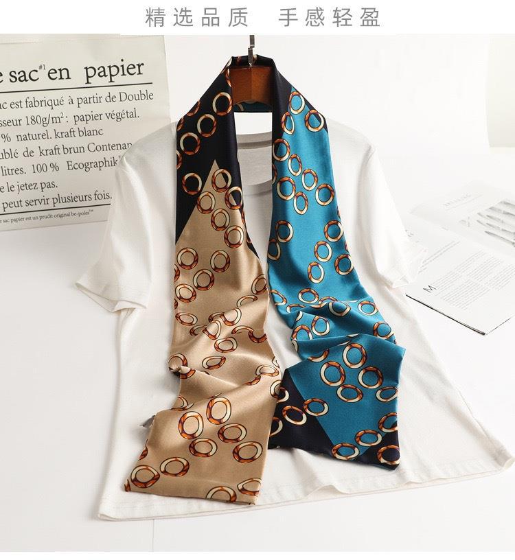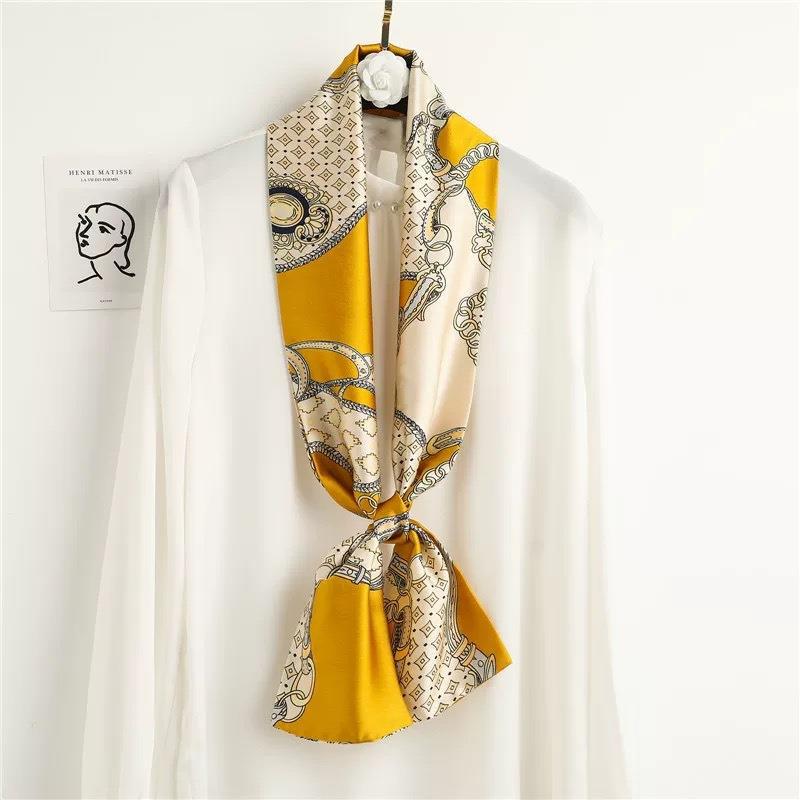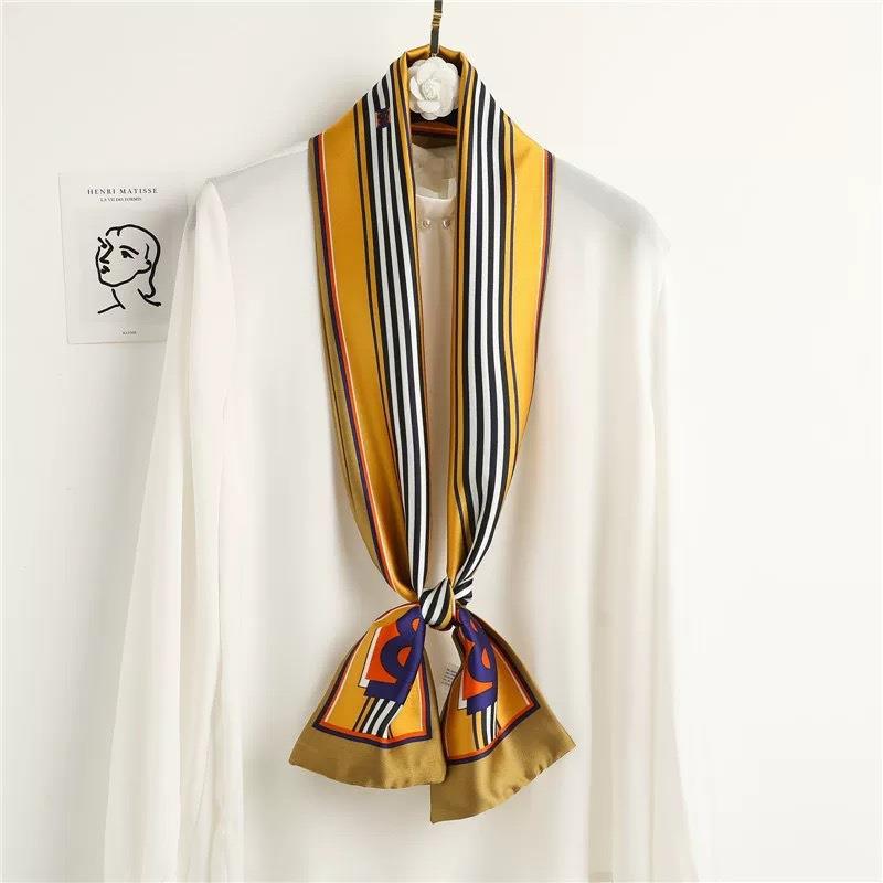 Bufanda de seda para mujer, cinta, accesorios para el cabello, corbata, bolso, bufanda pequeña, banda para el cabello estampada, seda artificial, bufanda de seda decorativa de moda larga, venta al por mayor