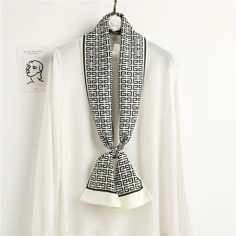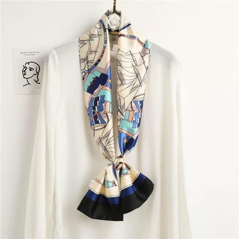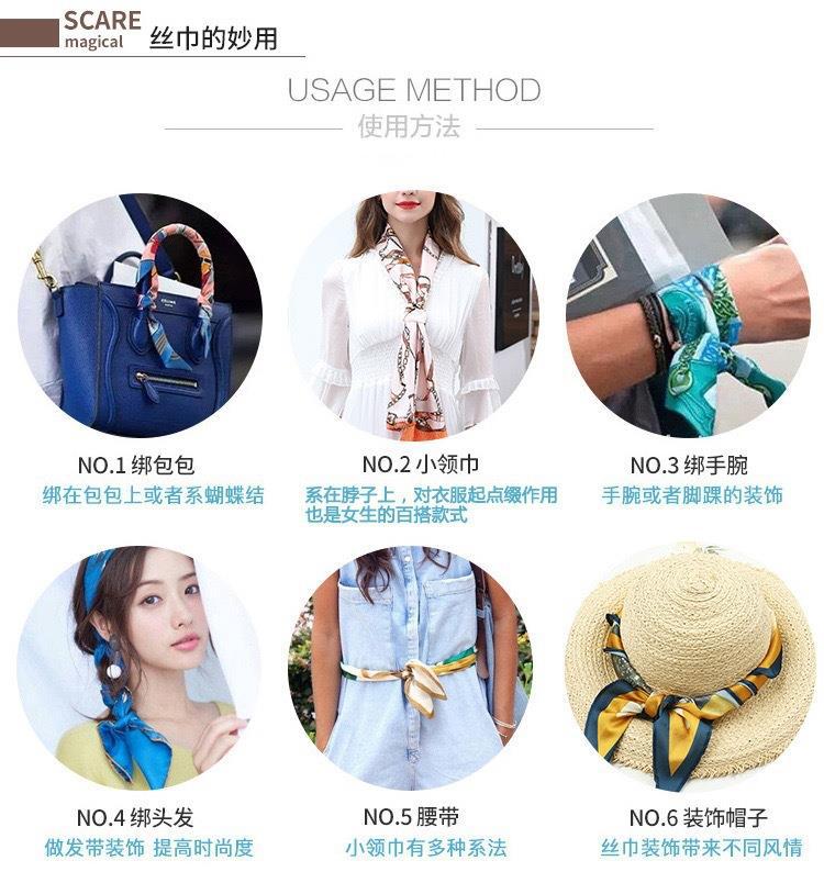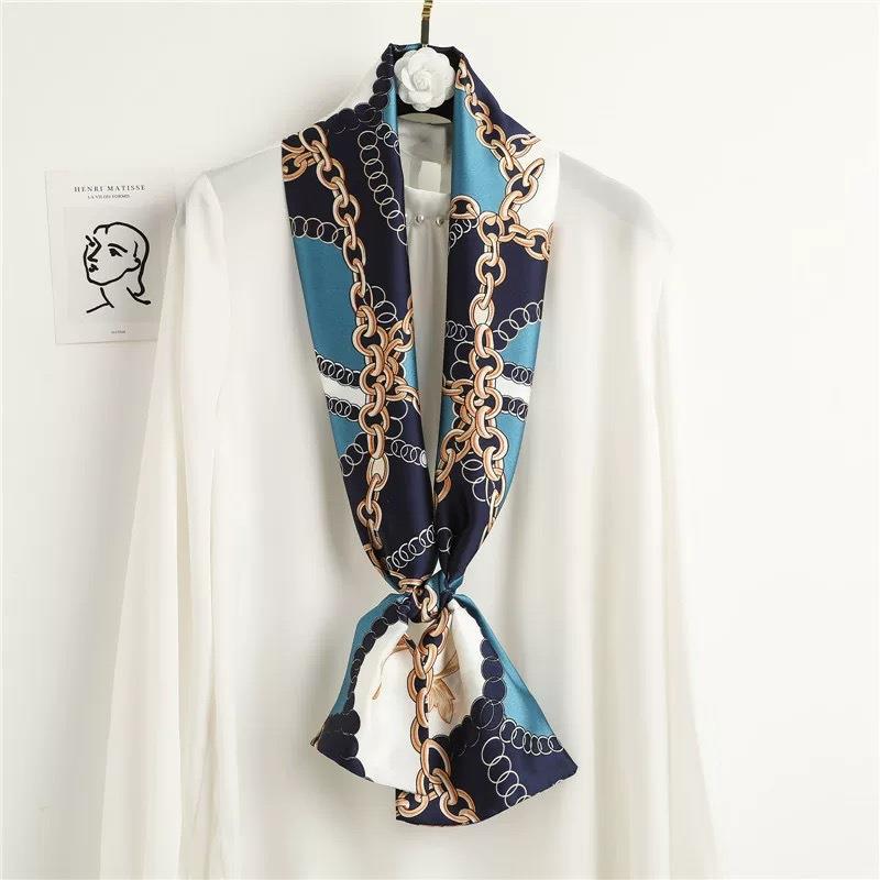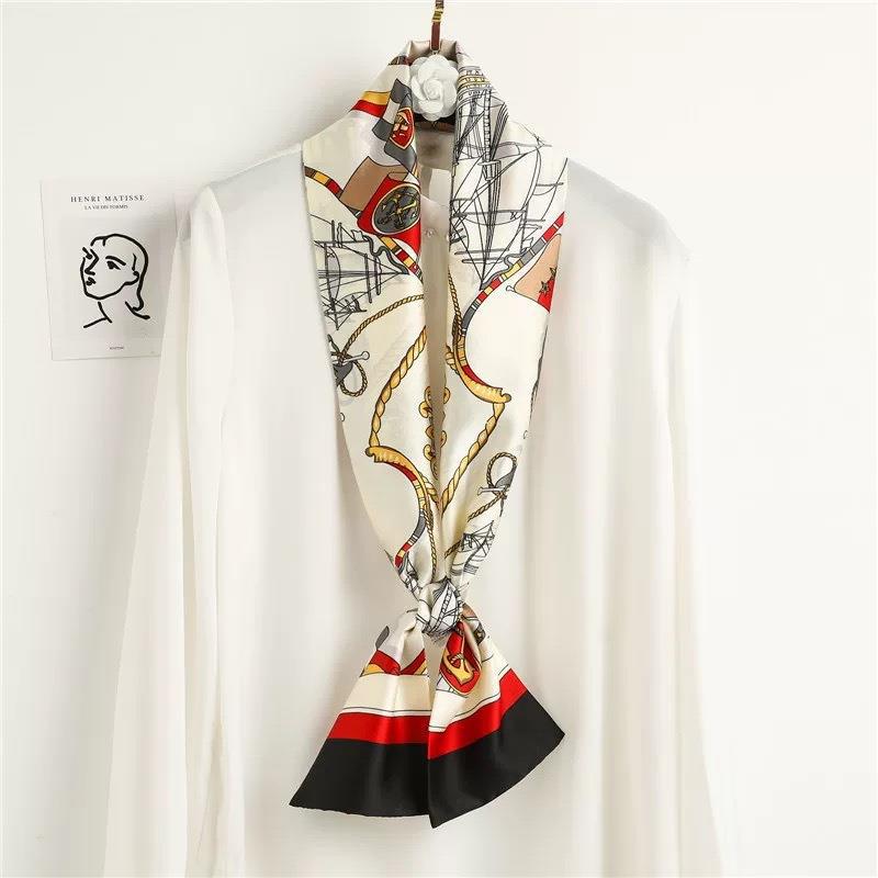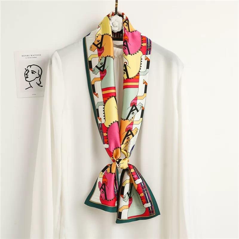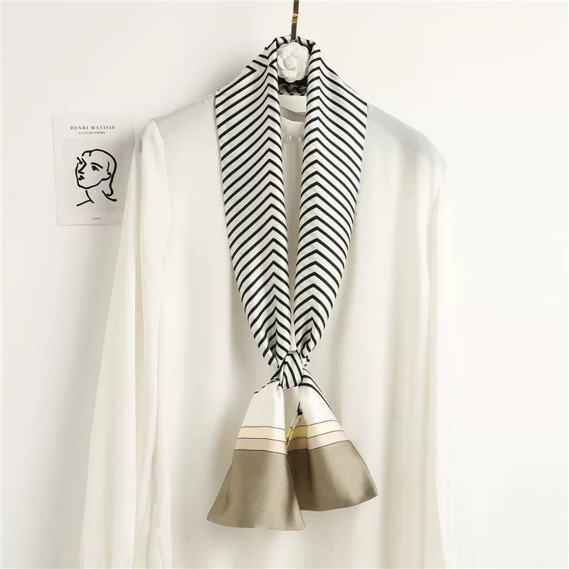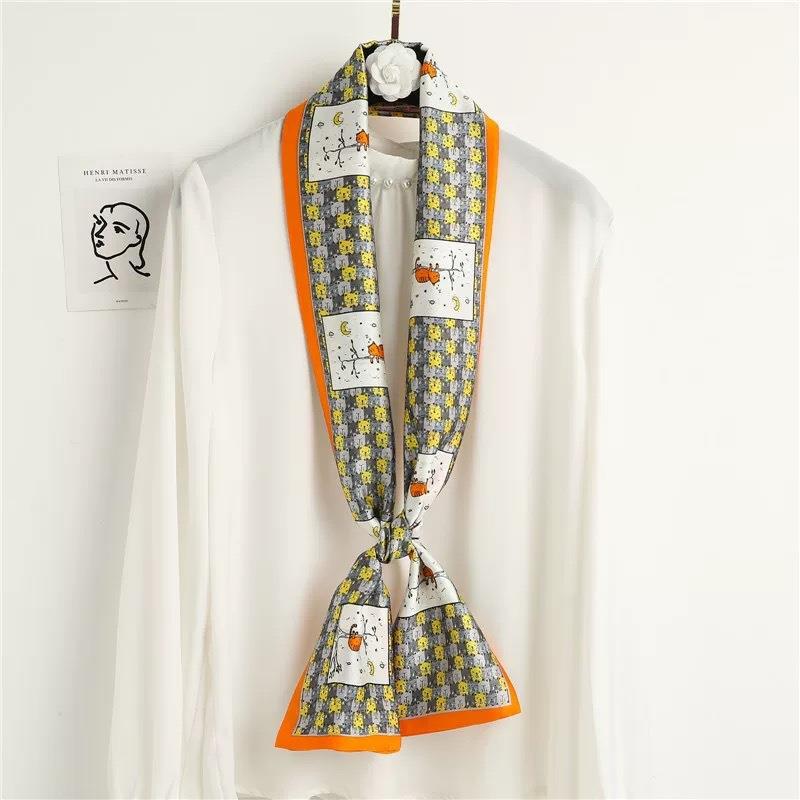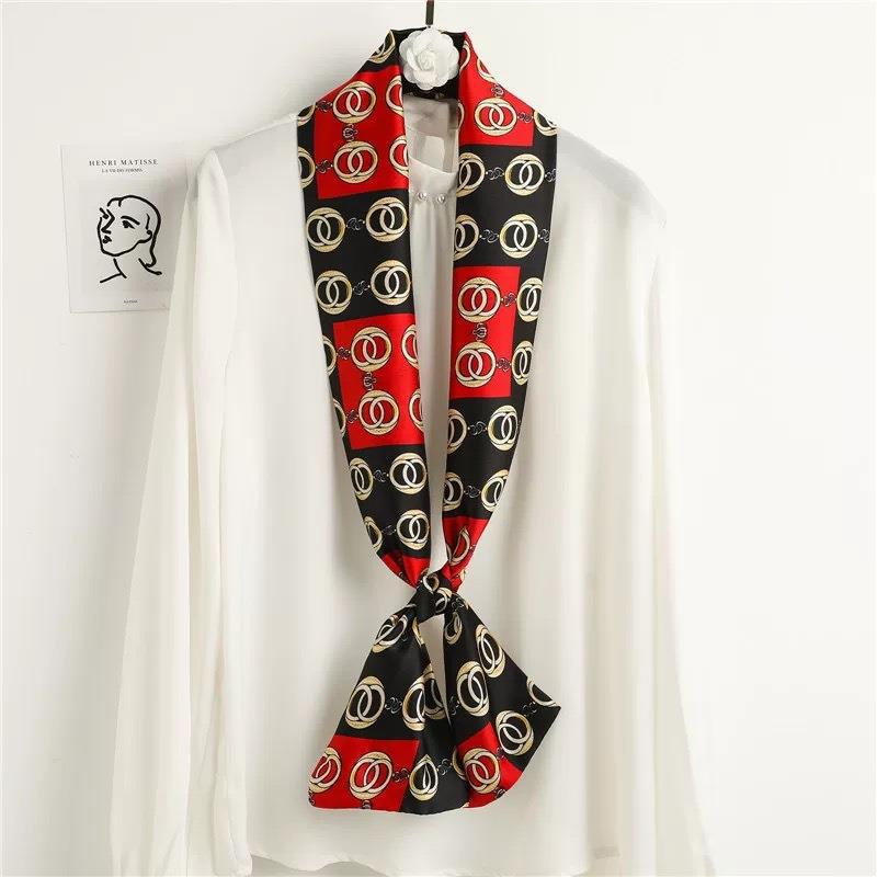 Bufanda de seda para mujer, cinta, accesorios para el cabello, corbata, bolso, bufanda pequeña, banda para el cabello estampada, seda artificial, bufanda de seda decorativa de moda larga, venta al por mayor