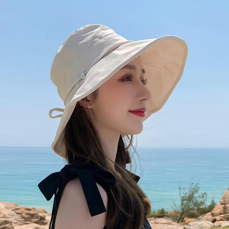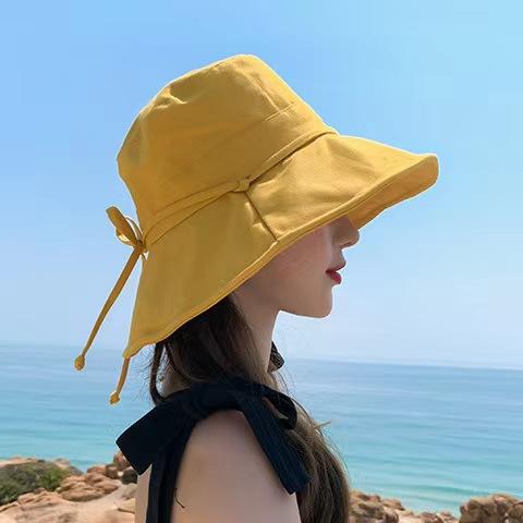 Sombrero de pescador de color liso para mujer, sombrero de verano de ala grande, sombrero para el sol, sombrero de lavabo plegable informal a la moda.