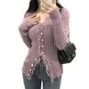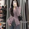 Suéter morado deshilachado con cuello en V para mujer, otoño e invierno, corte entallado, diseño adelgazante, estilo chic de nicho, cárdigan de punto de principios de primavera.