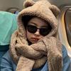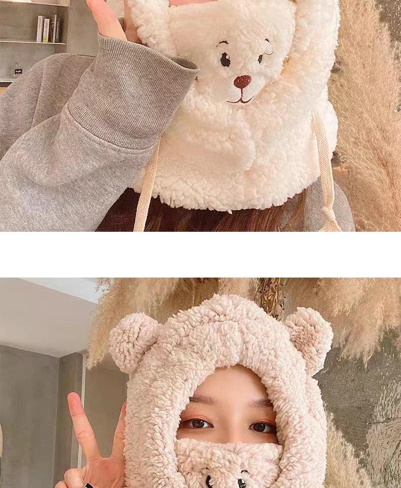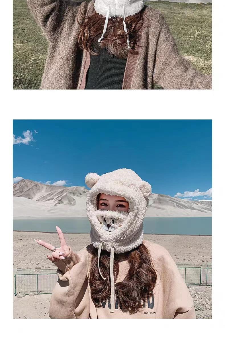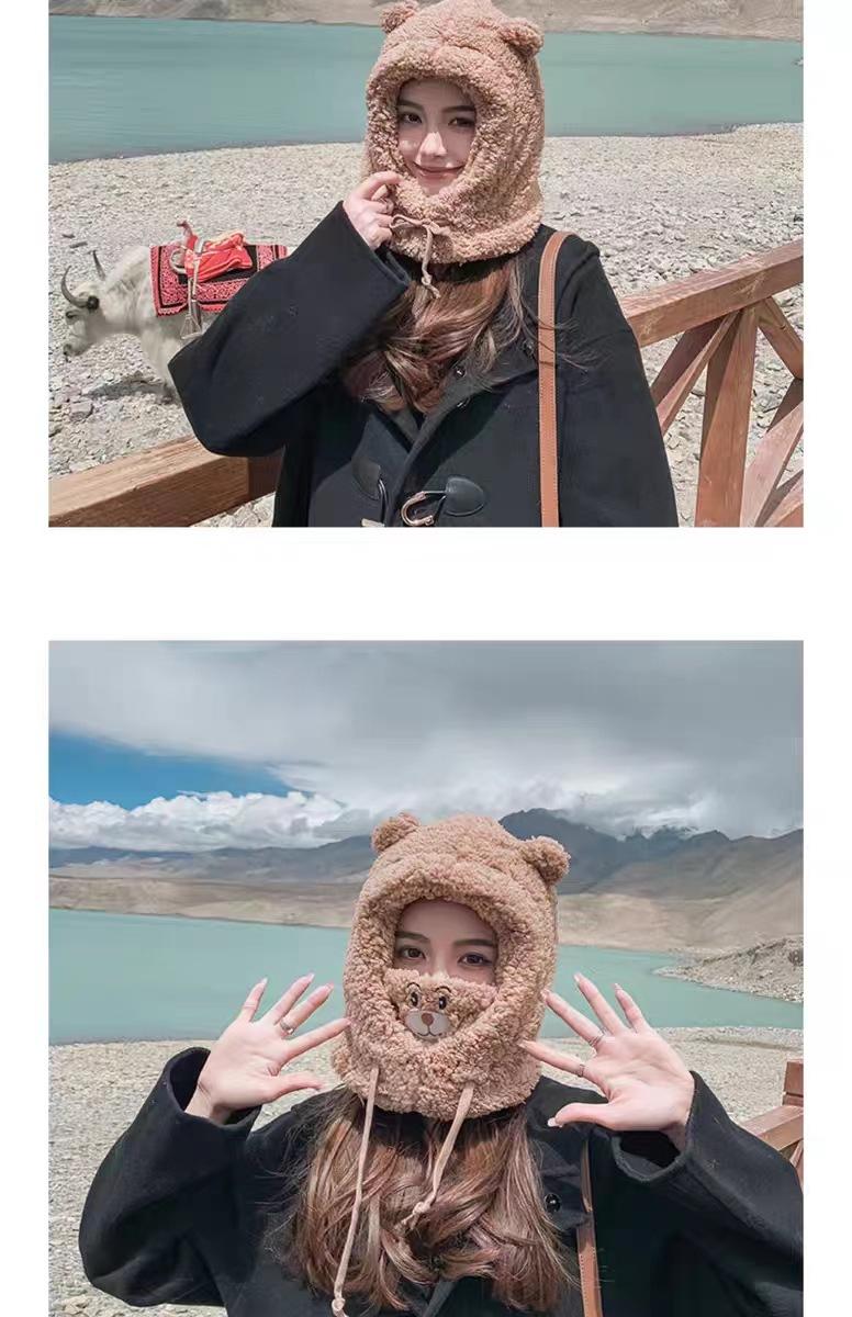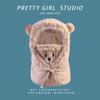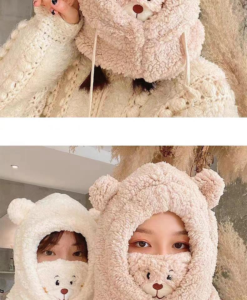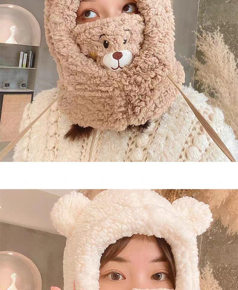 Gorro integrado con máscara de oso de peluche para mujer, otoño e invierno, estilo coreano, para ciclismo, resistente al viento, cálido, con protección para los oídos, gorro Lei Feng