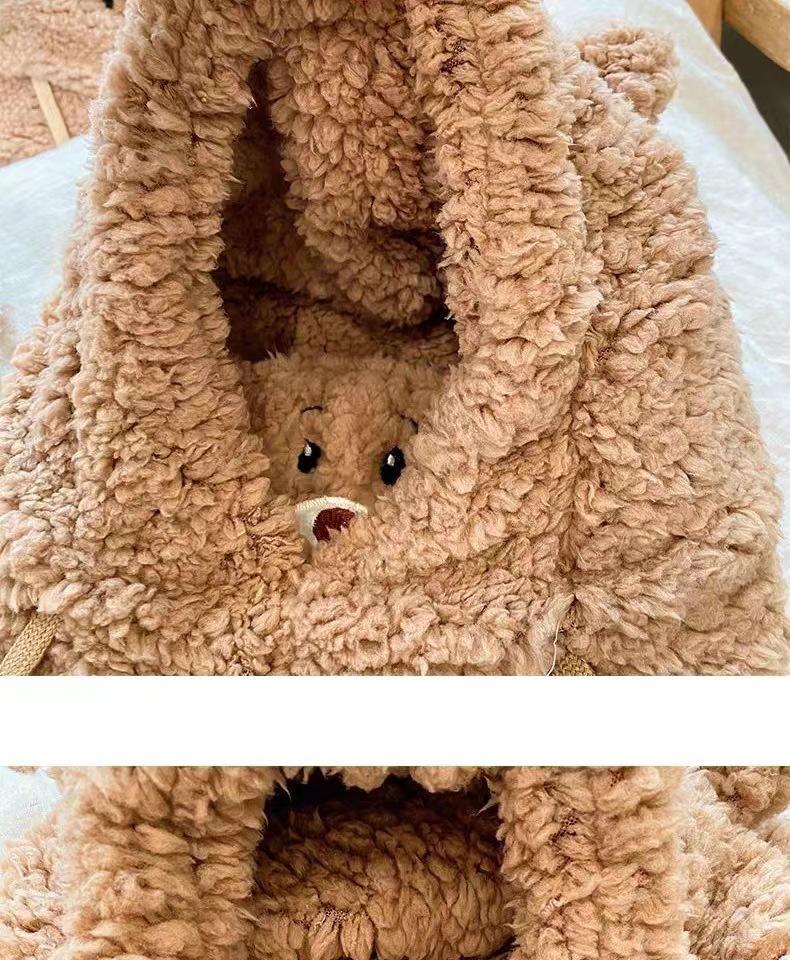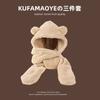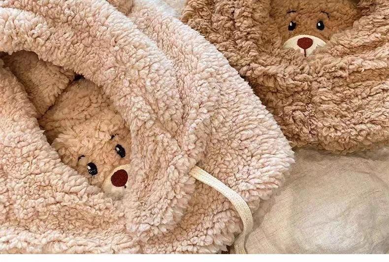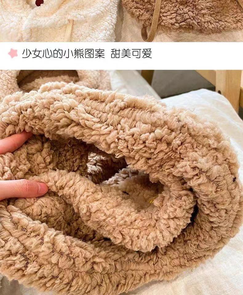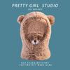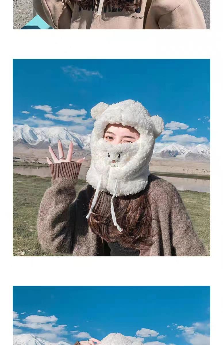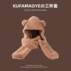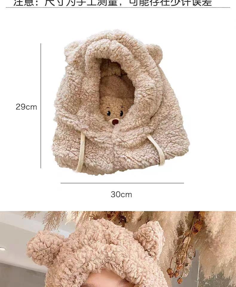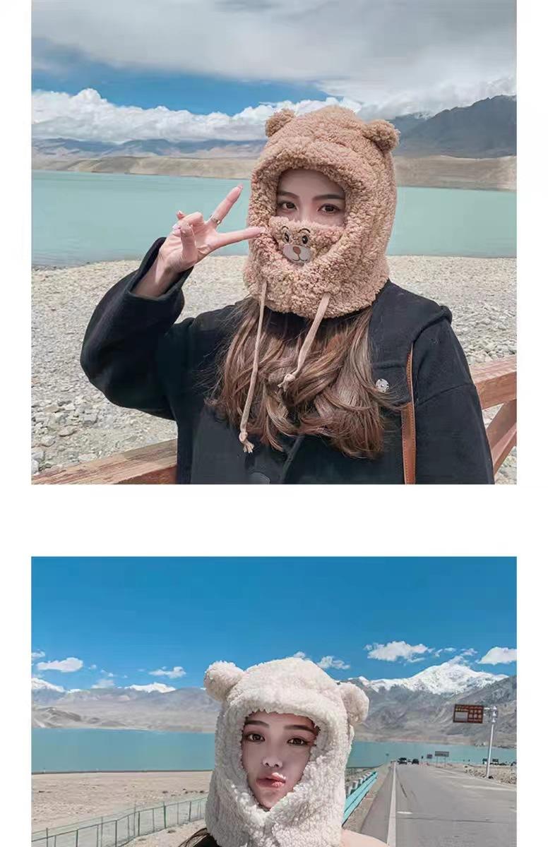 Gorro integrado con máscara de oso de peluche para mujer, otoño e invierno, estilo coreano, para ciclismo, resistente al viento, cálido, con protección para los oídos, gorro Lei Feng