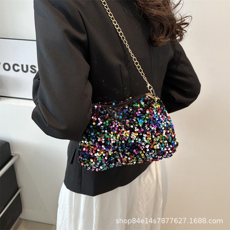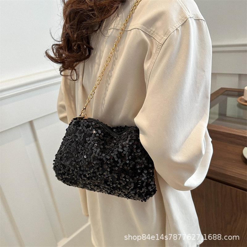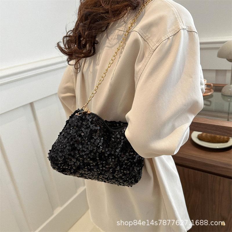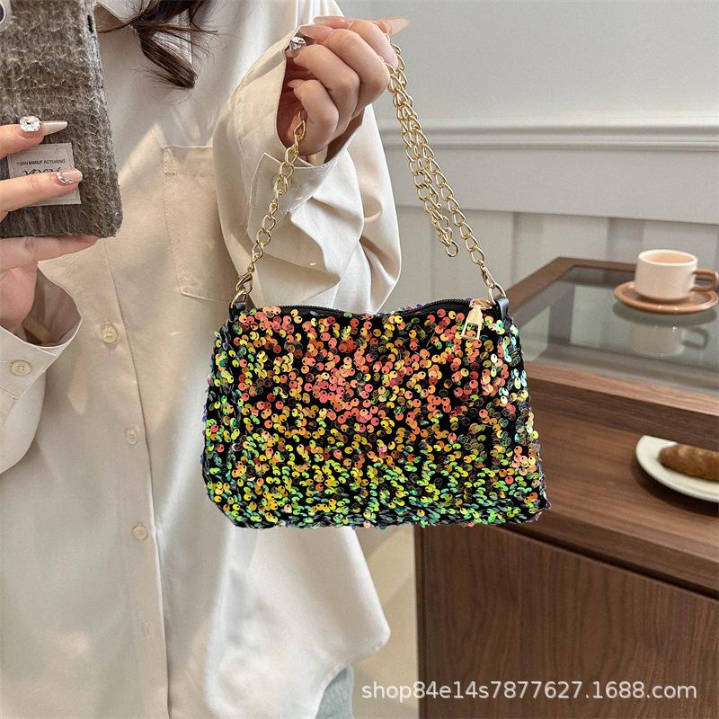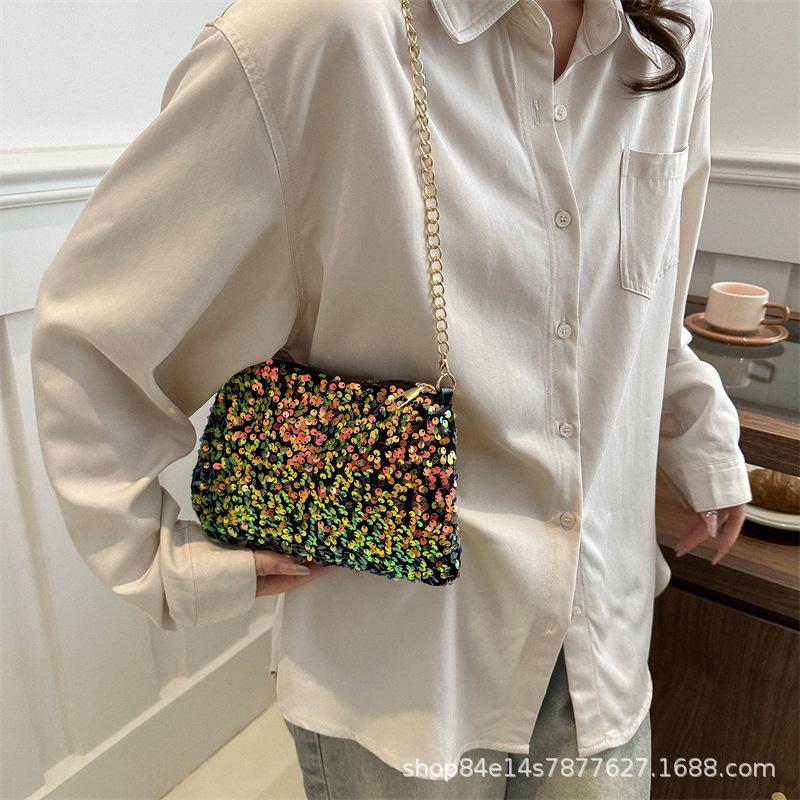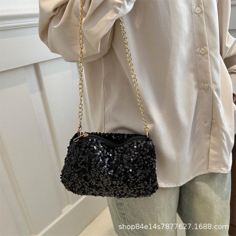 Bolso pequeño para mujer, novedad de verano 2024, con lentejuelas, moderno bolso de mano de color liso, informal, con cadena, bandolera de hombro