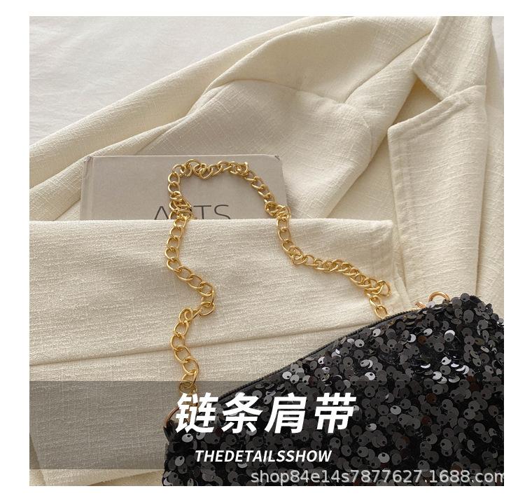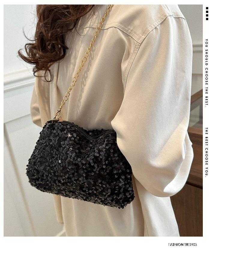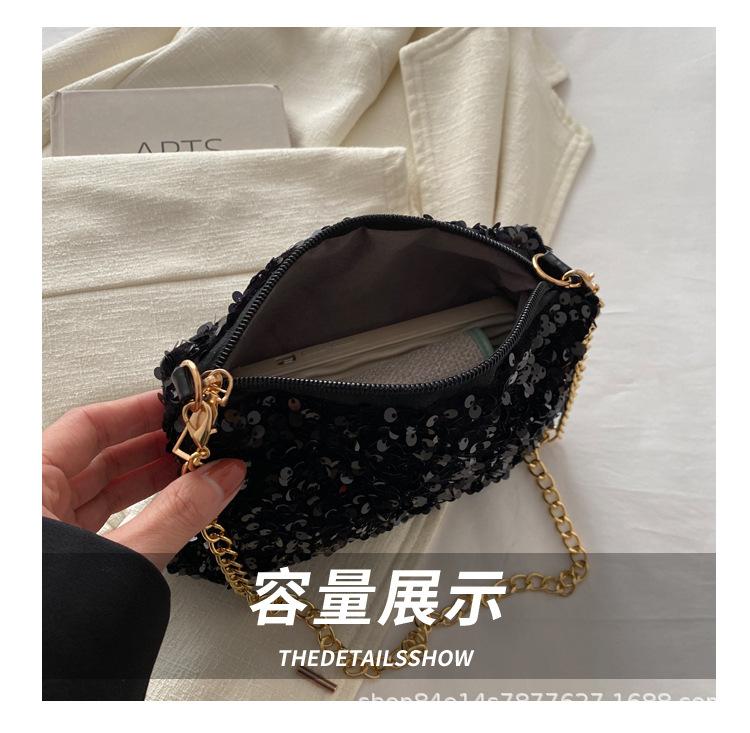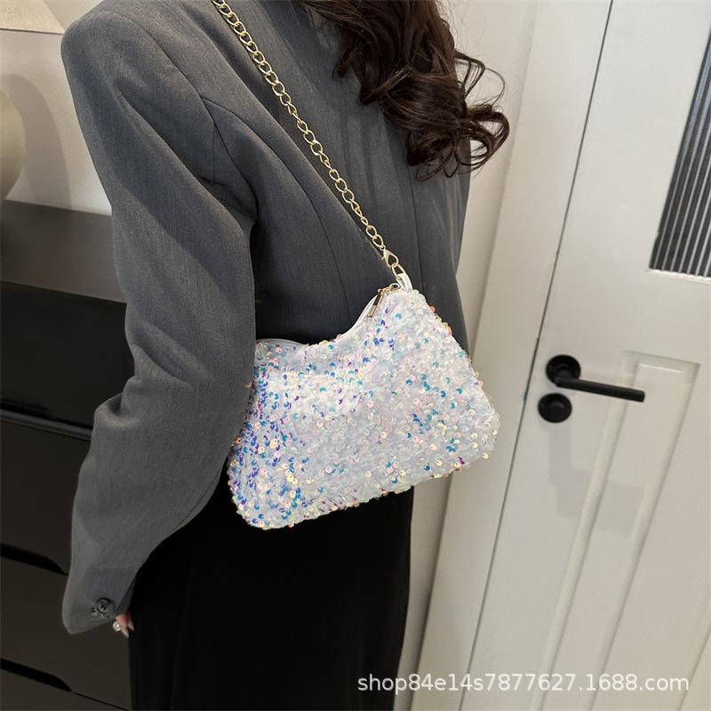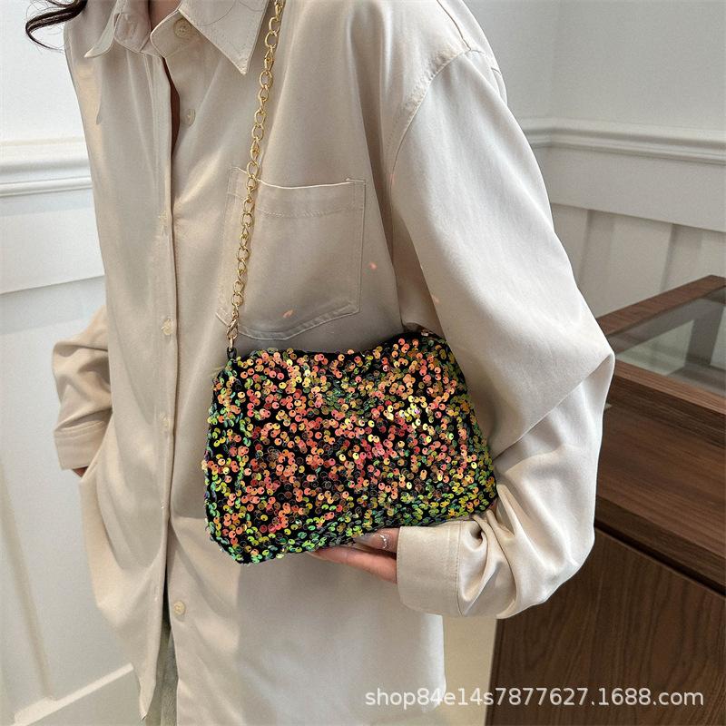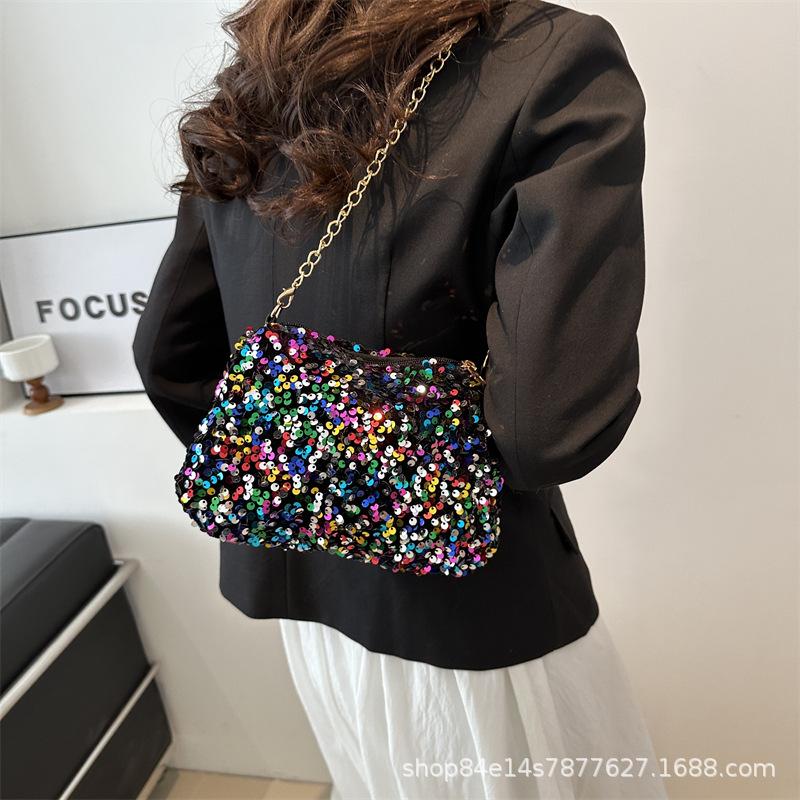 Bolso pequeño para mujer, novedad de verano 2024, con lentejuelas, moderno bolso de mano de color liso, informal, con cadena, bandolera de hombro