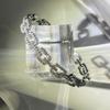 White gold geometric chain open bracelet