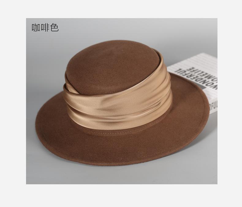 Sombrero de lana nuevo de otoño e invierno para mujer, sombrero de fieltro de lana retro de ala plana, sombrero Joker de moda coreana para mujer, invierno, venta al por mayor