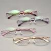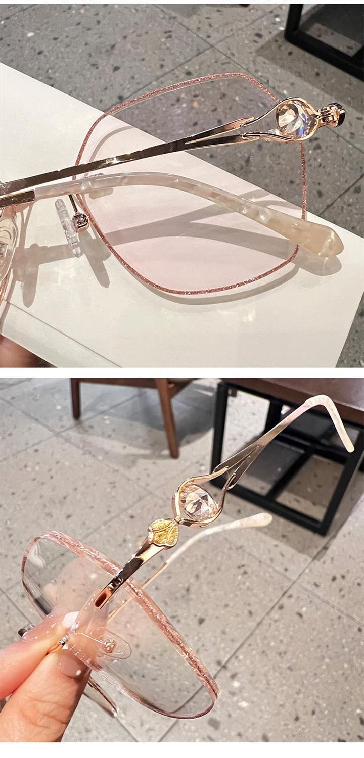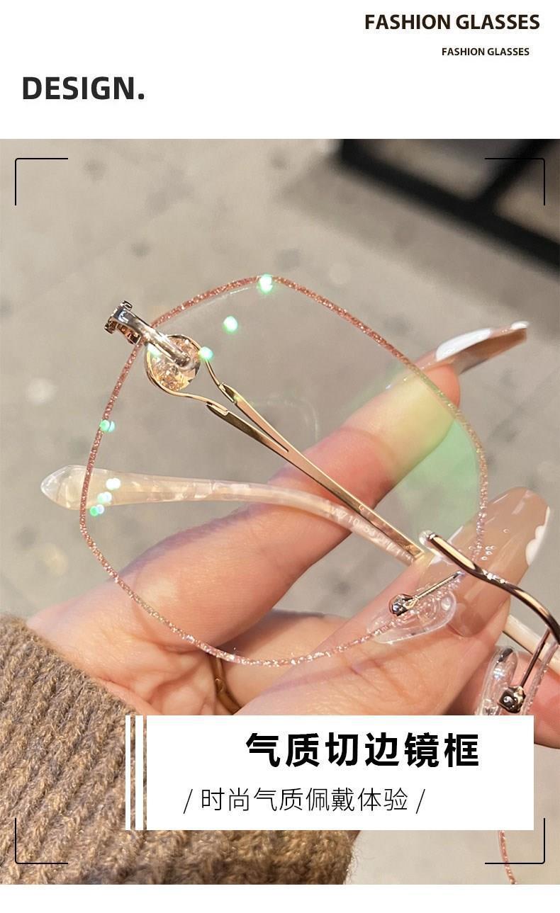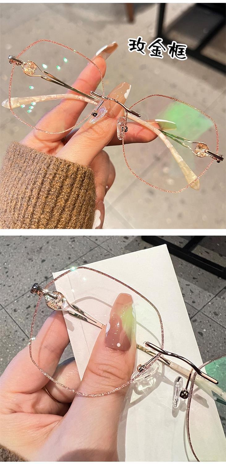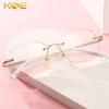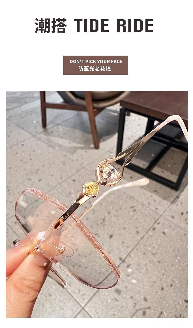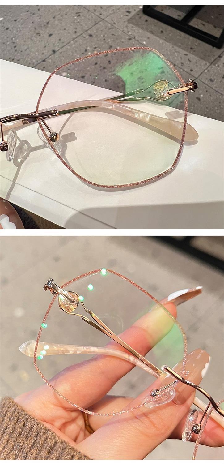 Gafas de presbicia para mujer, de 50 años, con marco poligonal sin borde de corte de diamante, con luz azul, visión lejana, gafas New Age