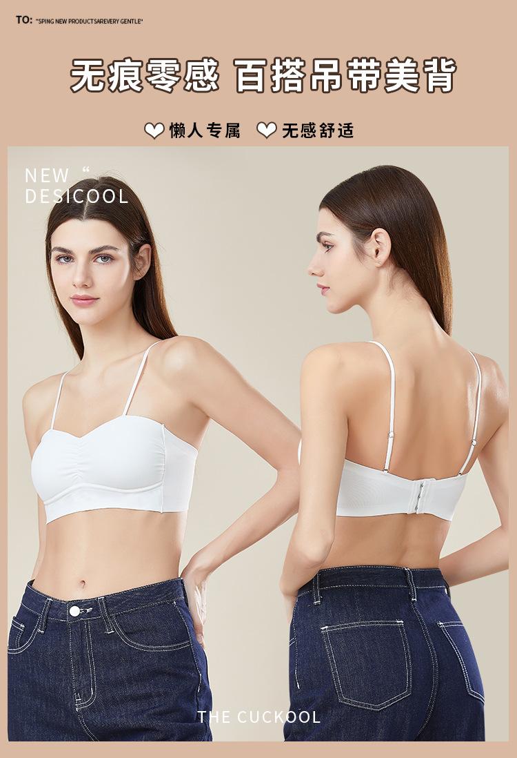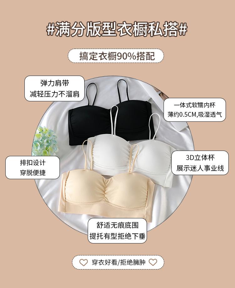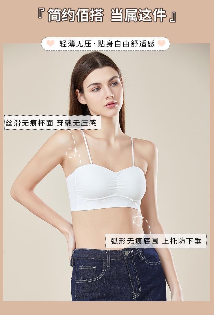 Camisola push-up de verano sin costuras con espalda fina y bonita para mujer, sujetador de tubo integrado antiexposición con pecho grande