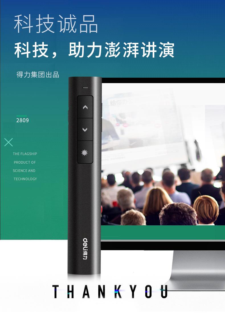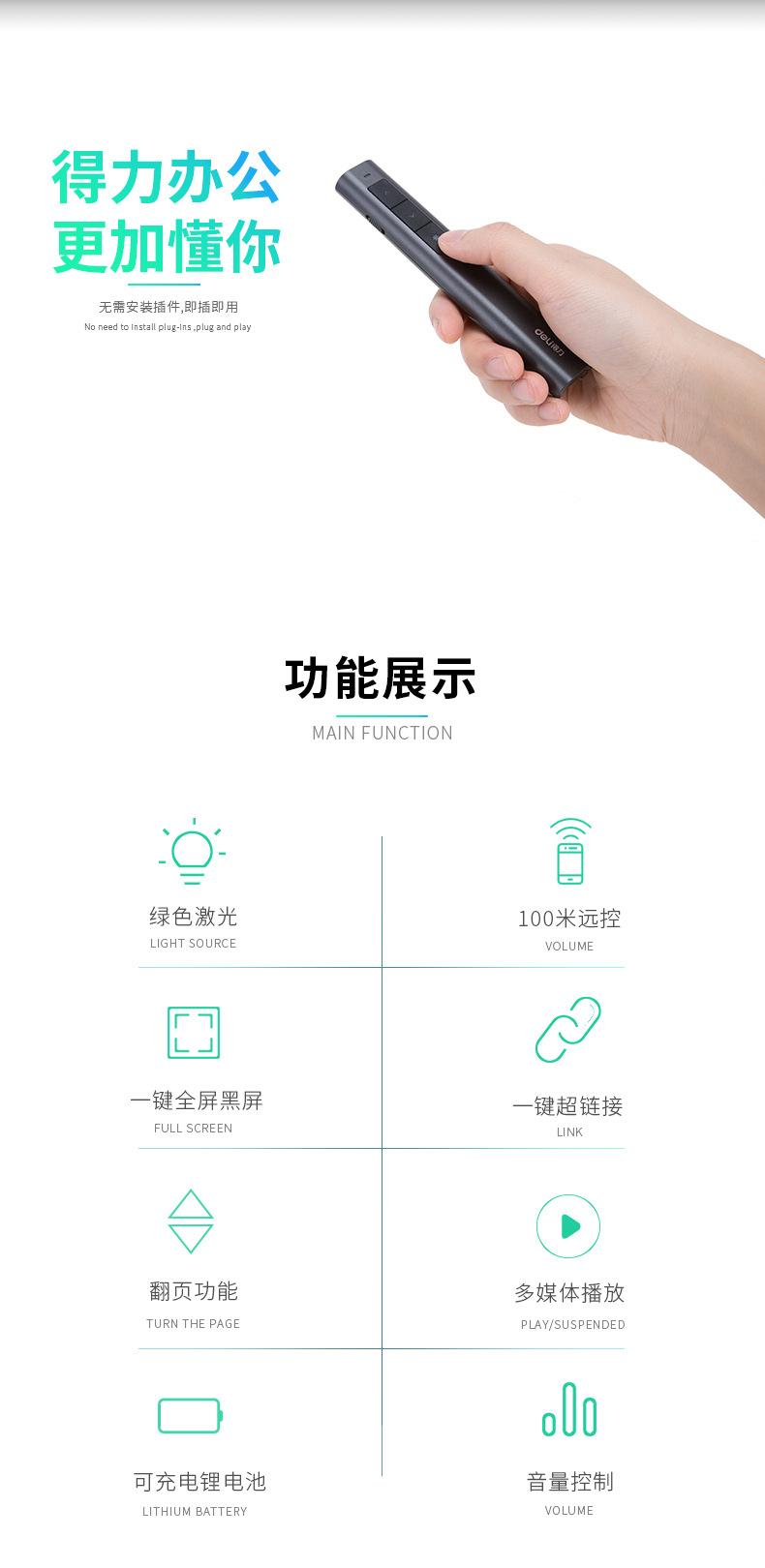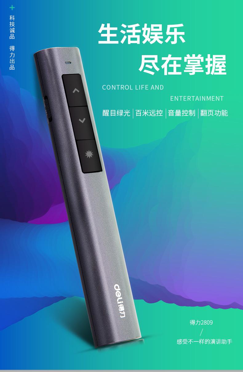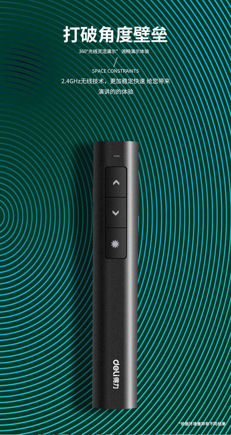 Bolígrafo láser Deli 2809 para voltear páginas, material didáctico para computadoras, bolígrafo indicador digital, bolígrafo verde con control remoto para PowerPoint.