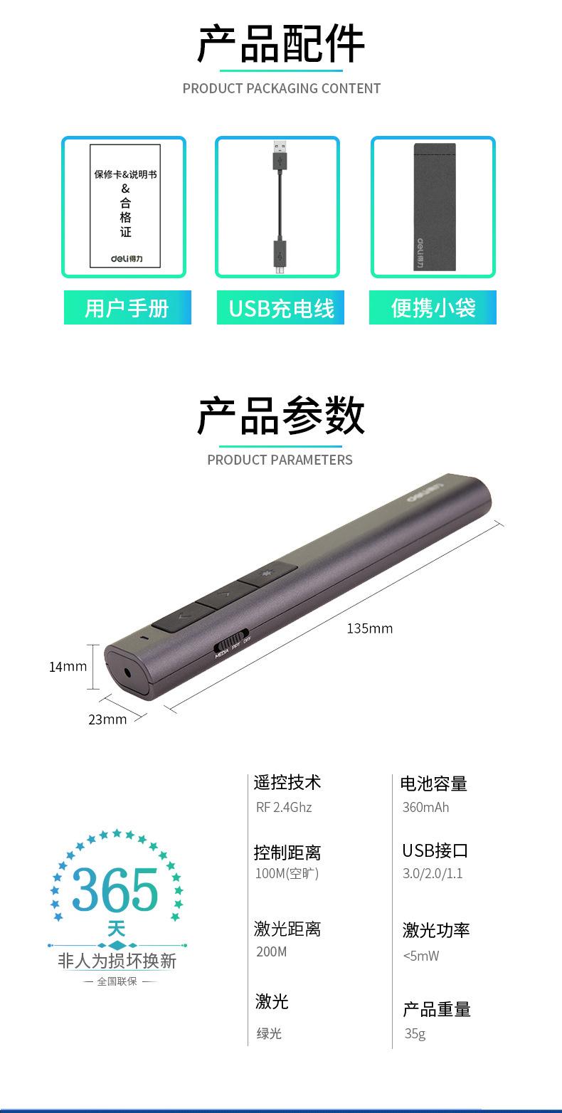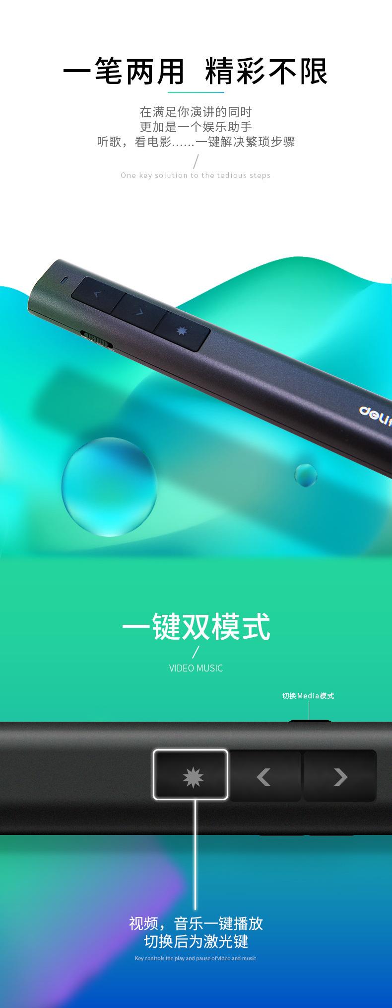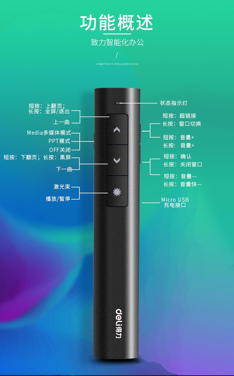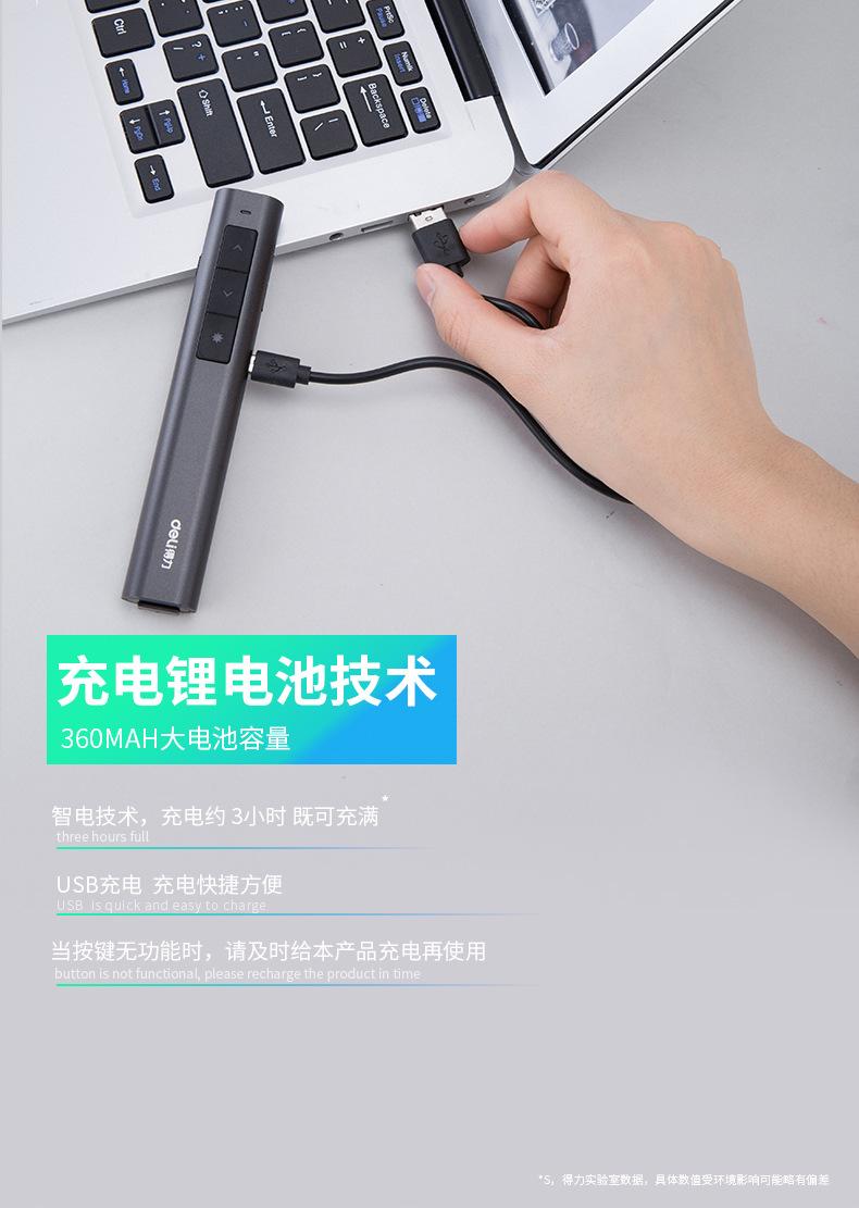 Bolígrafo láser Deli 2809 para voltear páginas, material didáctico para computadoras, bolígrafo indicador digital, bolígrafo verde con control remoto para PowerPoint.