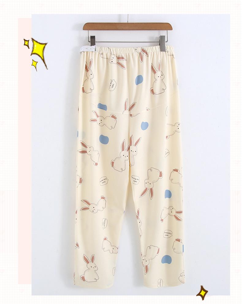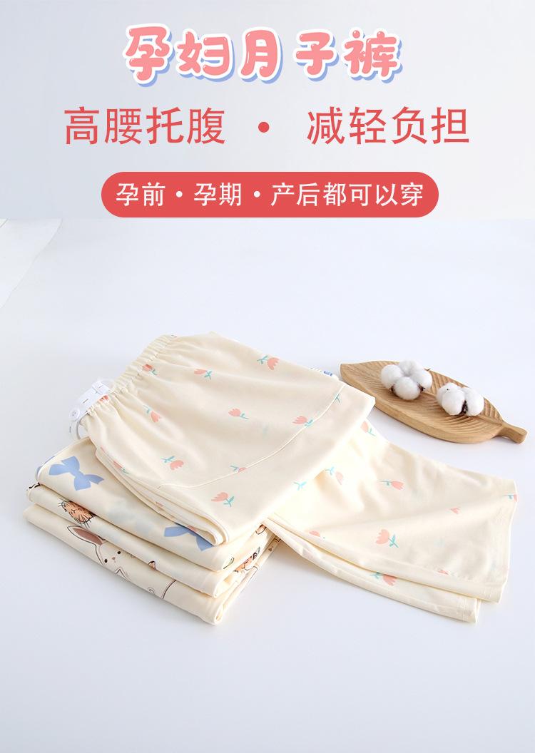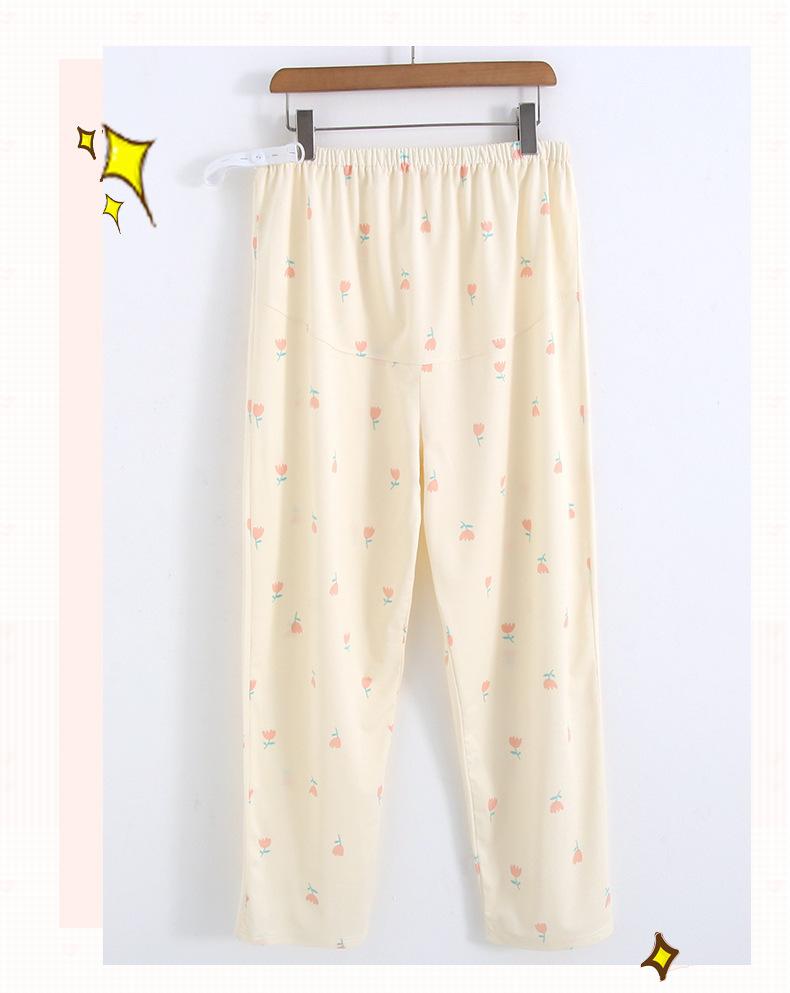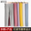 Pantalón de pijama premamá de algodón artificial para primavera y verano, pantalón de confinamiento con soporte para el vientre, ajustable, delgado, prenatal, holgado, para mujer de talla grande, cintura alta, para uso exterior