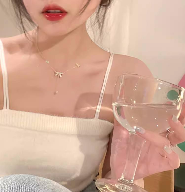 Collar con Colgante de Borla de Lazo para Mujer 2025 Nuevo Popular Verano Cadena Clavicular Elegante de Alta Gama Cadena para el Cuello