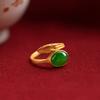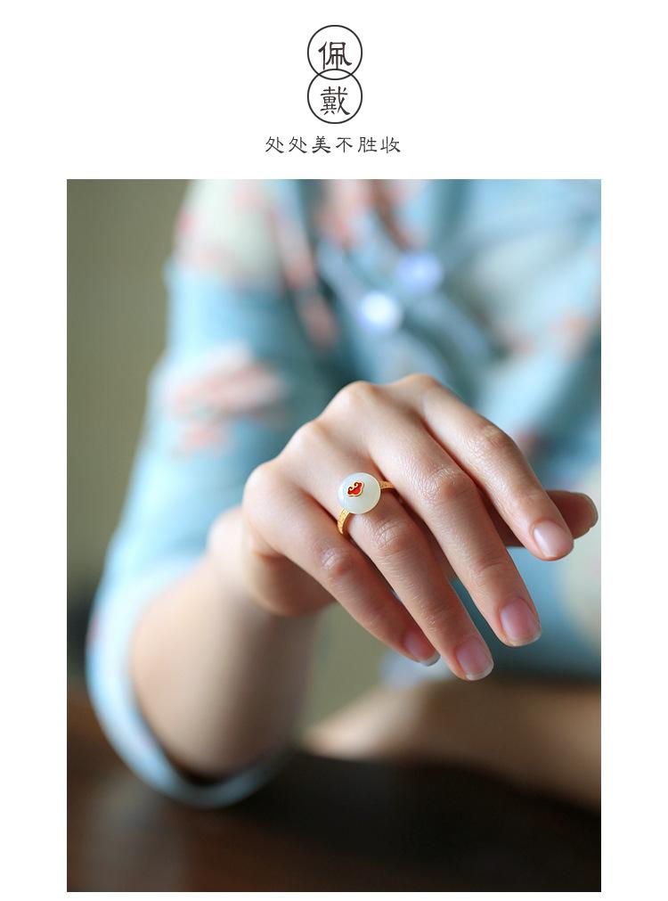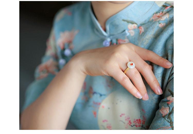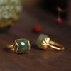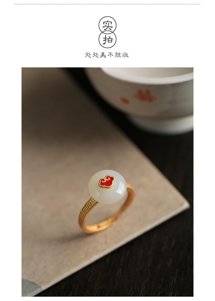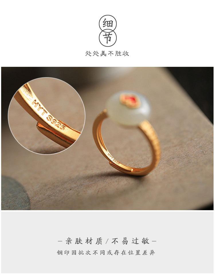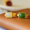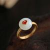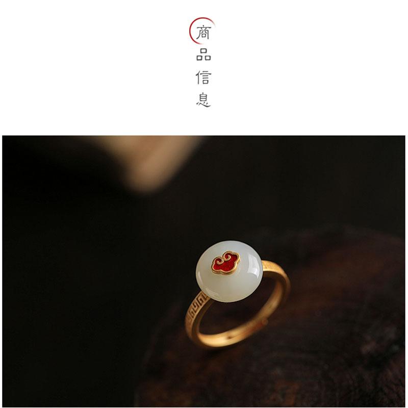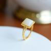 Anillo Dorado Vintage Anillo de Jade Blanco Jade Hetian Natural de la Suerte Anillo de Temperamento Estilo Corte para Mujer
