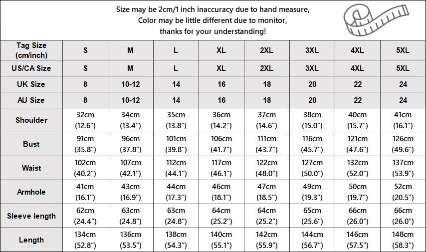 S, M, L, XL, 2XL, 3XL, 4XL, 5XL