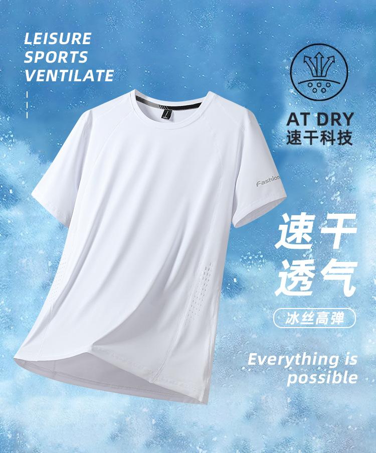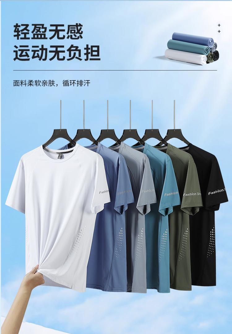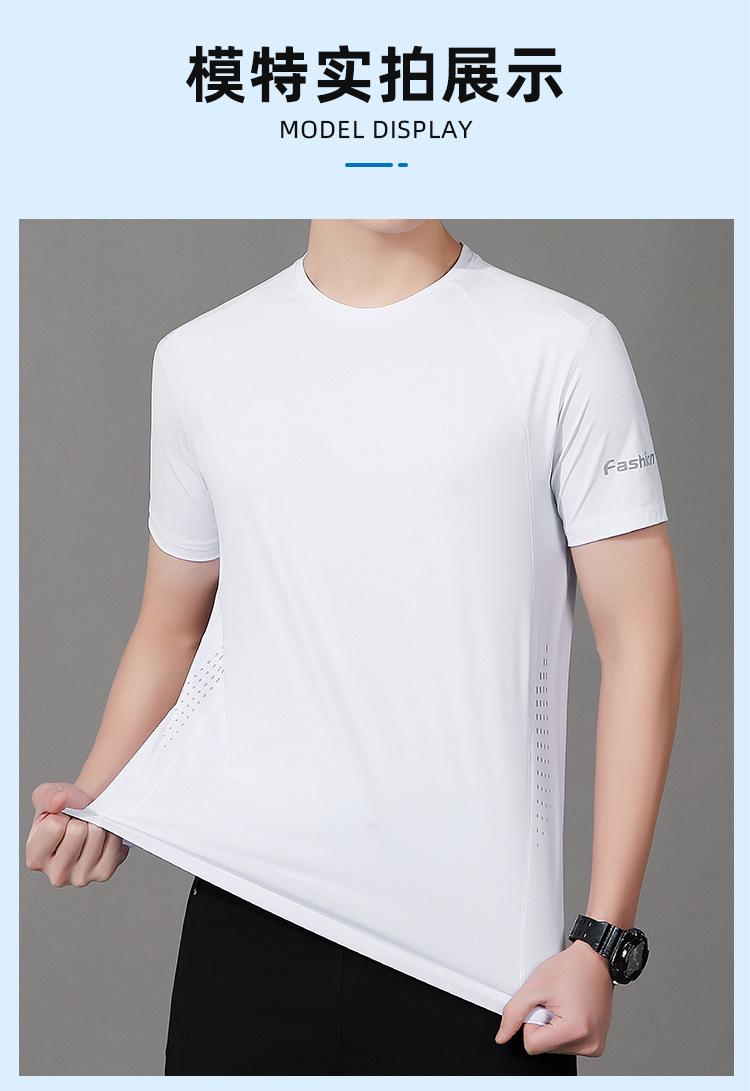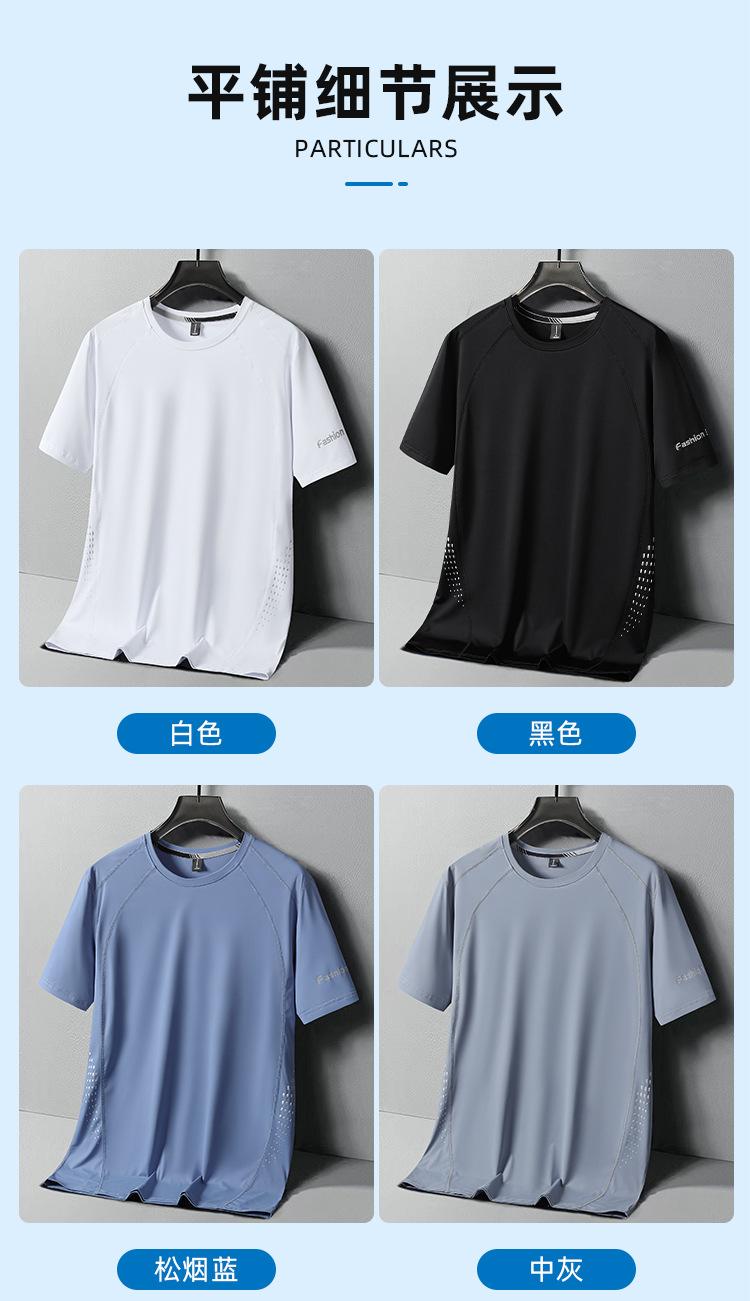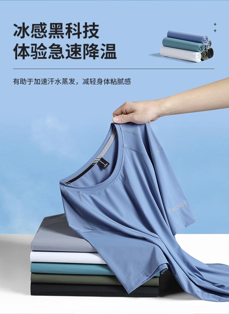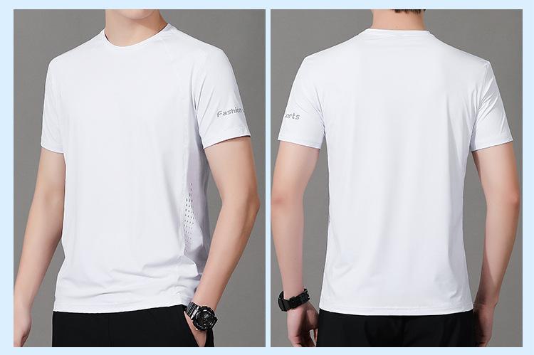 Camiseta de manga corta de seda de hielo para hombre, de verano, de talla grande, transpirable, deportiva, informal, de secado rápido, fina y holgada.