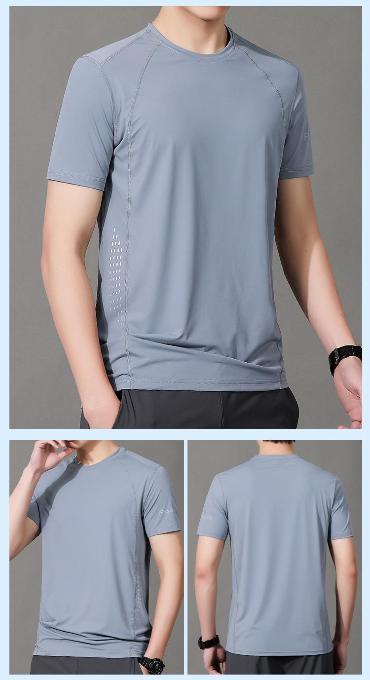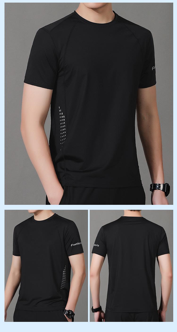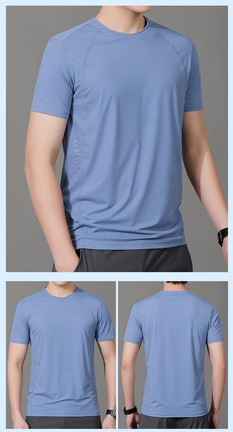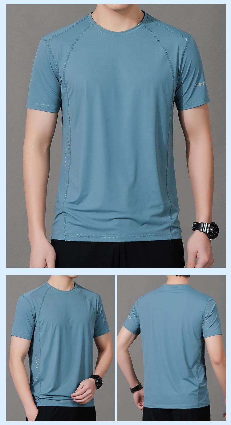 Camiseta de manga corta de seda de hielo para hombre, de verano, de talla grande, transpirable, deportiva, informal, de secado rápido, fina y holgada.