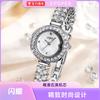Reloj de moda asiática de platino para mujer, con diamantes de imitación brillantes, para estudiantes, de cuarzo, resistente al agua, estilo europeo y americano.