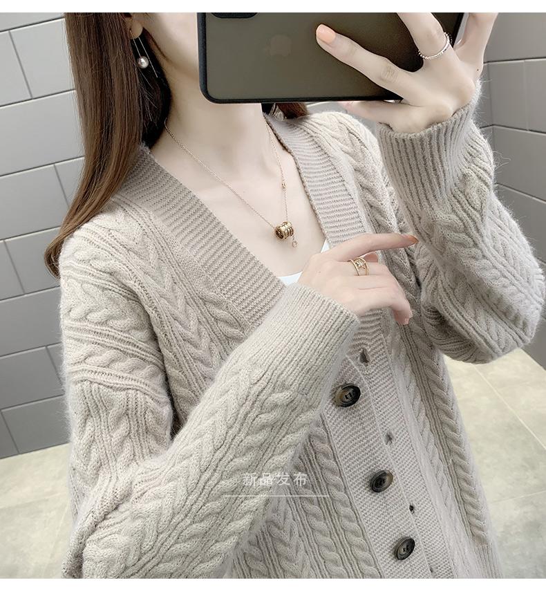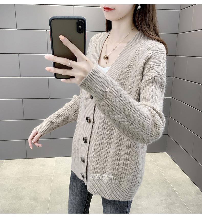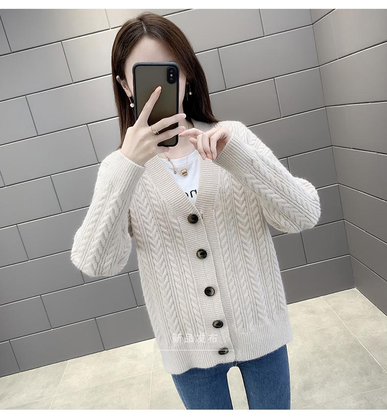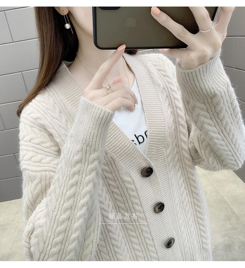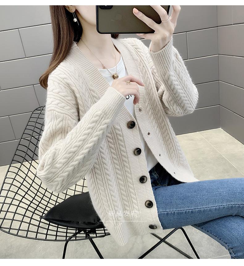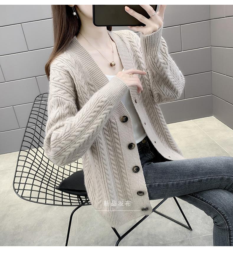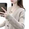 Suéter beige para mujer, cárdigan de otoño, cárdigan de punto de manga larga, estilo occidental, top combinable.