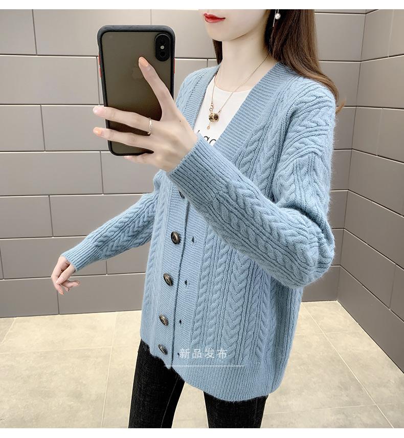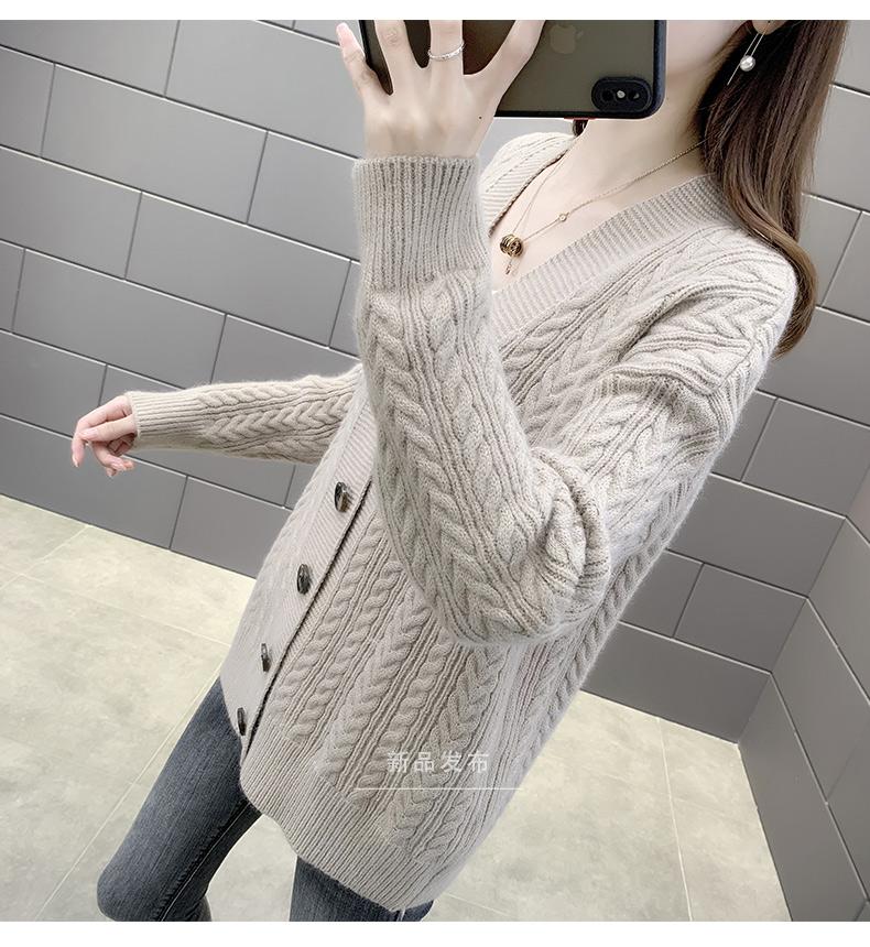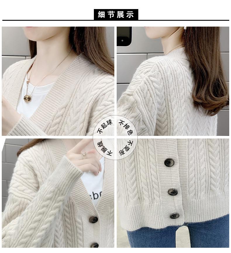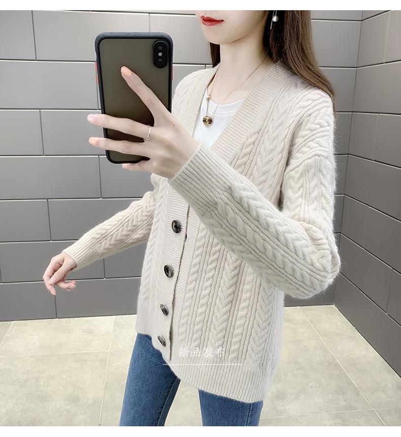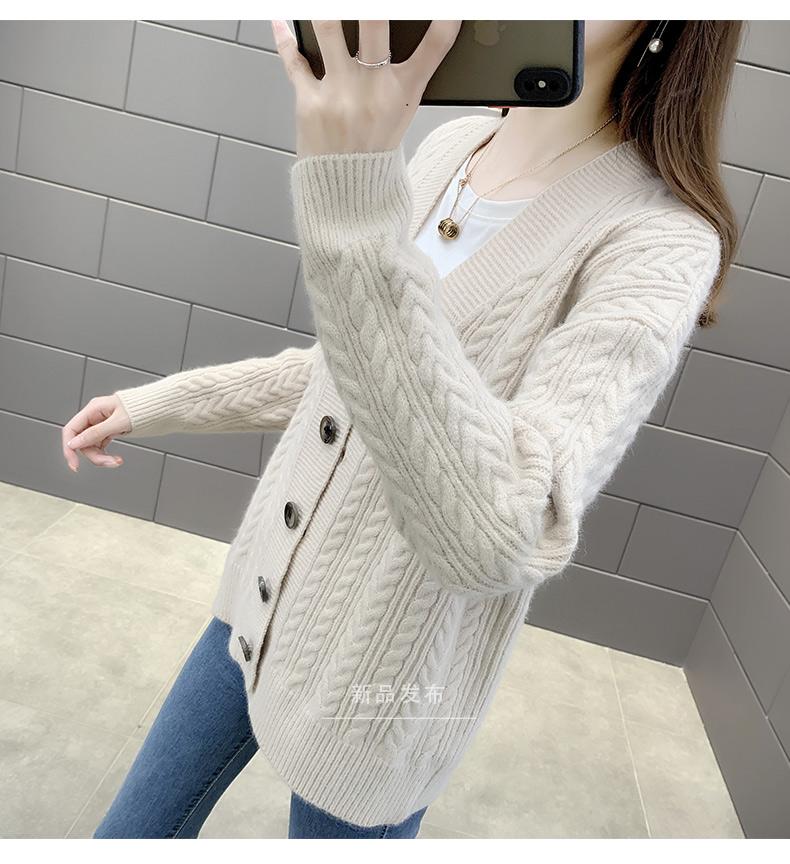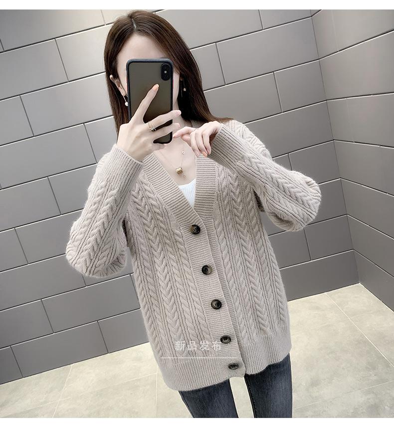 Suéter beige para mujer, cárdigan de otoño, cárdigan de punto de manga larga, estilo occidental, top combinable.