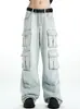 Jeans de Trabajo Lavados de Color Claro Estilo Americano para Hombre y Mujer, Holgados, de Pierna Recta, Pierna Ancha, Multibolsillos, Diseño Resistente, Pantalones de Moda
