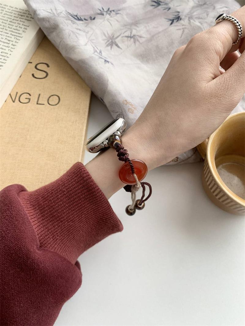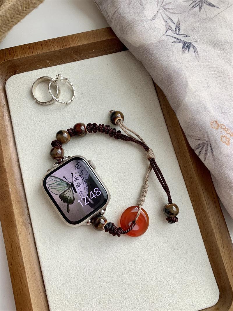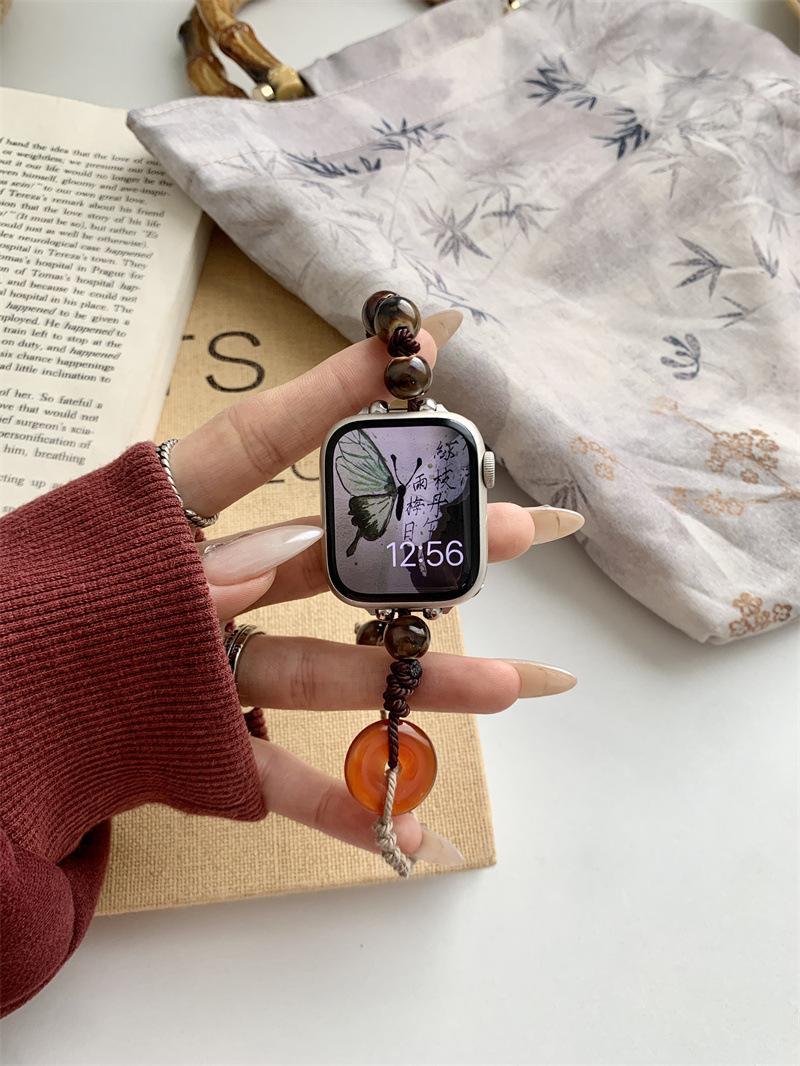 Correa de reloj Apple 7 compatible con estilo nacional con cuentas tejidas para niñas, Apple Watch 56784, generación SE, segura y creativa, S9.