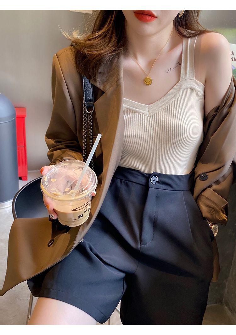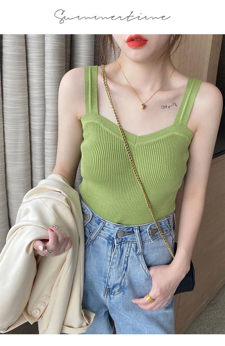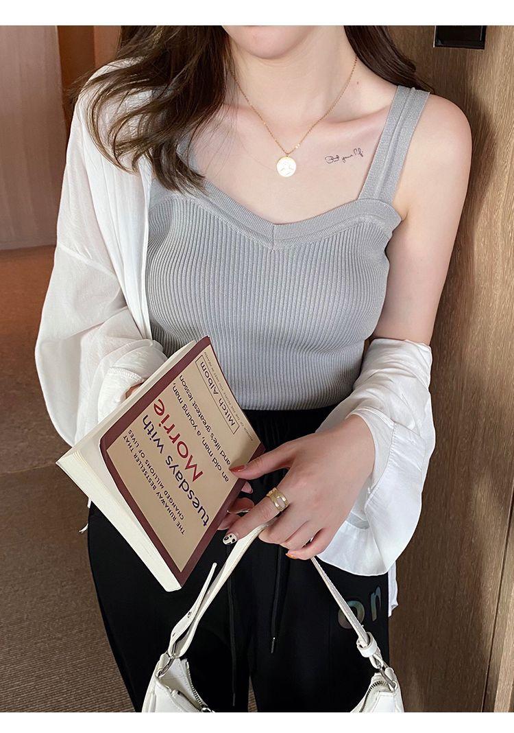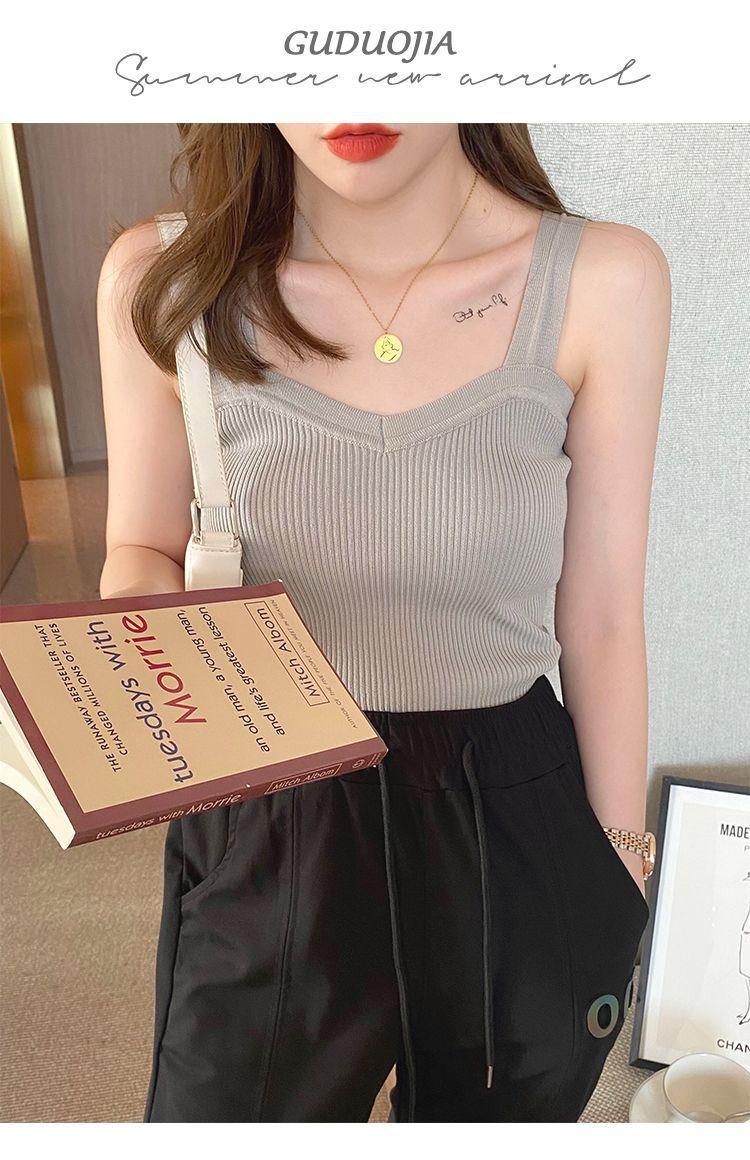 Camisola de Punto Traje Interior para Mujer con un Diseño Único, Adecuado para Ropa Exterior de Verano, Estilo Dulce y Picante, Top Base Blanco