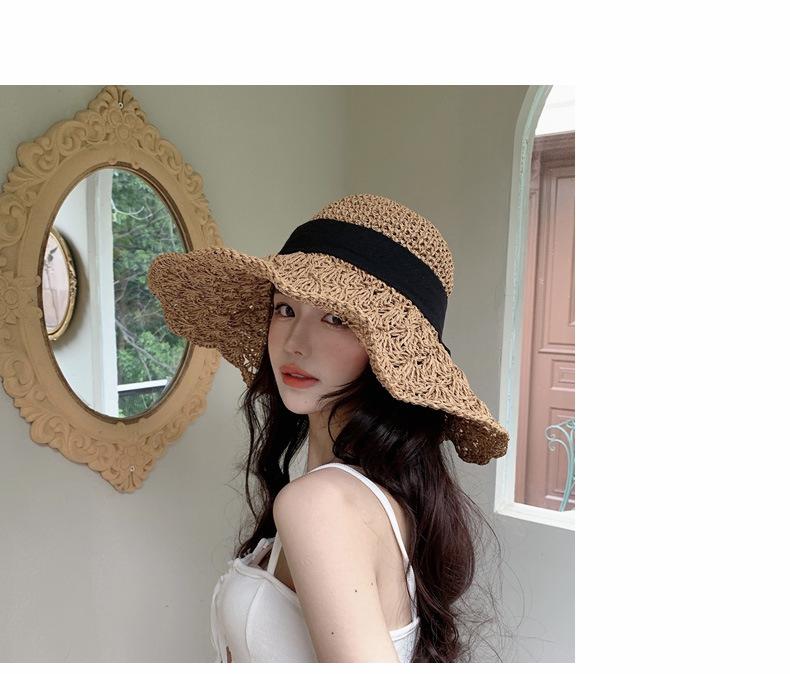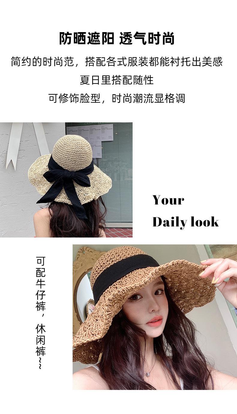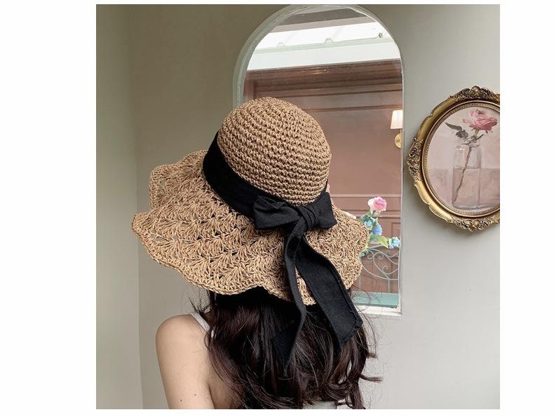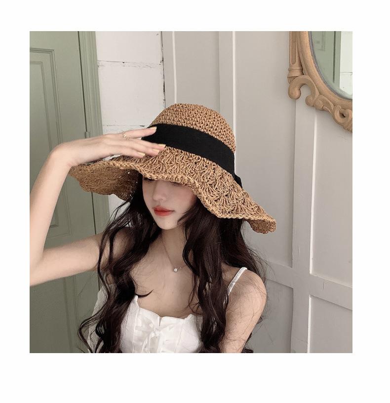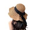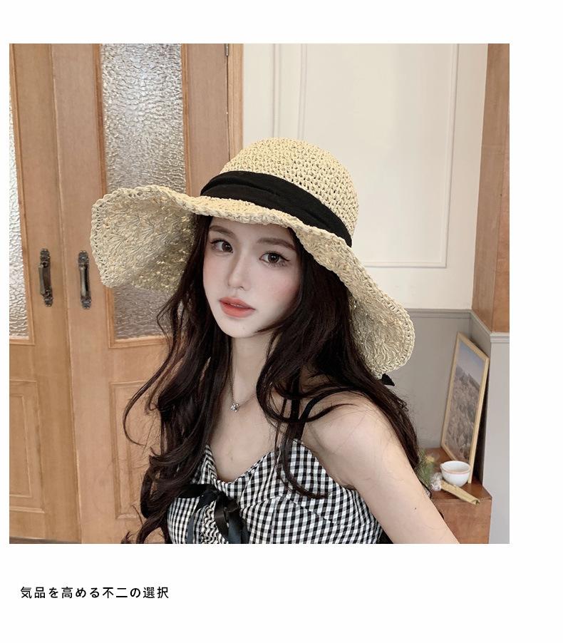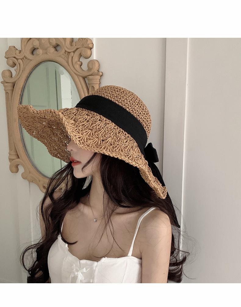 Nuevo sombrero de paja de estilo japonés para mujer, de verano, con cordones, de ala grande, para playa, plegable, para vacaciones, protector solar