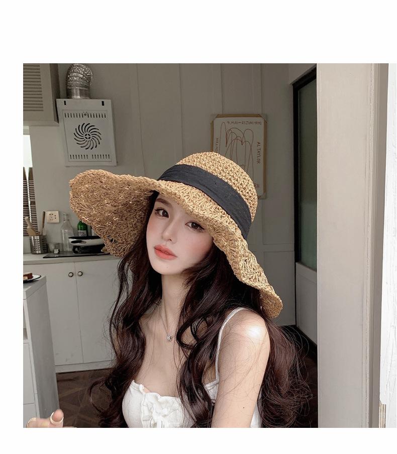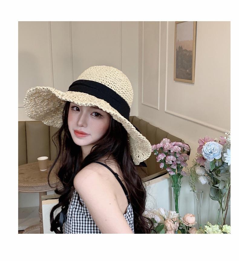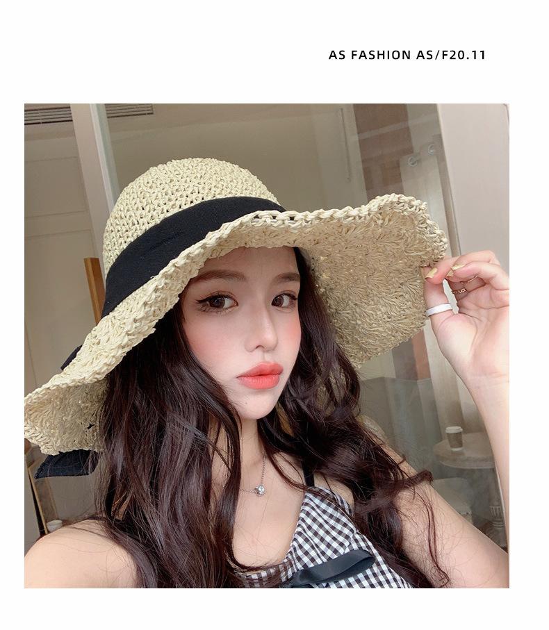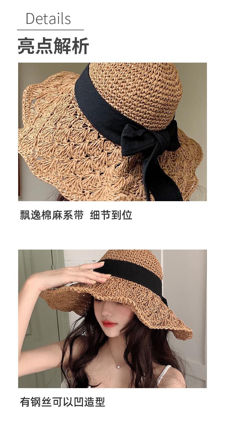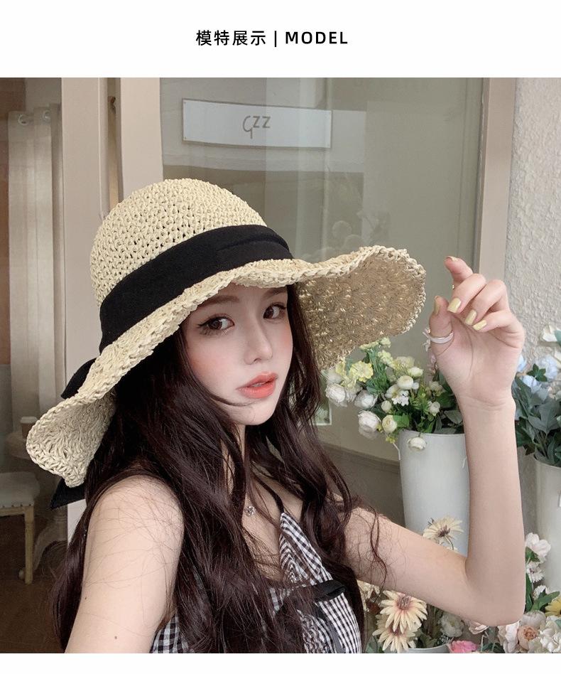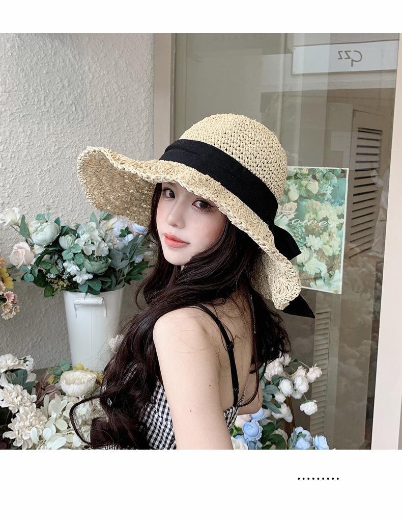 Nuevo sombrero de paja de estilo japonés para mujer, de verano, con cordones, de ala grande, para playa, plegable, para vacaciones, protector solar